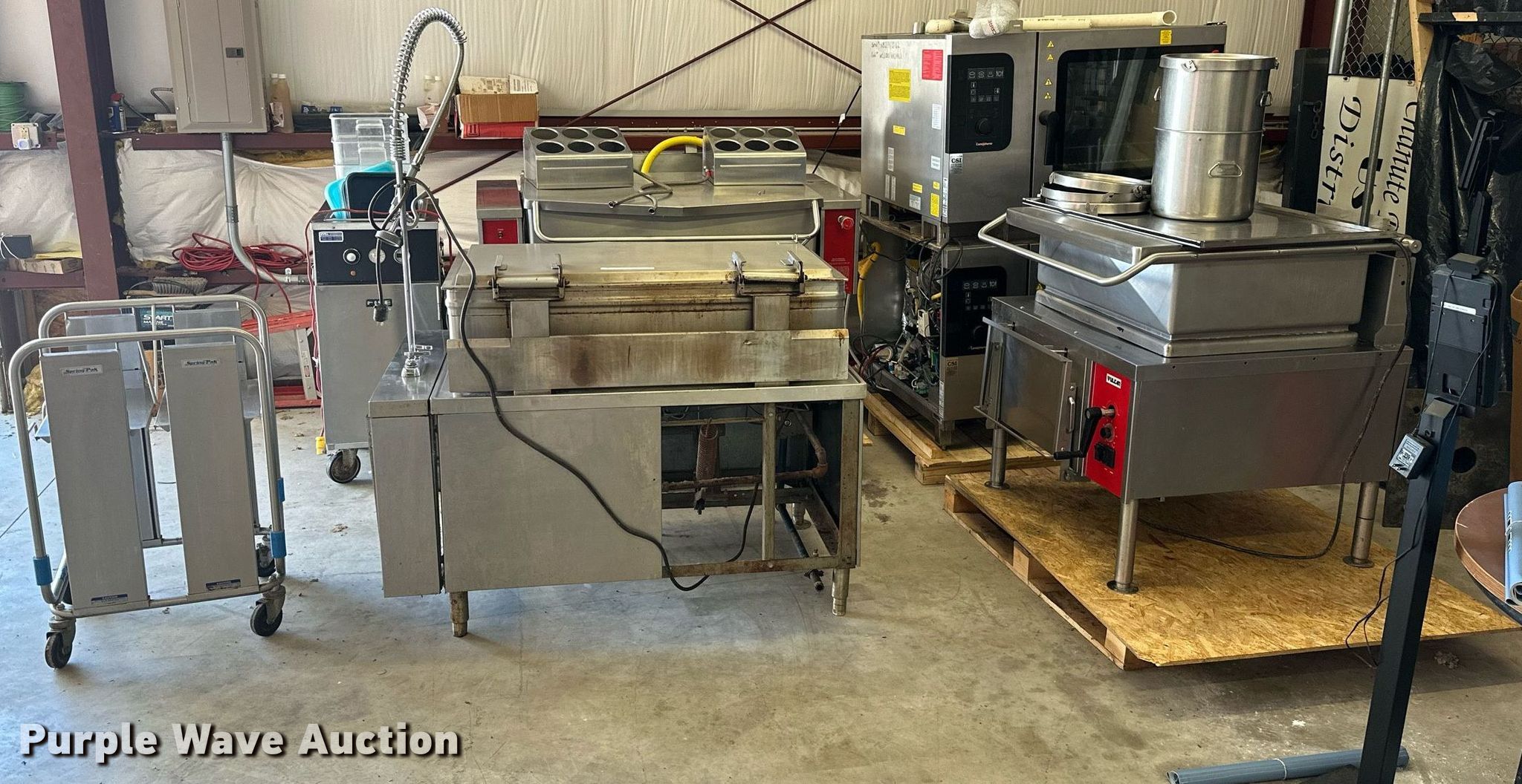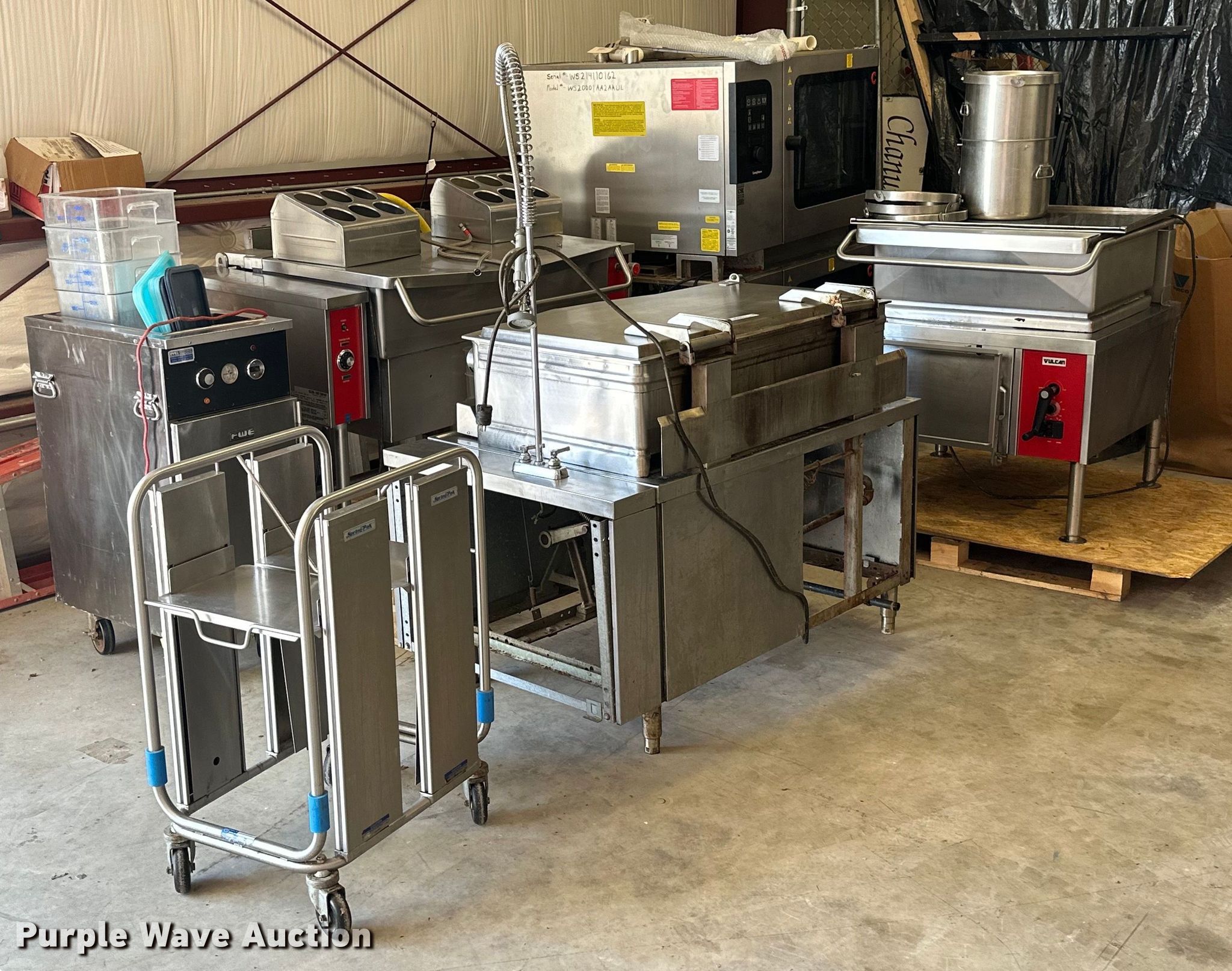 Purple Wave is selling a used Restaurant Equip. in Kansas. This item is a Restaurant equipment with the following: FWE HLC-8 food warmer, (3) Vulcan skillets, (2) Convotherm WS2000 combination ovens and more