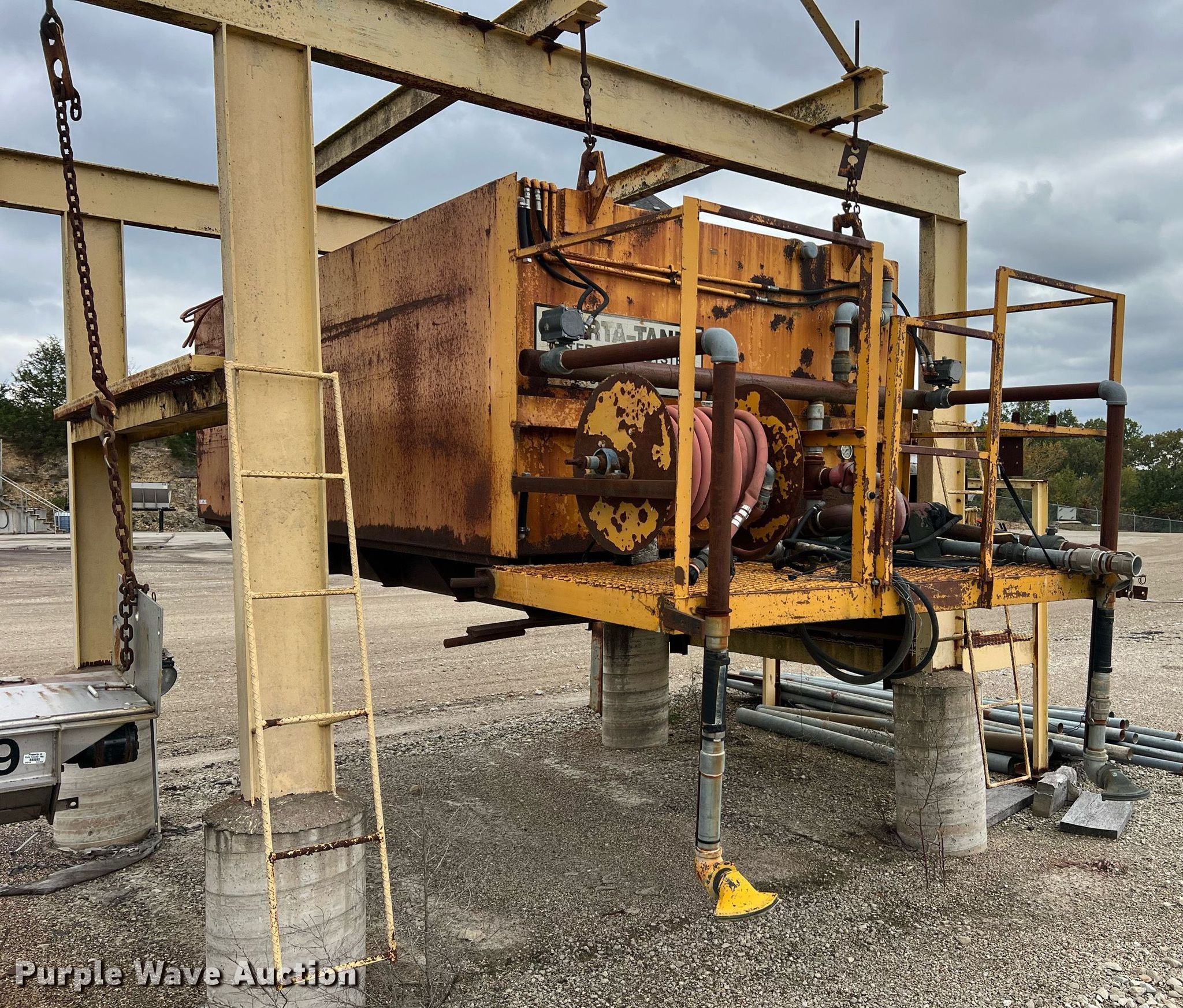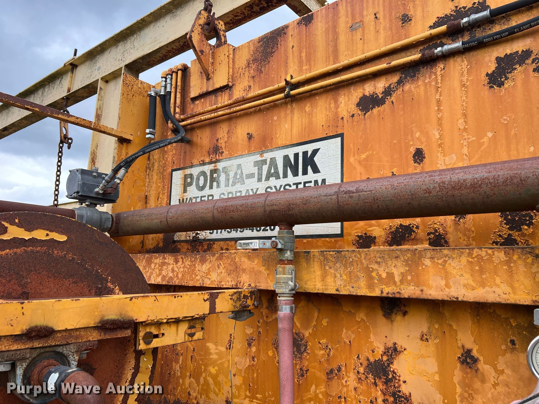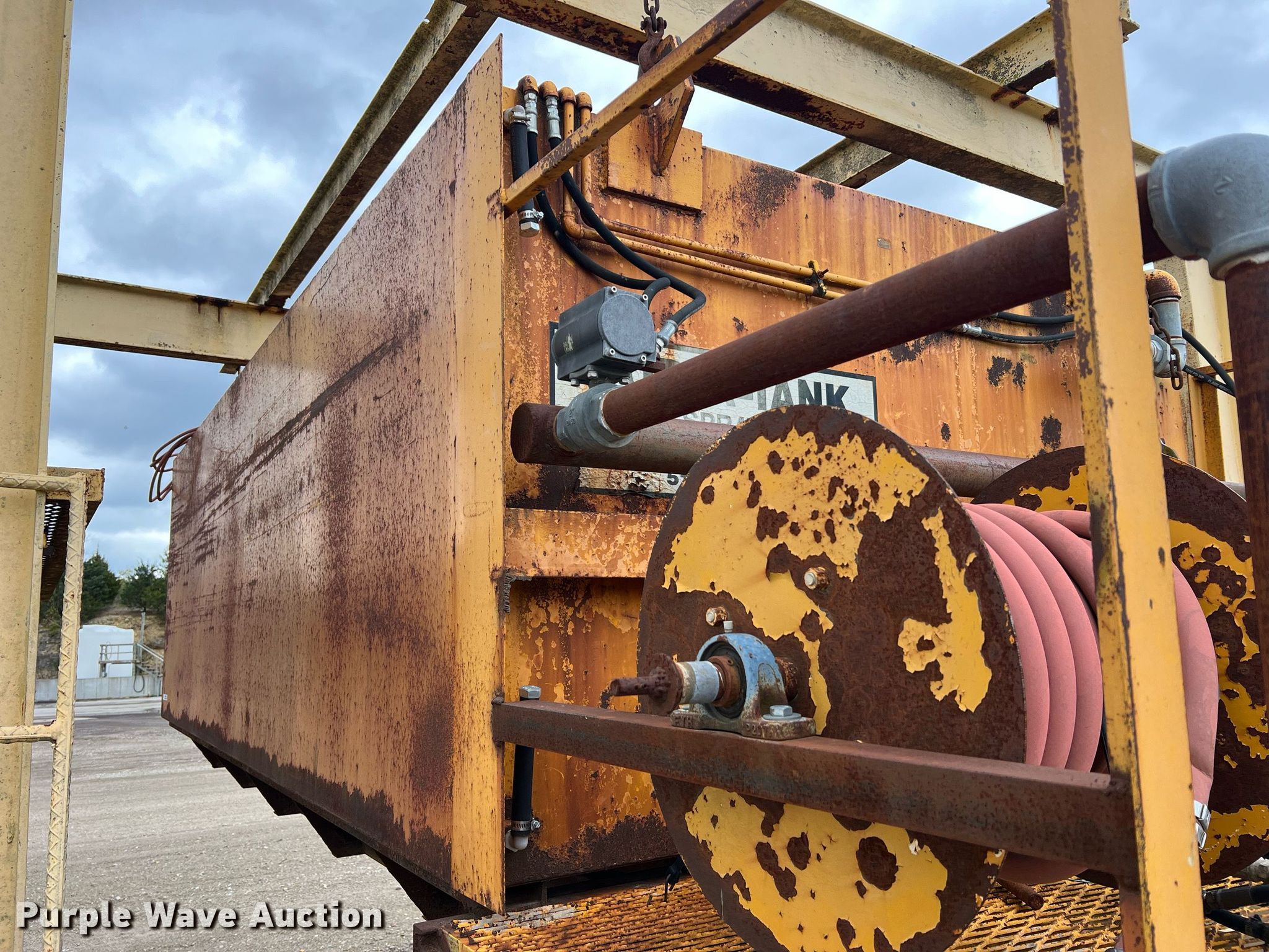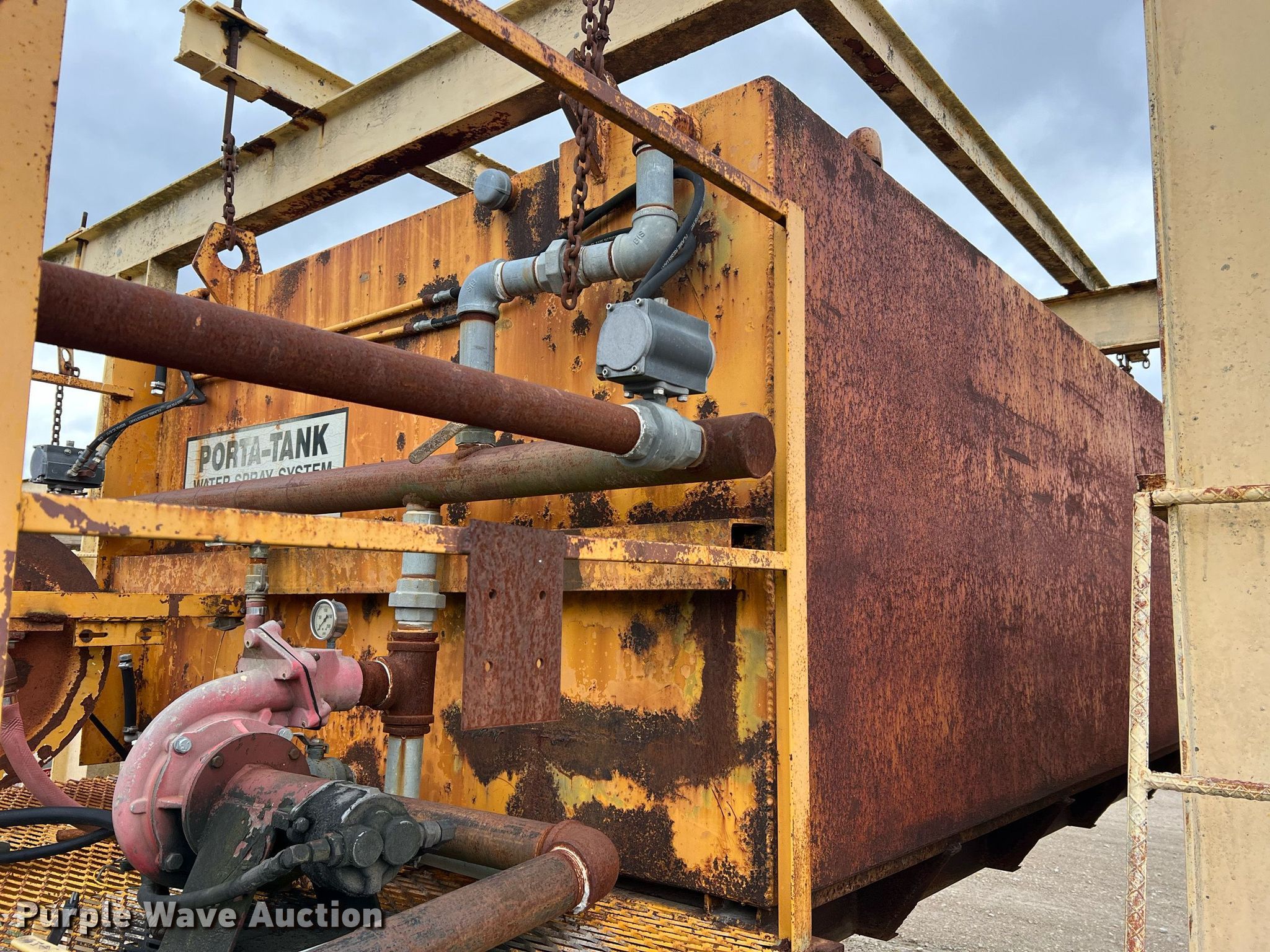 Purple Wave is selling a used Tanks in Missouri. This item is a Porta-Tank water spray system with the following: Steel tank, Capacity: 2000 Gallon, Hose reel with hose, (2) rear nozzles, Pump, 17'L x 80" W X 60" H, Unknown operating condition
