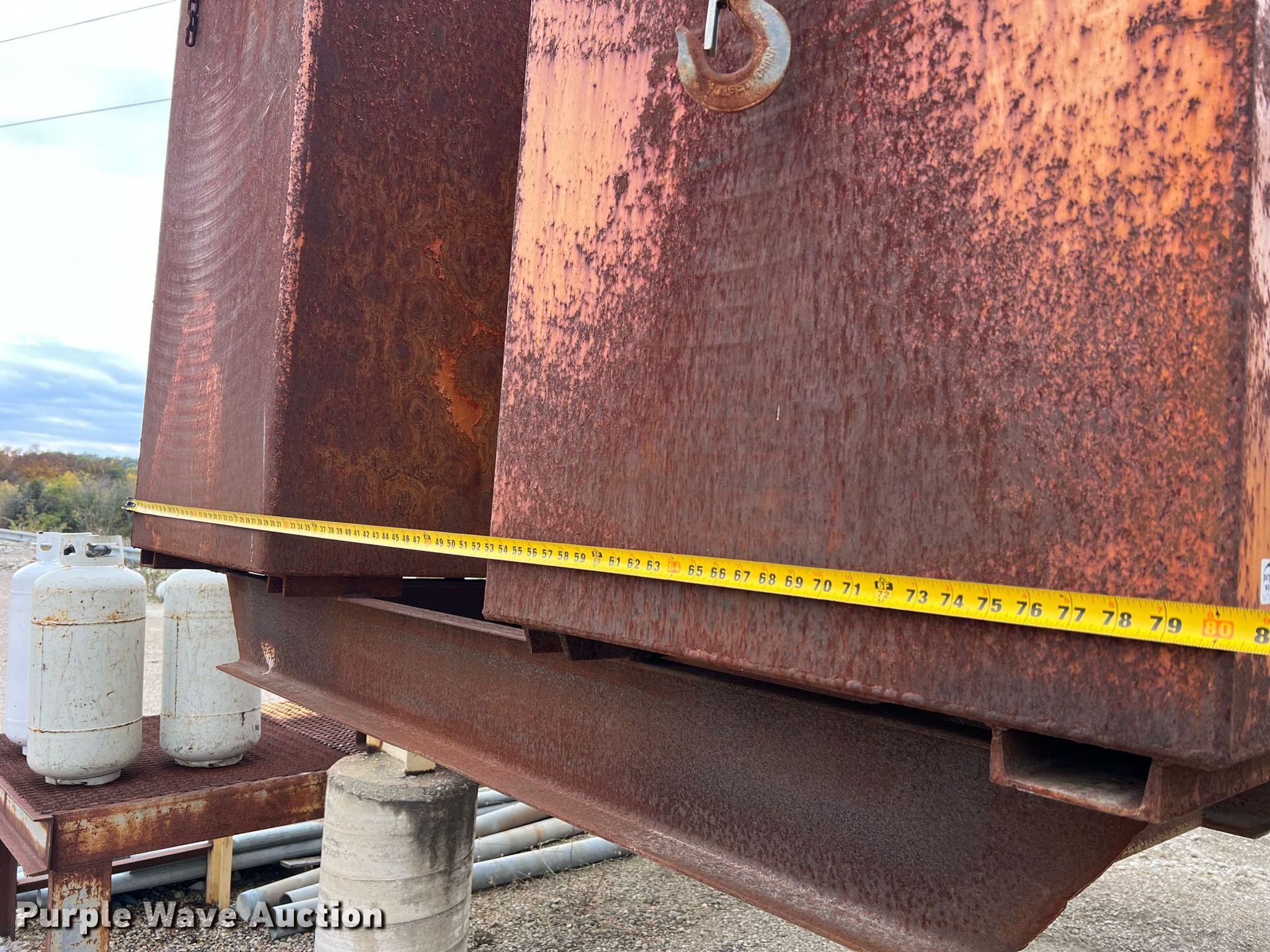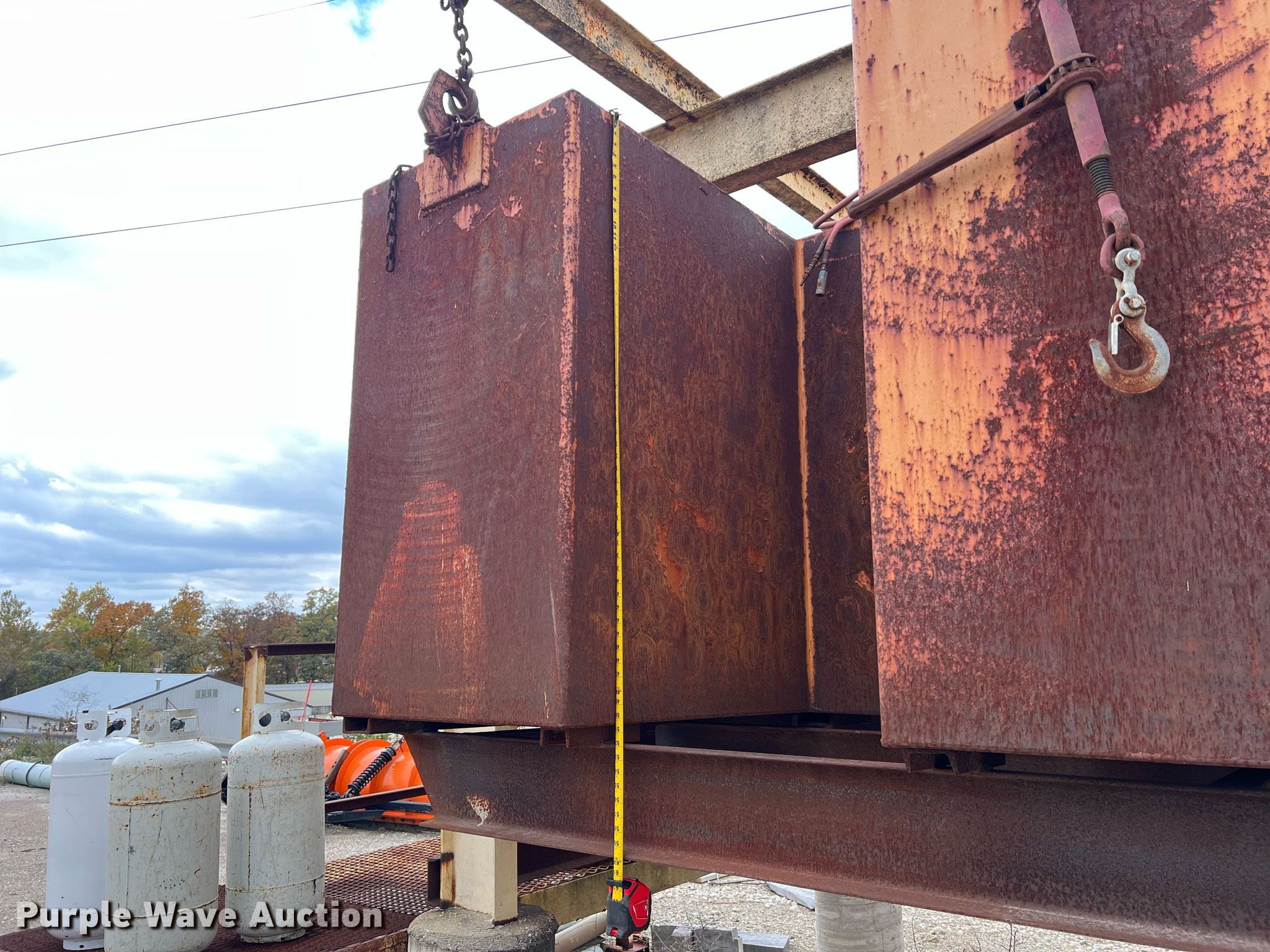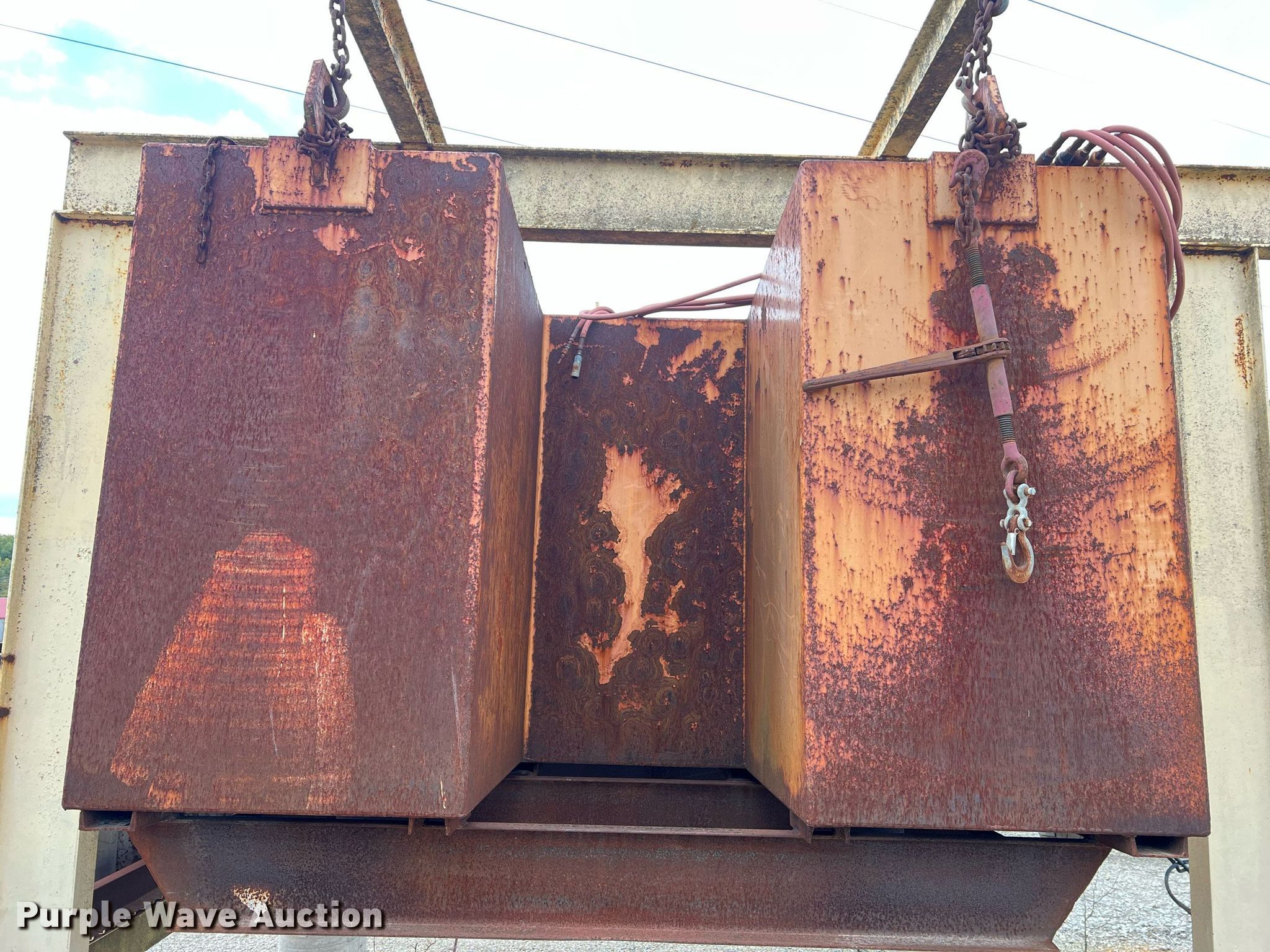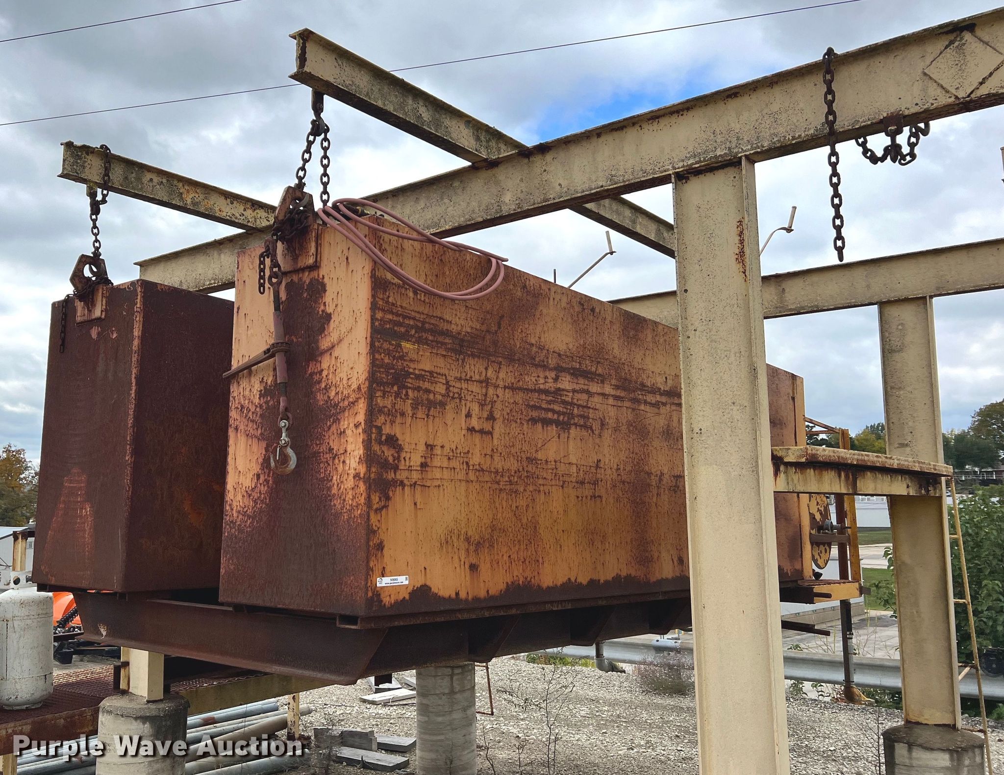 Purple Wave is selling a used Tanks in Missouri. This item is a Porta-Tank water spray system with the following: Steel tank, Capacity: 2000 Gallon, Hose reel with hose, (2) rear nozzles, Pump, 17'L x 80" W X 60" H, Unknown operating condition