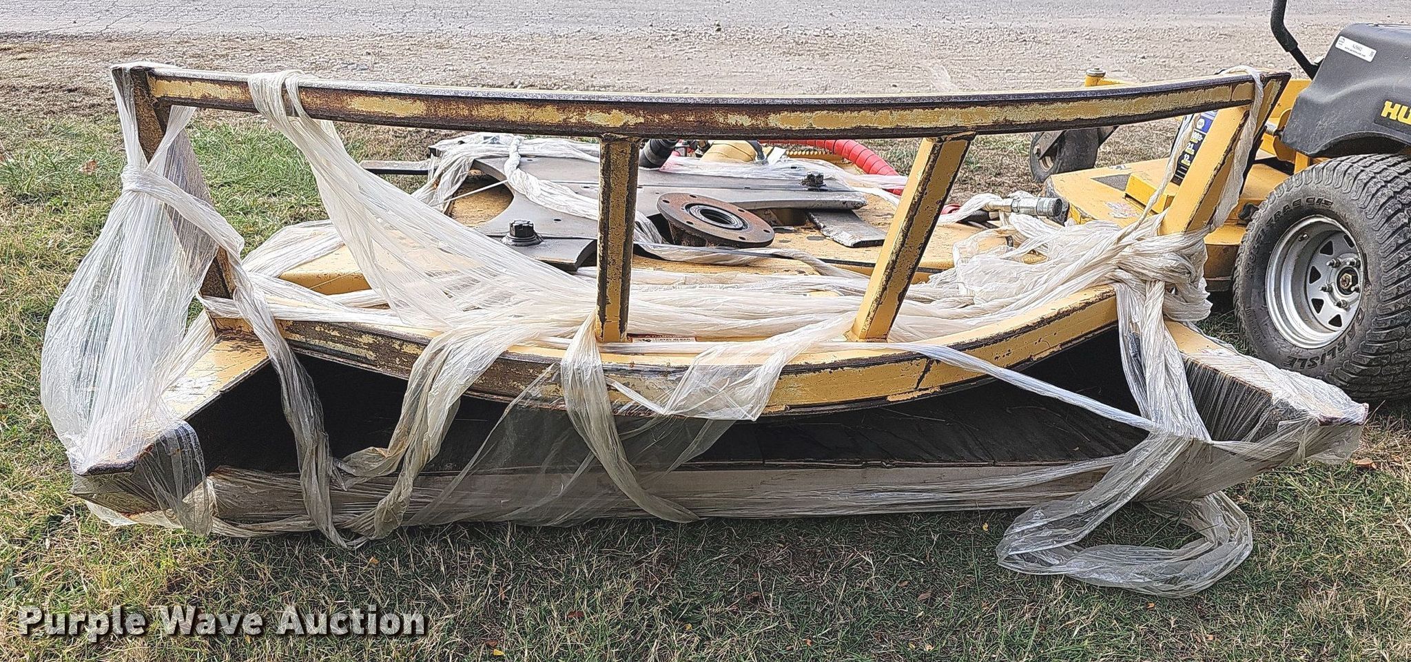 Purple Wave is selling a used Skid Steer Attach. in Kansas. This item is a Diamond 6' W skid steer rotary mower with the following: Hydraulic issues, Parts may be missing, Non-operational unit
