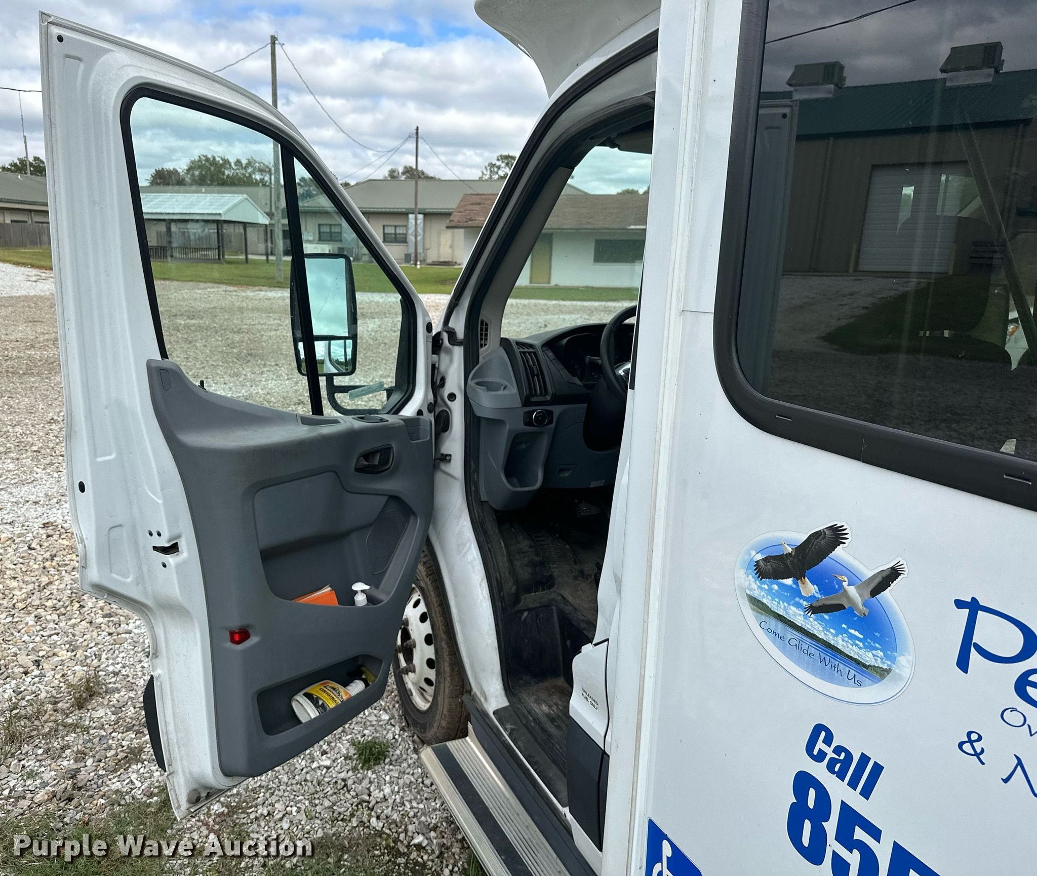 2018 Ford Transit T350HD shuttle bus. Miles: 105,693 on odometer, VIN: 1FDES8PMXJKA97653. Engine Displacement: 3.7 V6 DOHC, Cylinders: 6, Fuel type: Gas. Transmission Automatic. Chassis Axles: Single, Suspension: Spring, Brakes: Hydraulic. Interior AC, Heat, Cruise control, Passengers: 12, Adult seats: 10, Wheelchair lift. Tires Size: 195/75R16C. Notes Unknown operating condition of wheelchair lift, Non-operational engine, Non-operational unit. Oklahoma title. Title distribution may be delayed up to 14 days from verification of funds. Grand Gateway Economic Dev. Assc. DBA Pelivan Transit. Big Cabin, OK 74332