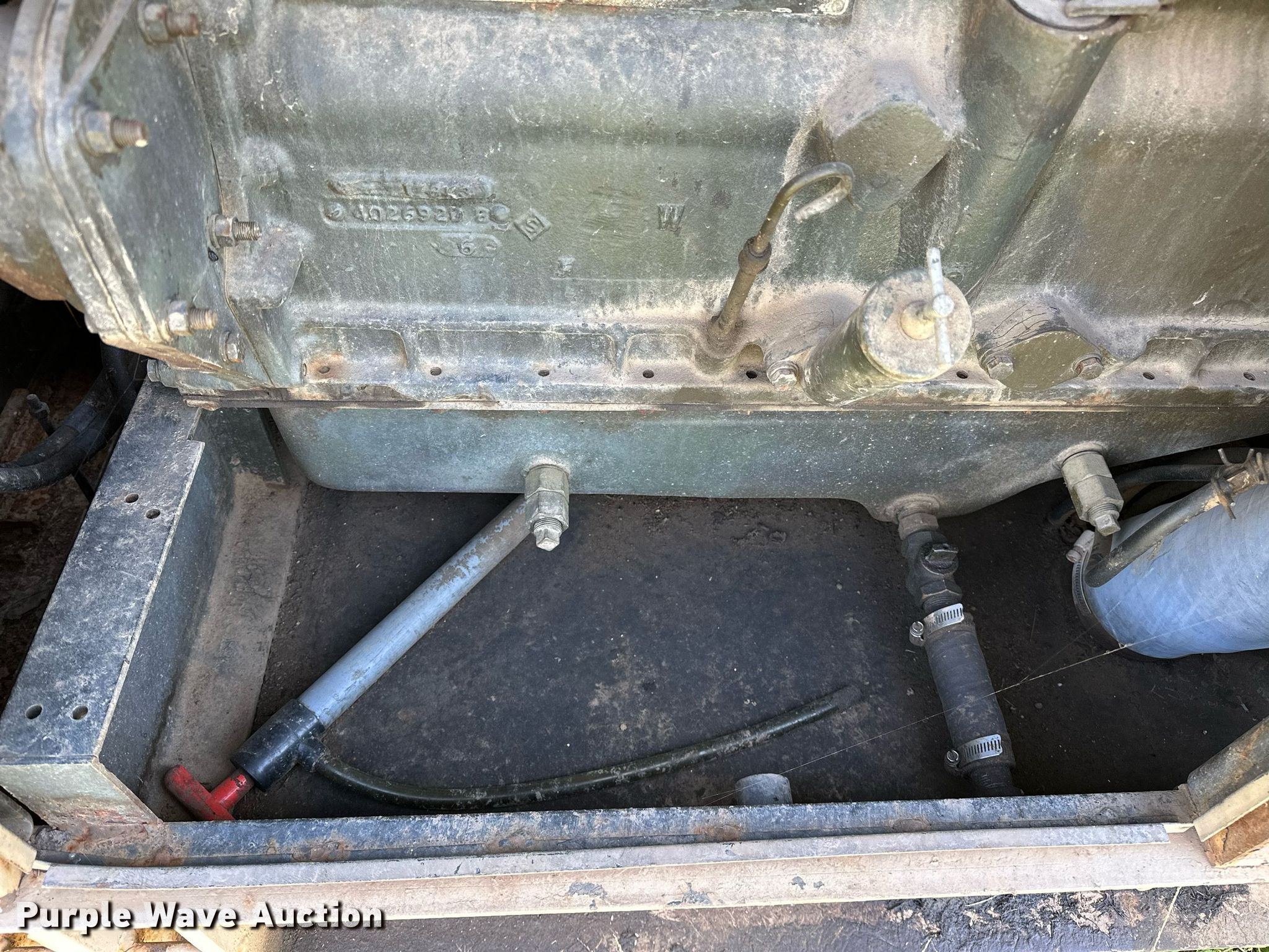 1974 Fermont MEP-006A generator. Hours: 872 on meter, Serial: FZ-00485. Engine Allis-Chalmers , Cylinders: 6, Fuel type: Diesel. Features Generator kW: 60, Phase: Three, Electric start, Fuel tank, Skid mounted. Notes Dead battery, Unknown operating condition. Washington Water Authority. 3685 East Heritage Parkway. Farmington, AR 72730