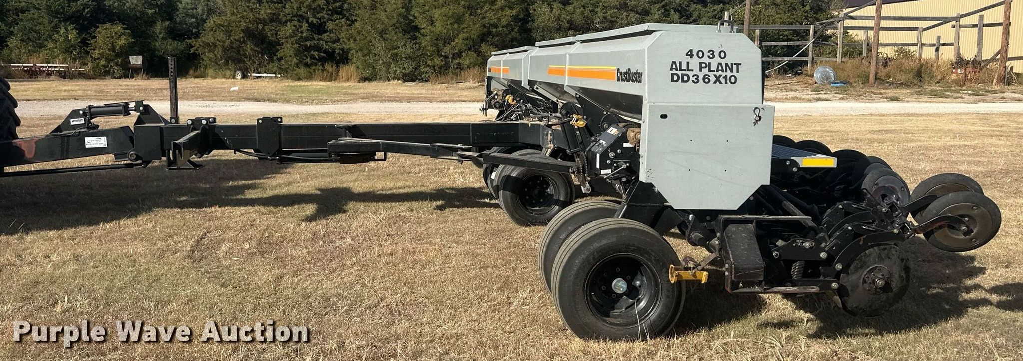 Purple Wave is selling a used Grain Drill or Seeder in Kansas. This item is a CrustBuster 4030 grain drill with the following: Serial: 18683, Width: 30', Row units: 36, Row spacing: 10"