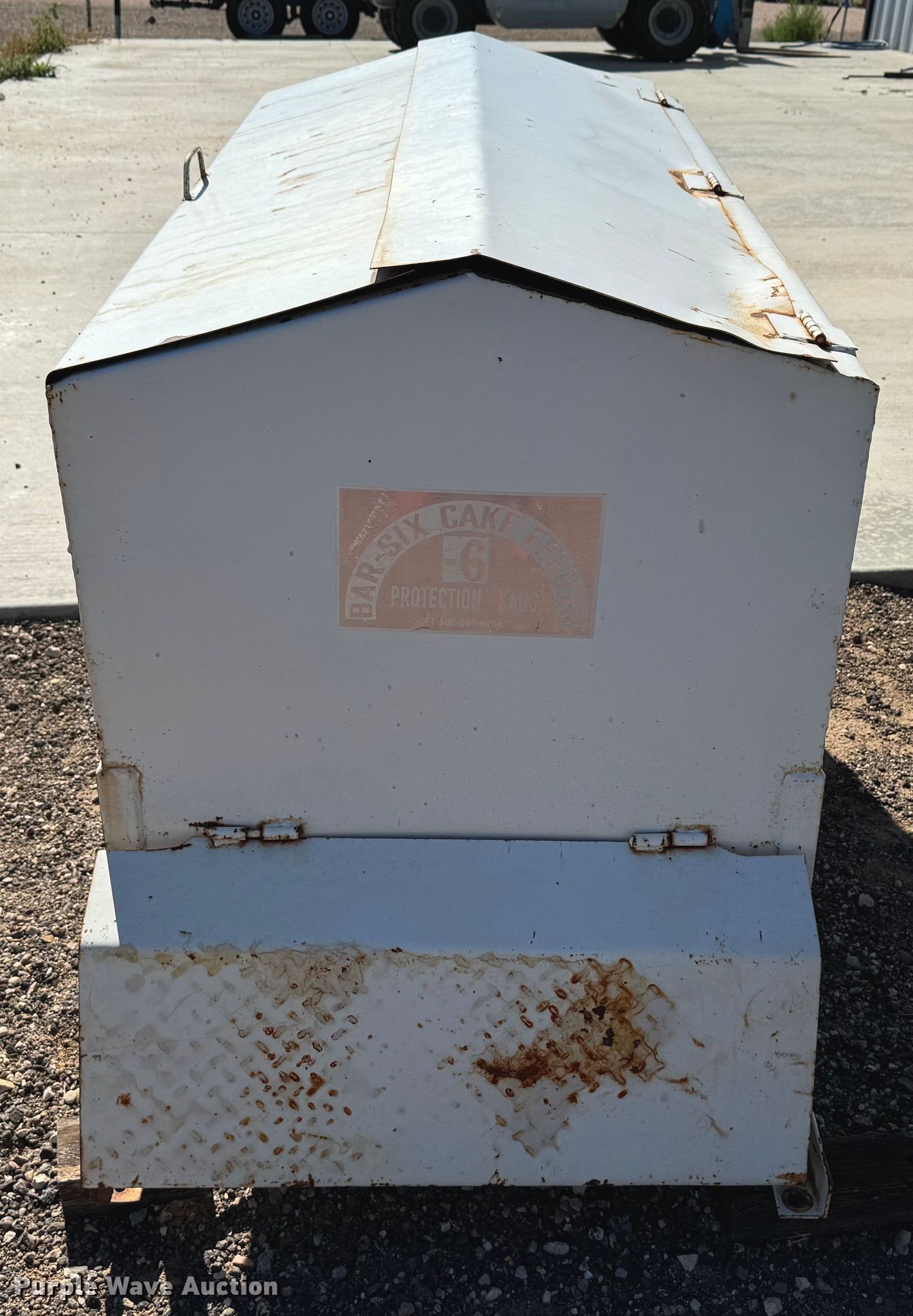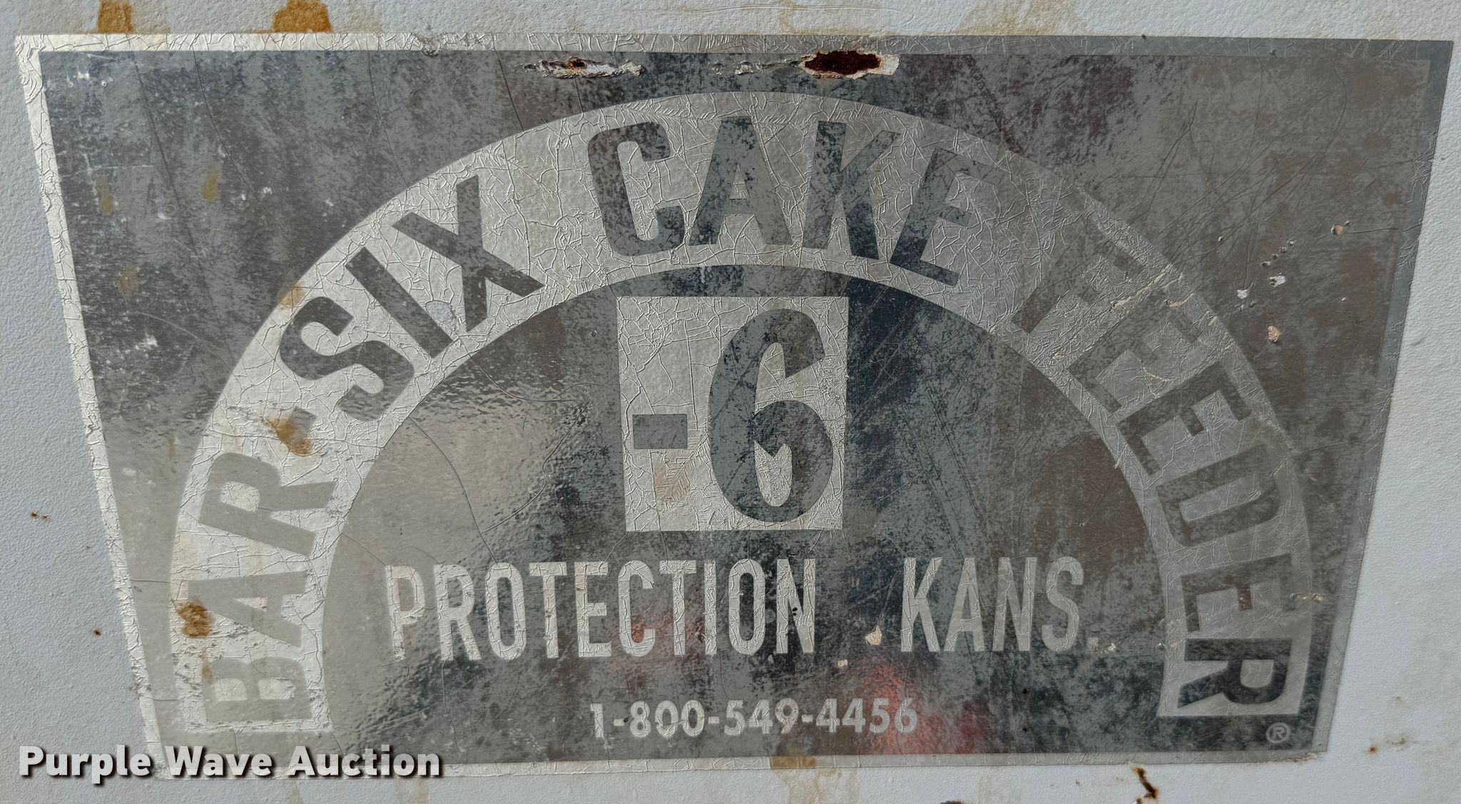 Purple Wave is selling a used Livestock Equip. in Texas. This item is a Bar-Six cake feeder with the following: Bar-Six cake feeder. Abernethy Fence Co.. 25700 Interstate 27. Canyon, TX 79015