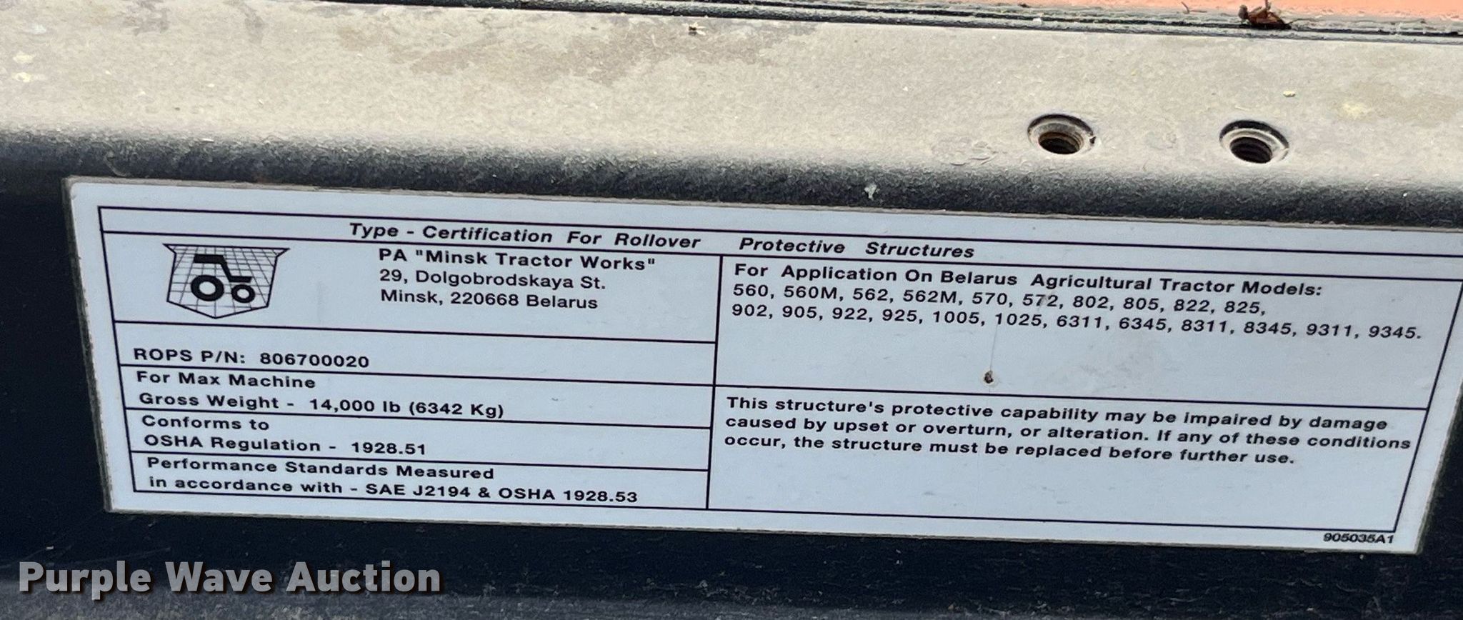 Purple Wave is selling a used Tractor in Missouri. This item is a Belarus 8345 MFWD tractor with the following: Hours: 2,103 on meter, Serial: 001596