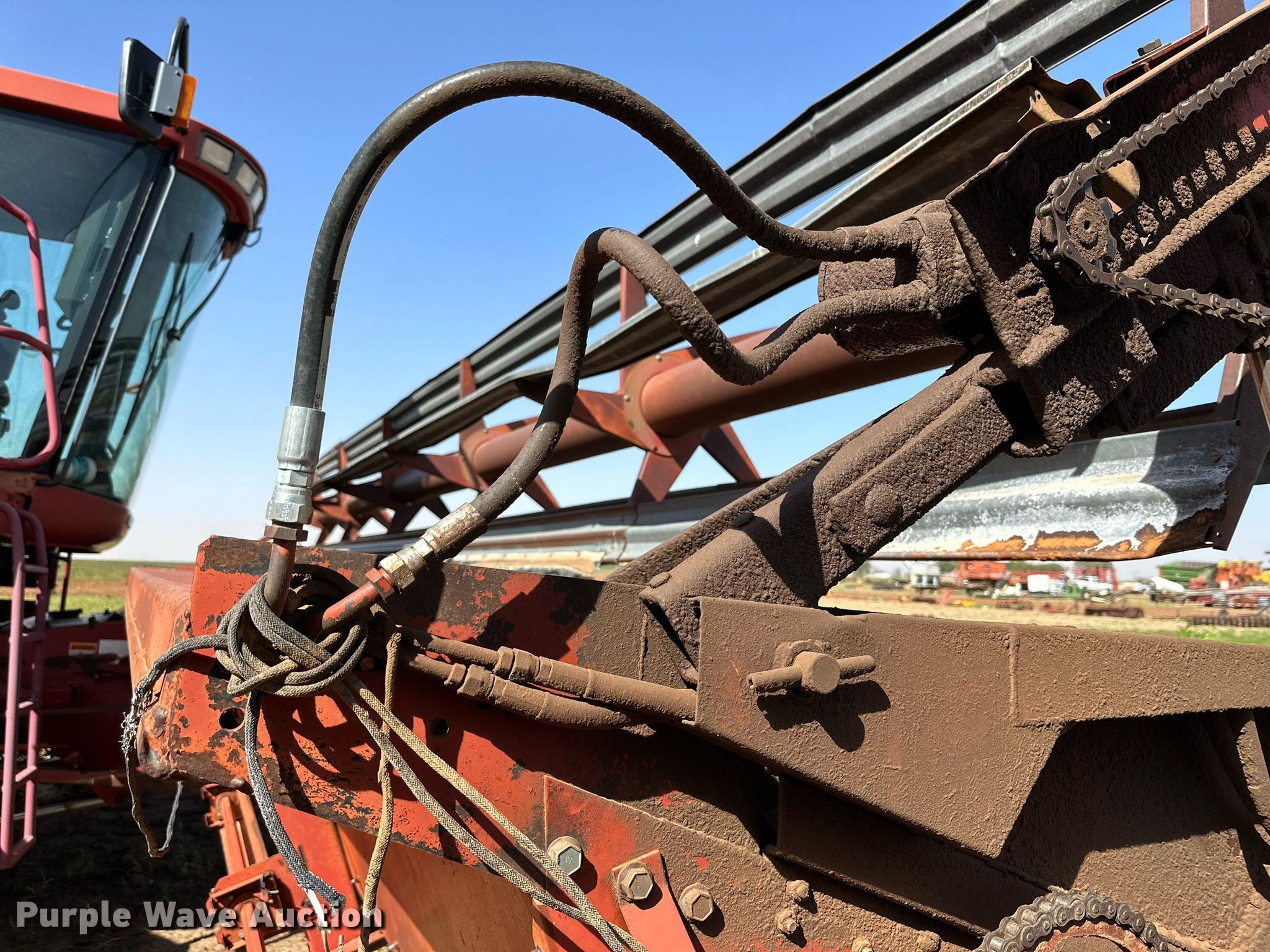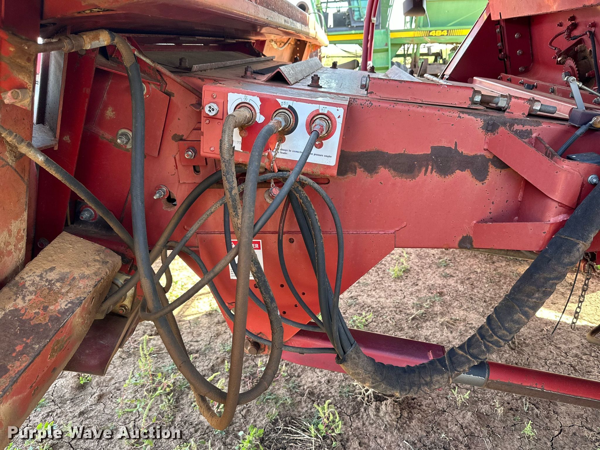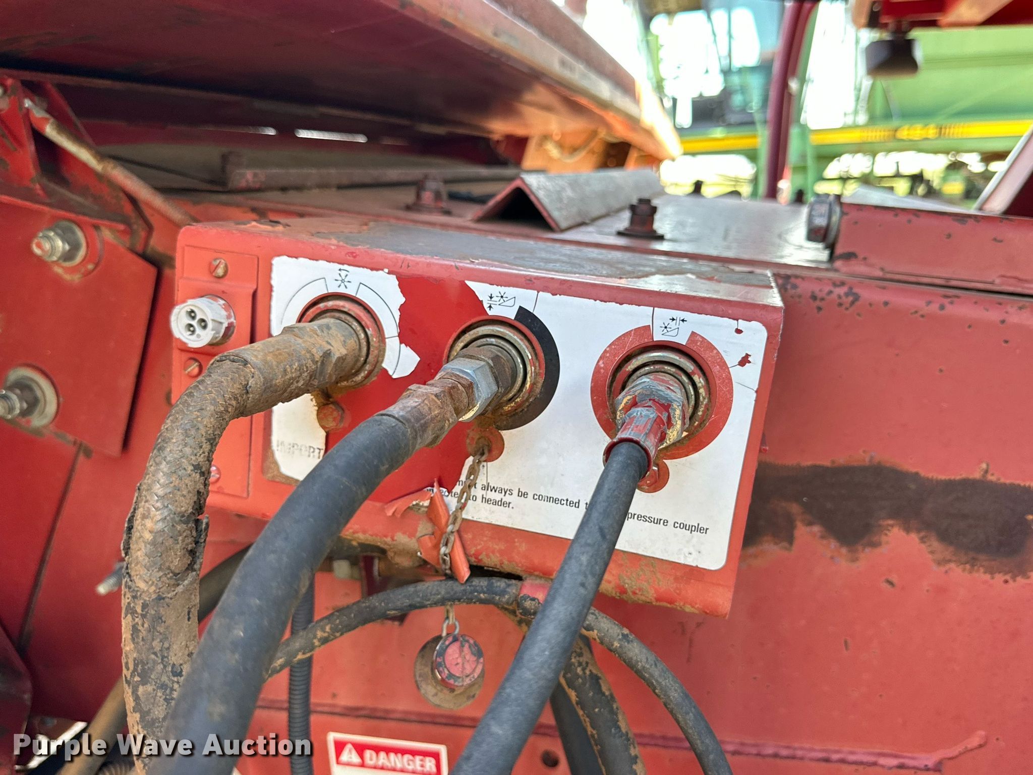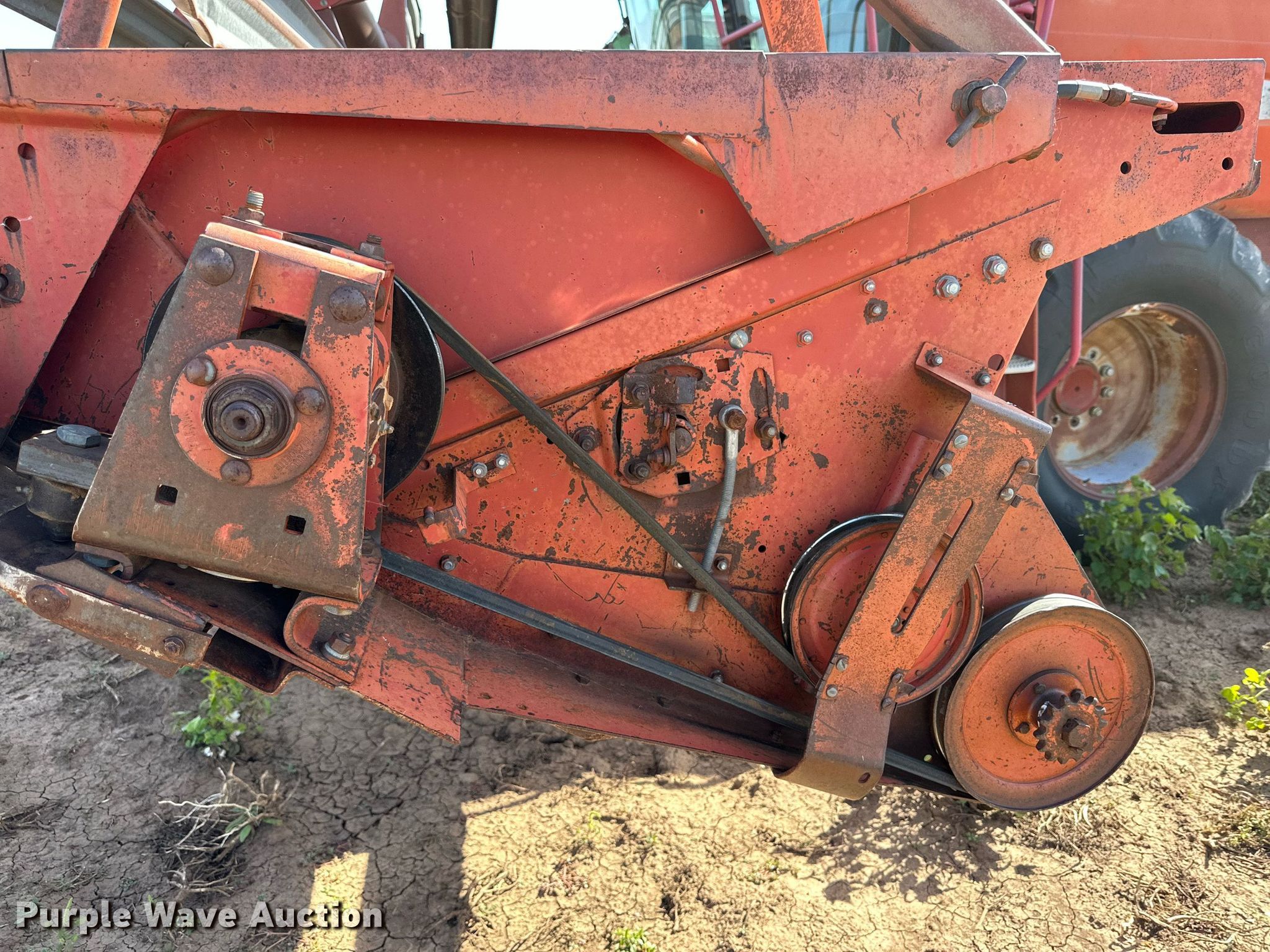 1997 Case IH 2188 combine. Engine hours: 5,807 on meter, Separator hours: 4,379 on meter, Serial: JJC0196671. Engine Cylinders: 6, Fuel type: Diesel. Transmission Hydrostatic. Interior AC, Heat. Features Feederhouse: Reverser, Chaff spreader, Unloading auger length: 17', Header International 810, Platform head Draper, Width: 30', Reel: Bat Hydraulic reel height control, Skid plates: Steel, Single point coupler, Drivelines: Dual. Tires Front: 30.5-32, Rear: 14.9-24. Notes Dead battery. 11209 Farm to Market Road 2641. Shallowater, TX 79363