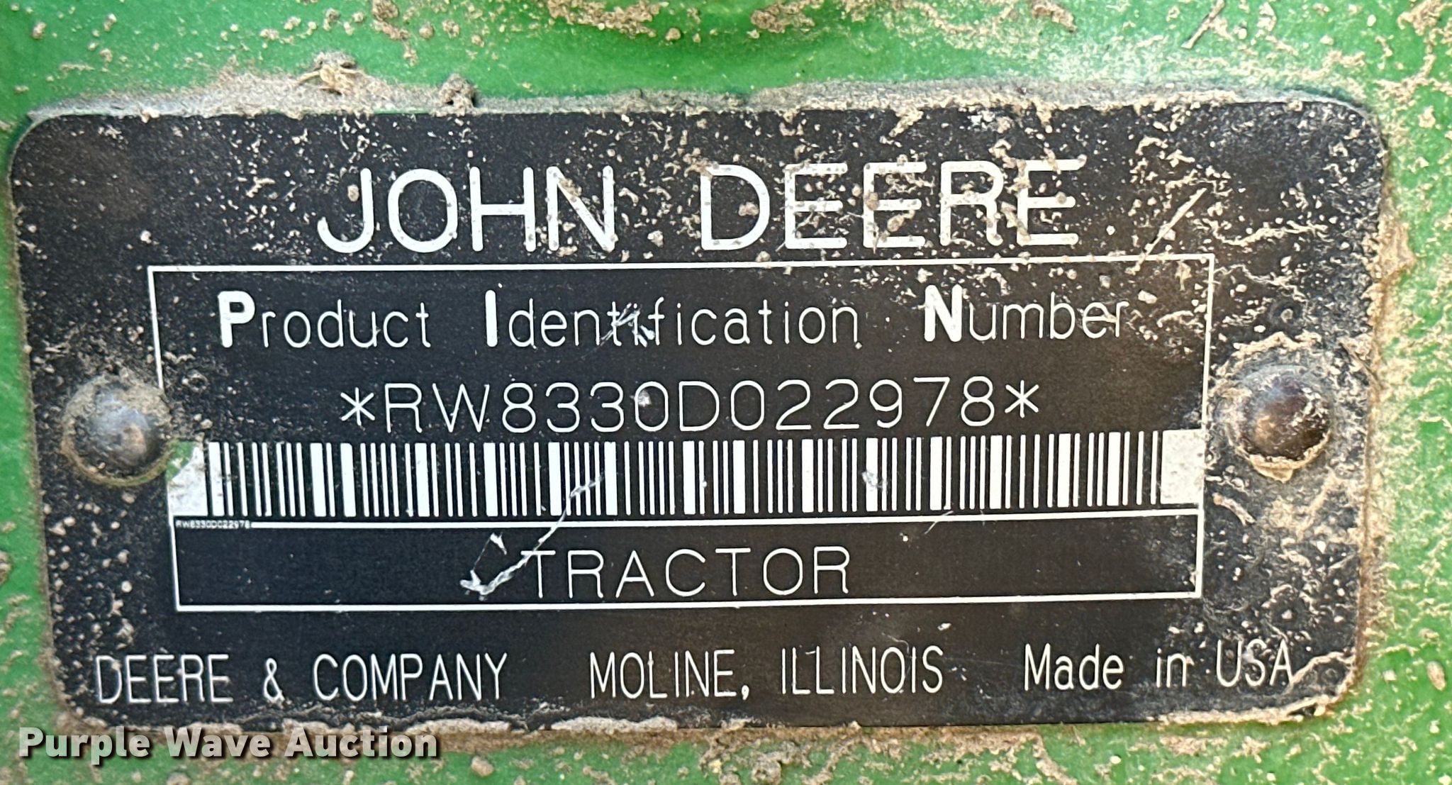 Purple Wave is selling a used Tractor in Kansas. This item is a 2008 John Deere 8330 MFWD tractor with the following: Hours: 14,495 on meter, Serial: RW8330D022978