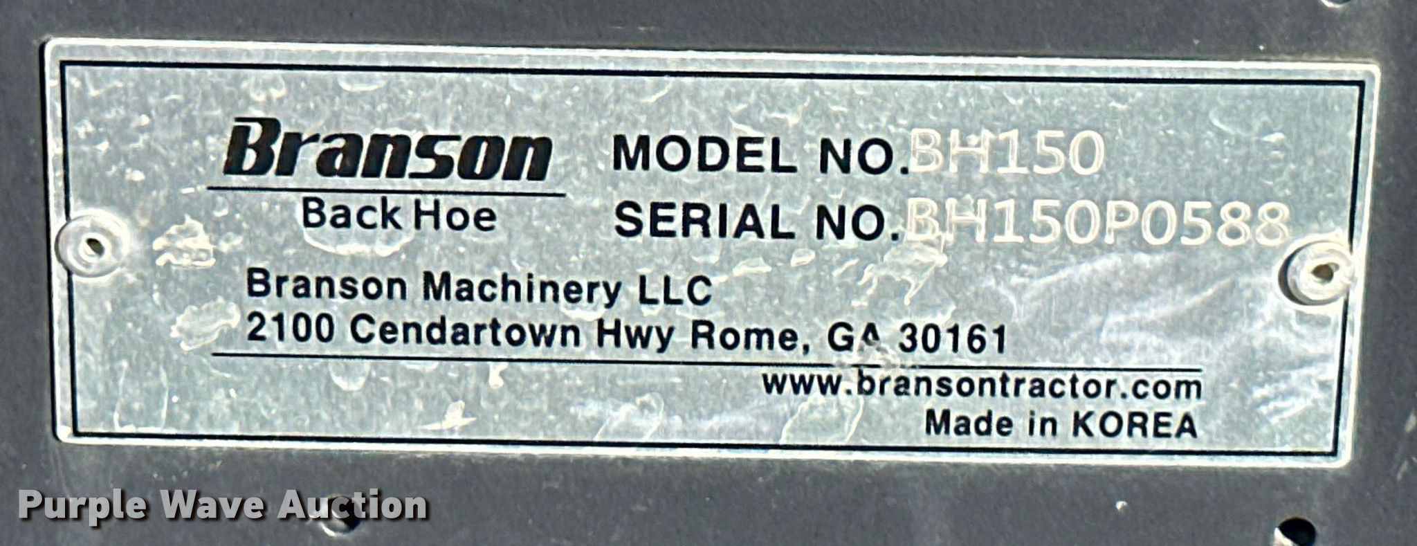 Purple Wave is selling a used Ag Tractor Loader or Attach. in Missouri. This item is a Branson BH150 backhoe attachment with the following: Serial: BH150P0588, Unit still in use