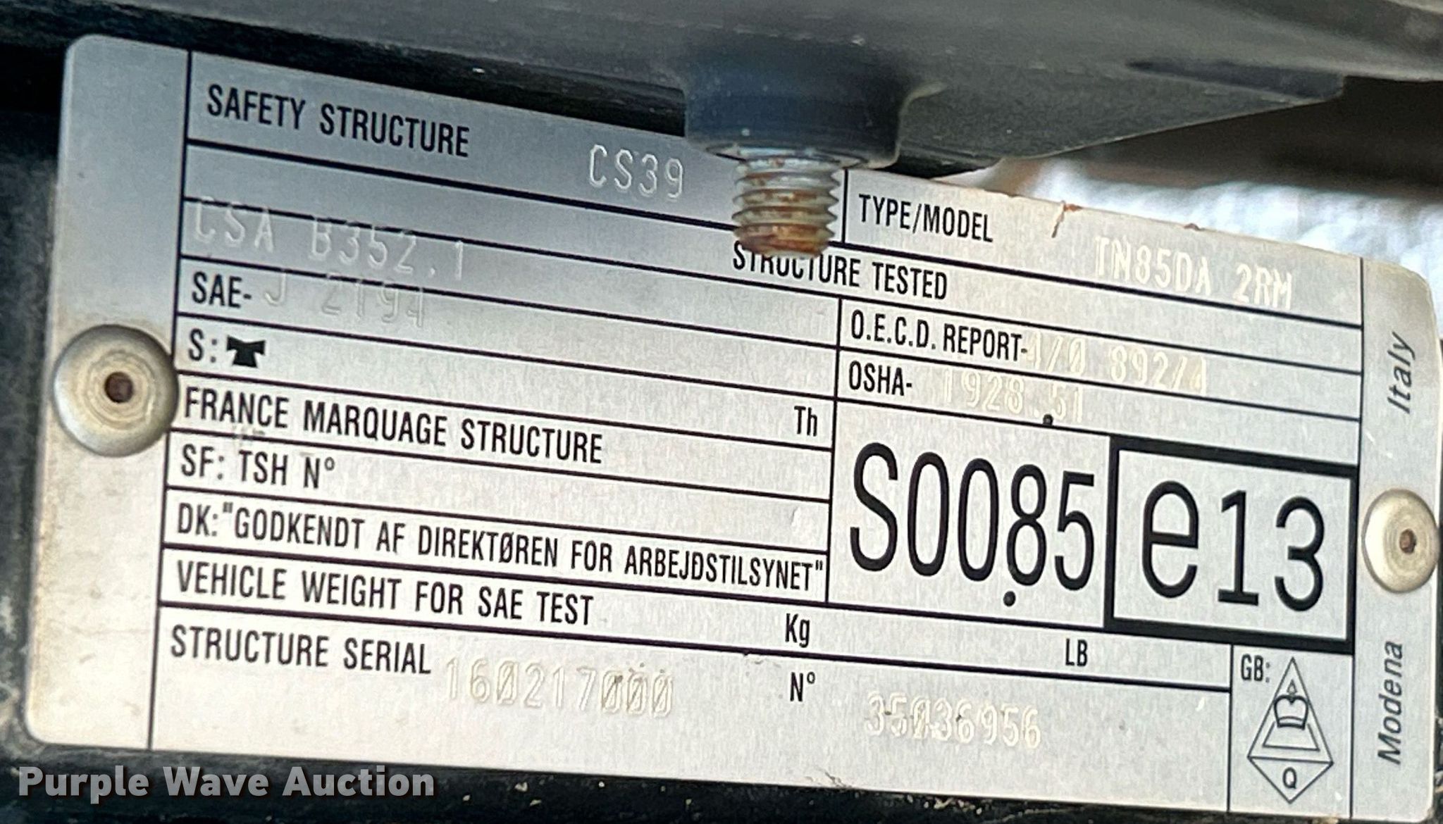 2007 New Holland TN85DA tractor. Hours: 4,729 on meter, Serial: HJE075375. Engine CNH, Cylinders: 4, Fuel type: Diesel, HP: 80. Transmission Synchro, 16F - 16R, Left-hand reverser, Differential lock. Operators station AC, Heat. Features PTO: 540, Three point, Hydraulic remote sets Rear: 3, Loader Rhino 4211B, Controls: Joystick, Bucket Width: 72".. Tires Front: 11L-15, Rear: 16.9-24, Wheel weights: 2. Midwest Vac Products. 7627 Richter Road. Mascoutah, IL 62258