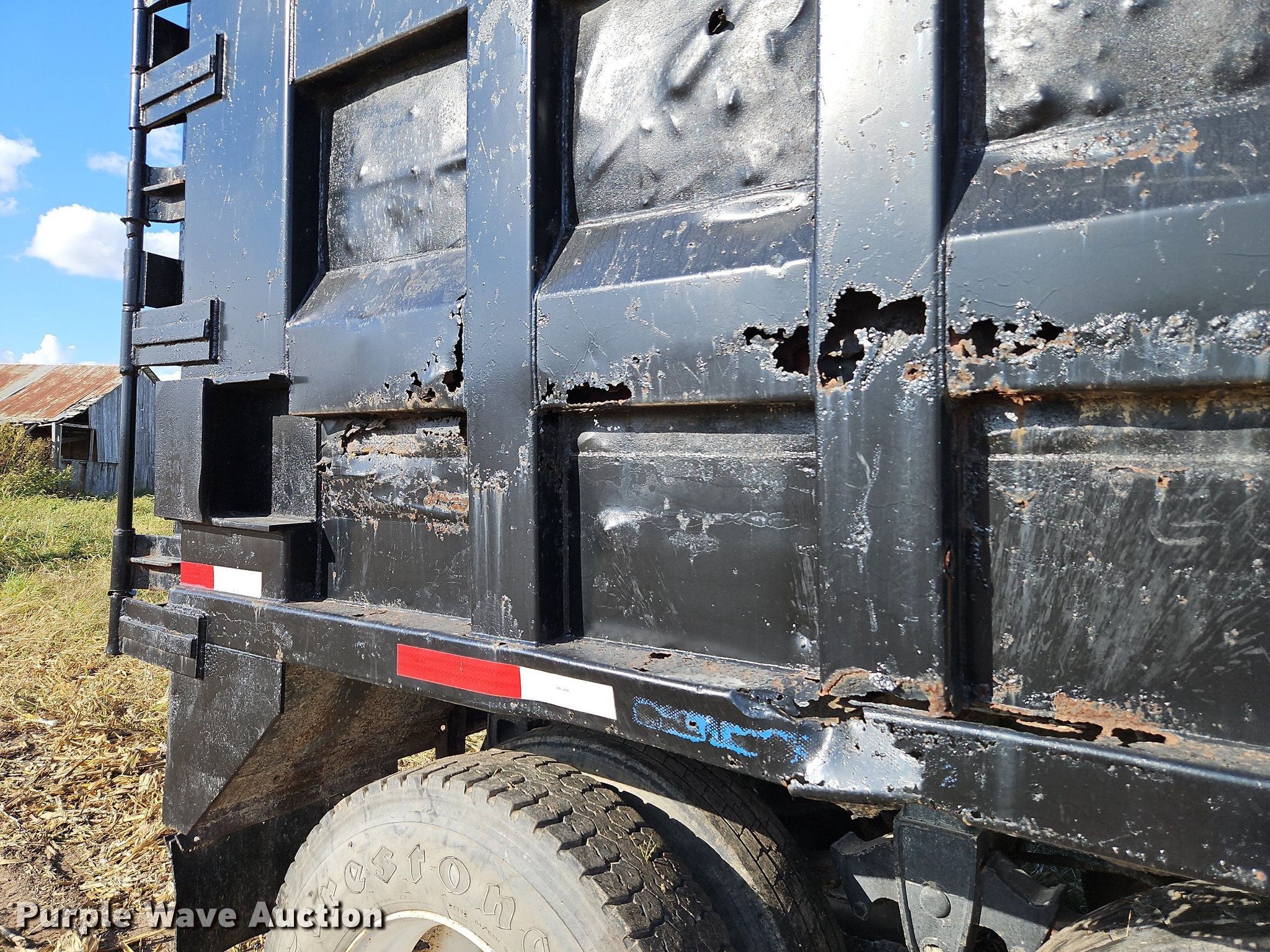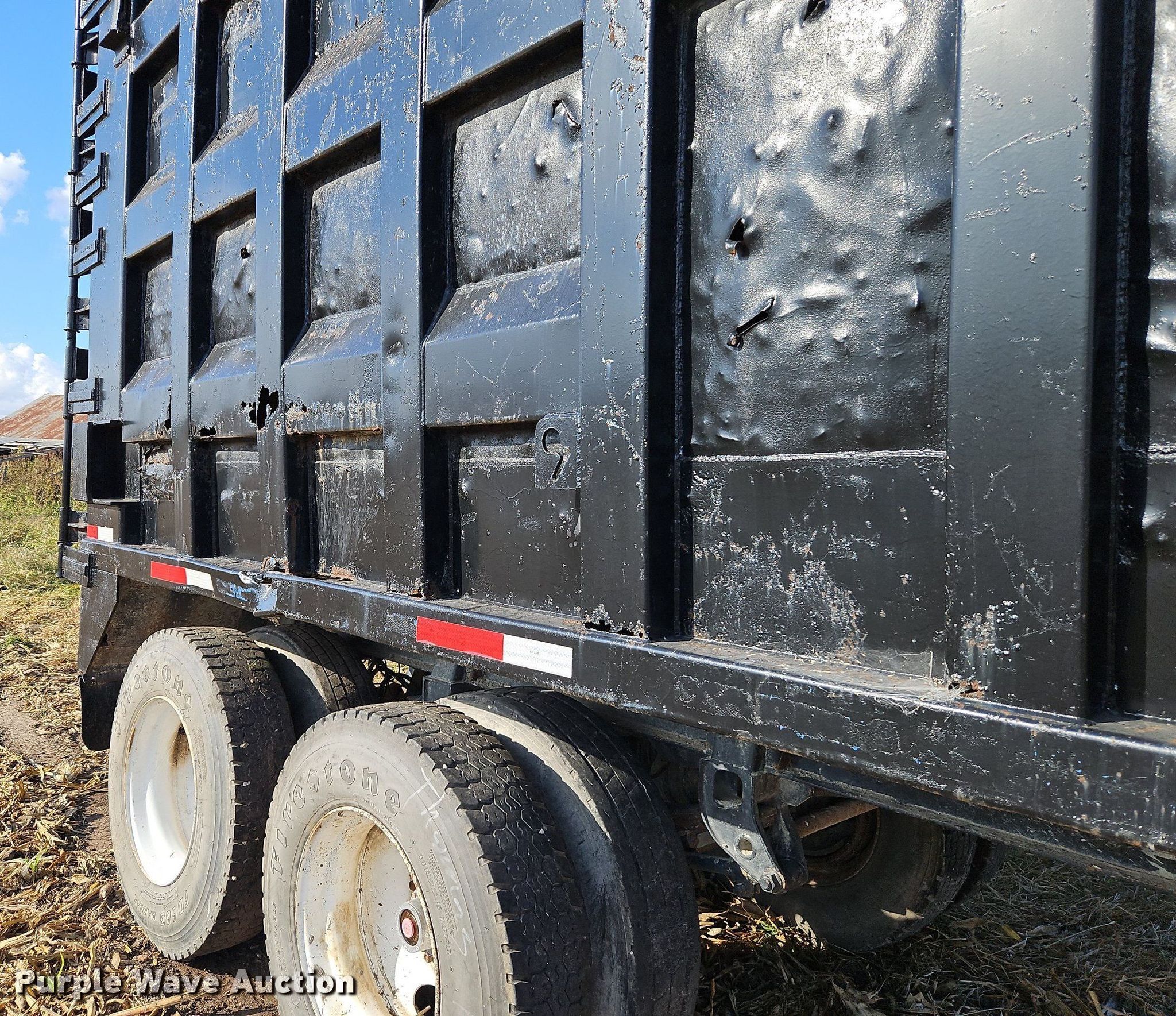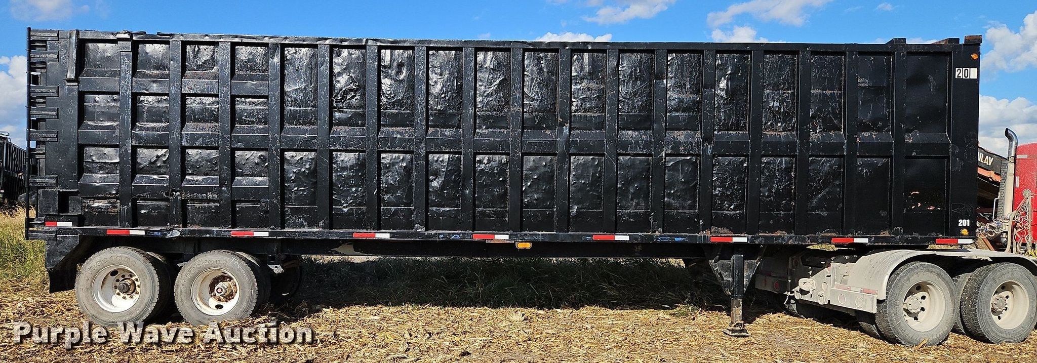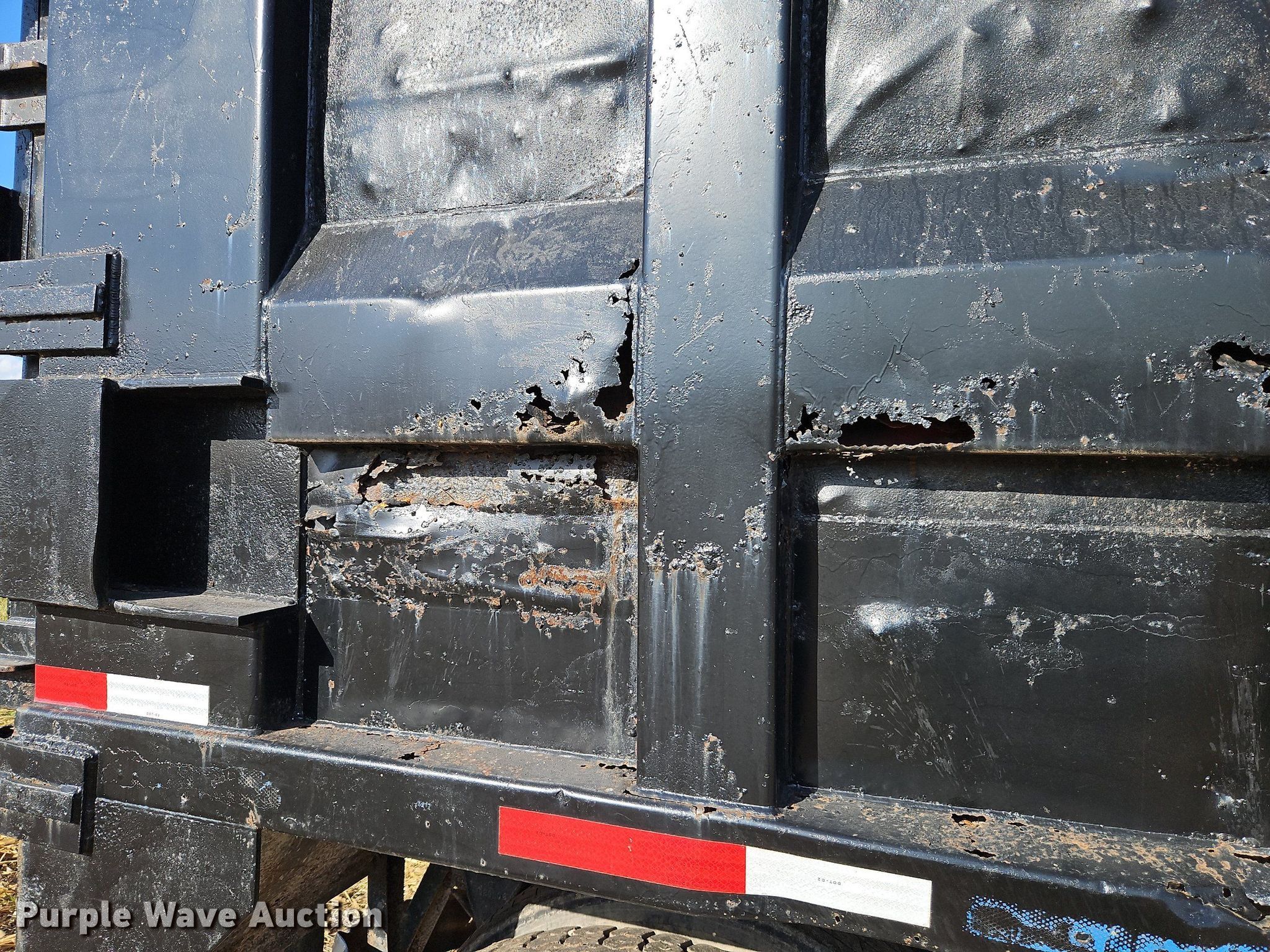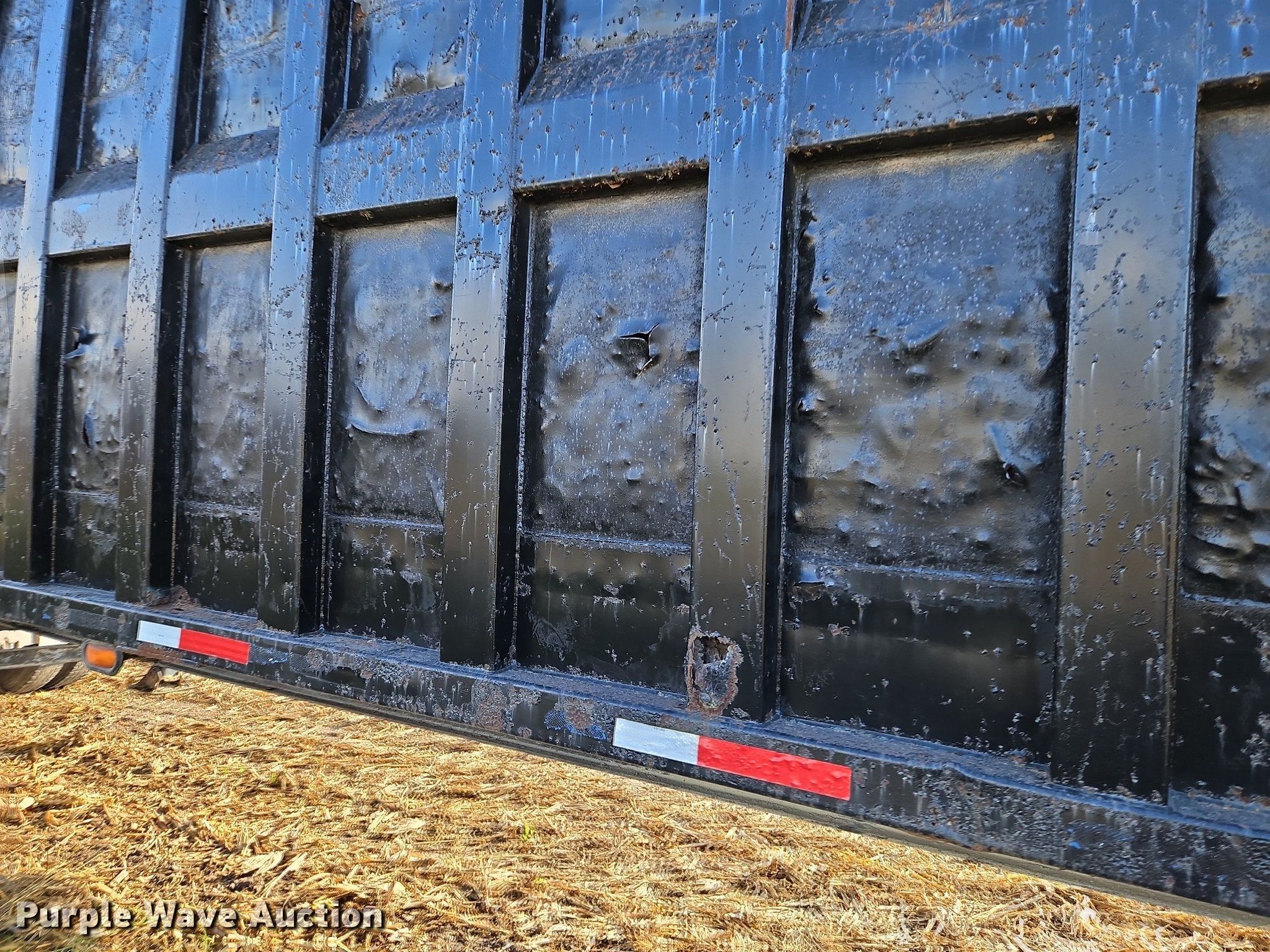 1996 Steco SEC38696 refuse trailer. VIN: 1S9ESM2T6T1252534. Dimensions Overall: 38' 6" L x 8' W, Deck: 38' 6" L x 8' W, Side height: 8'. Features Deck type: Steel. Chassis Landing gear: Dual, Suspension: Spring, Brakes: Air, Axles: Tandem, GVWR: 80,000 lbs, GAWR: 25,000 lbs. Tires Steel wheels, Size: 11R22.5. Notes Semi truck not included, Hydraulic cylinder and other parts may be missing, Non-operational unit. Kansas title. Bair Roll Off Service. 2785 West 247th Street. Louisburg, KS 66053