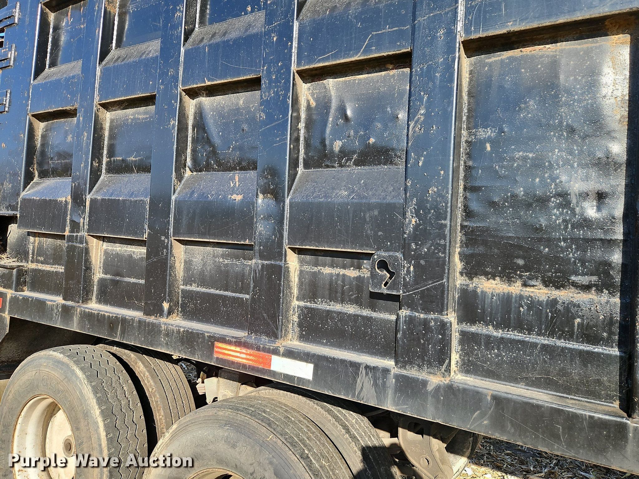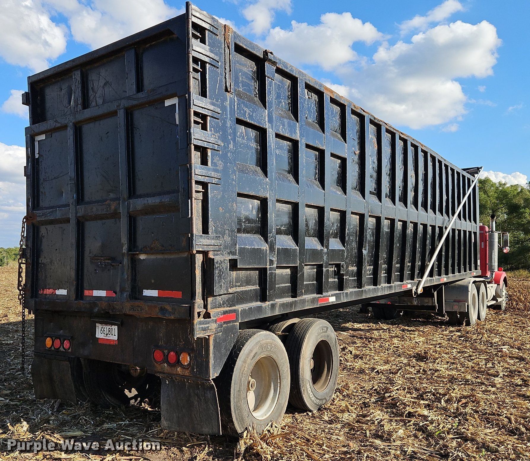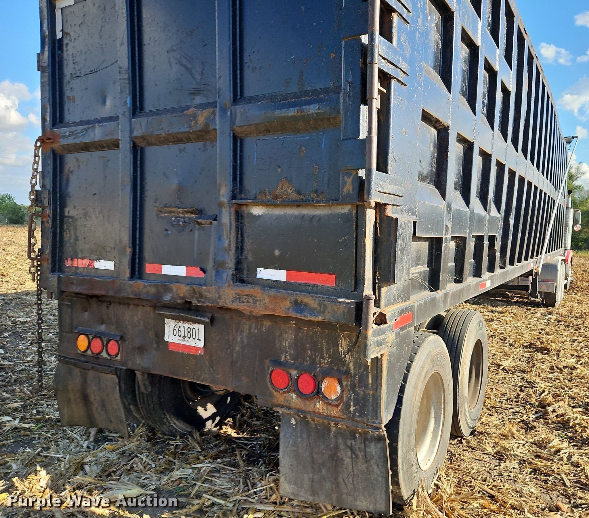 1996 Steco SEC38696 refuse trailer. VIN: 1S9ESM2T0T1252531. Dimensions Overall: 38' 6" L x 8' W, Deck: 38' 6" L x 8' W, Side height: 8'. Features Deck type: Steel. Chassis Landing gear: Dual, Suspension: Spring, Brakes: Air, Axles: Tandem, GVWR: 80,000 lbs, GAWR: 25,000 lbs. Tires Steel wheels, Size: 11R22.5. Notes Semi truck not included, Parts may be missing, Non-operational unit. Kansas title. Title distribution may be delayed up to 14 days from verification of funds. Bair Roll Off Service. 2785 West 247th Street. Louisburg, KS 66053