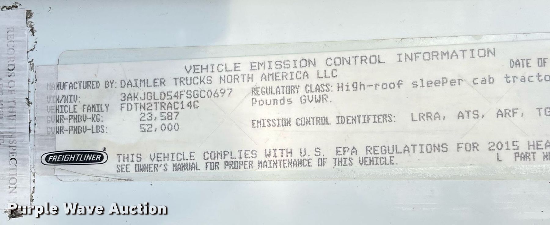 • VIN: 3AKJGLD54FSGC0697