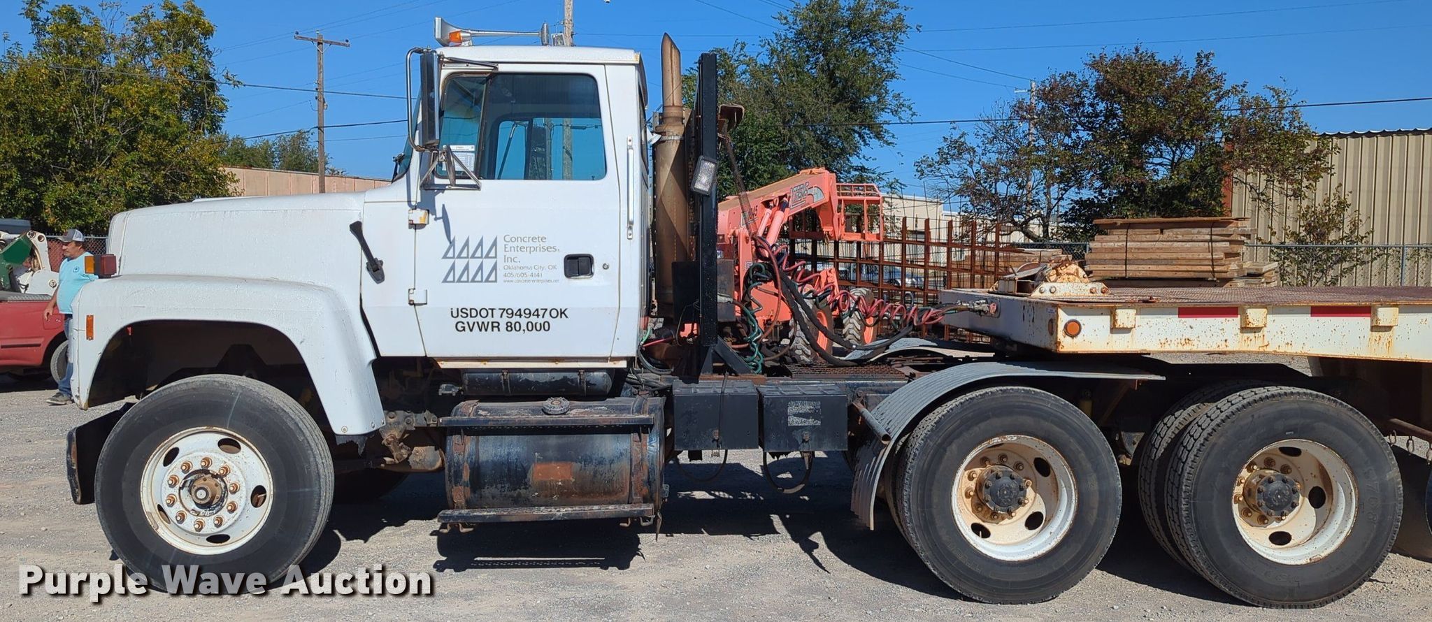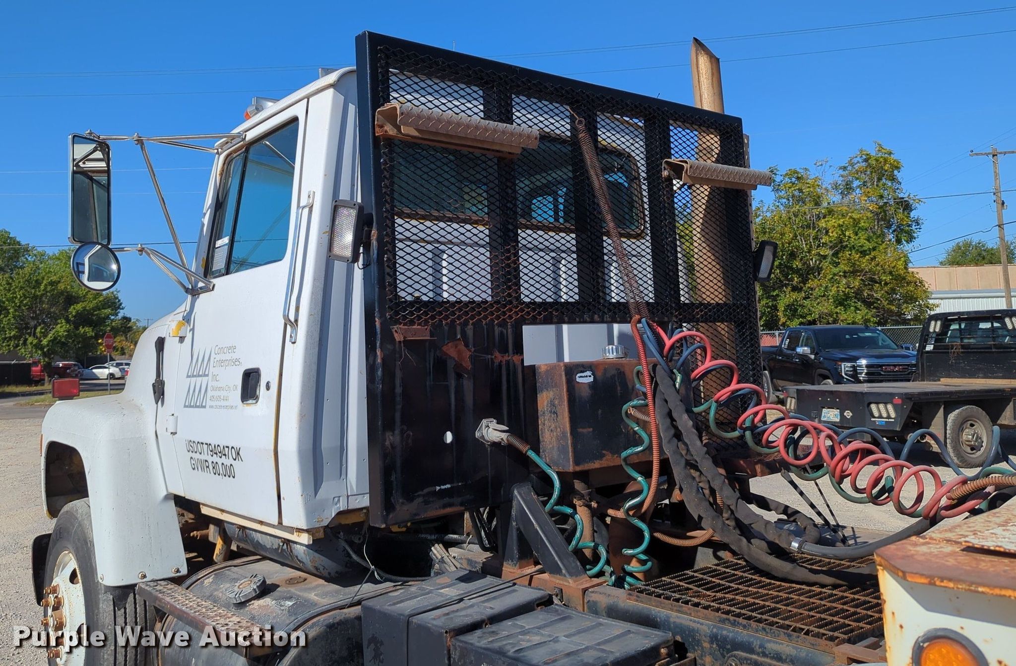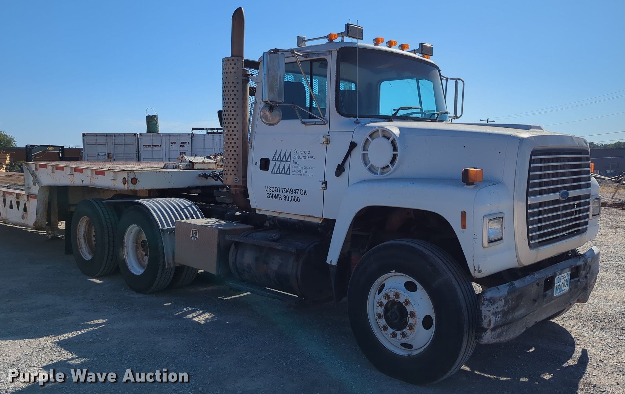 1997 Ford LT9000 semi truck. Miles: 371,813 on odometer, VIN: 1FDYU90U1VVA05549. Engine Cummins , Displacement: 14.0L, Cylinders: 6, Fuel type: Diesel, Engine brake. Transmission Roadranger, Manual, Speed: 10. Chassis Axles: Tandem, Suspension: Air, Brakes: Air, PTO, Wet kit, GVWR: 50,000 lbs, Wheelbase: 174". Interior AC, Heat, Cruise control. Features Deck plate: Steel, Fifth wheel type: Sliding, Fuel tank: Dual. Tires Size: 11R22.5. Notes Trailer not included. Oklahoma title. Title distribution may be delayed up to 30 days from verification of funds. Concrete Enterprises, Inc.. 200 NE 46th St. Oklahoma City, OK 73105