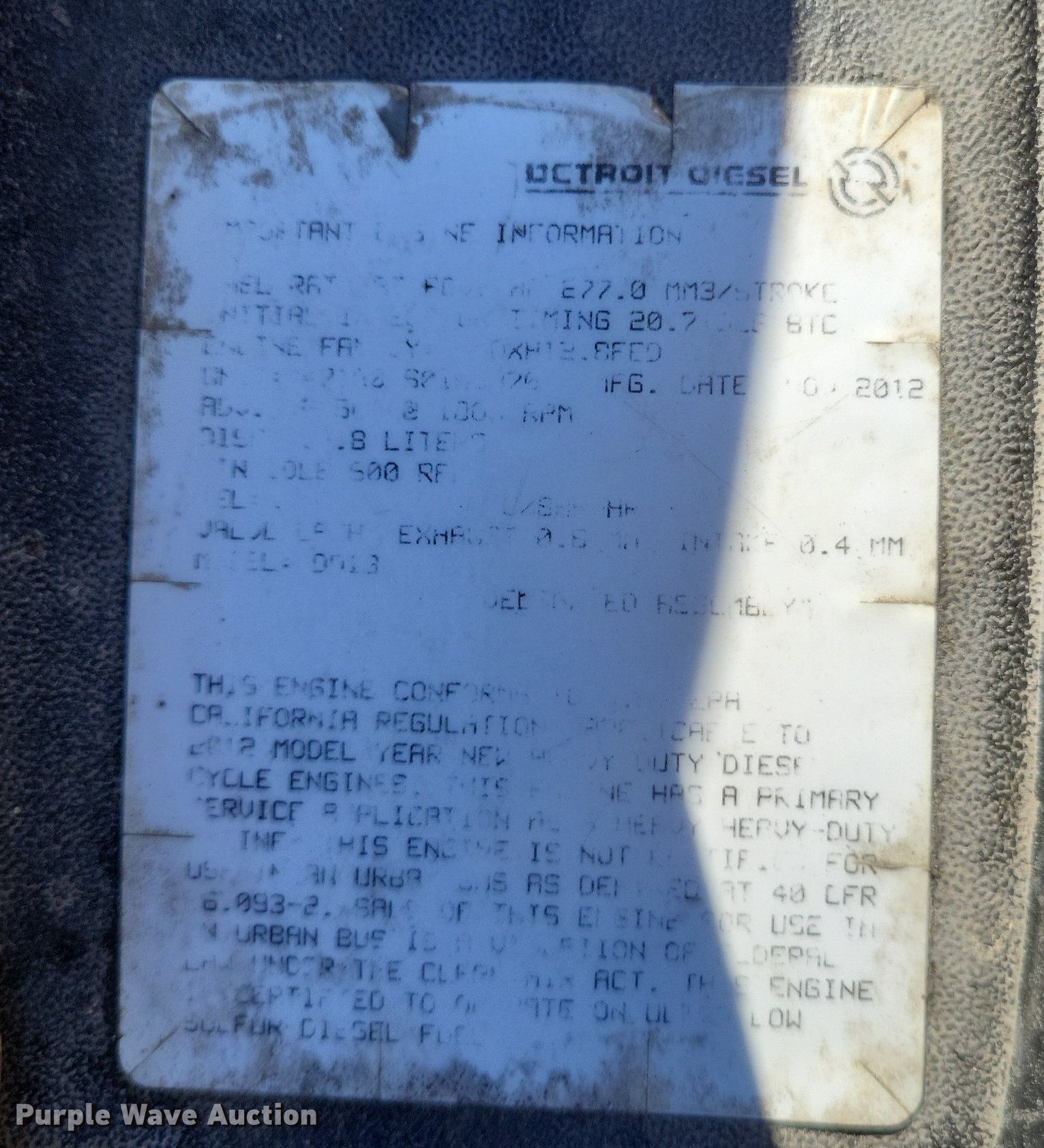 2013 Freightliner Cascadia semi truck. 196,595 on odometer, 844,033 miles on ECM, VIN: 3AKJGEDV3DSBA8504, Unit #: 001. Engine Detroit DD13, Displacement: 12.8L, Cylinders: 6, Fuel type: Diesel, Engine brake. Transmission Eaton Fuller, Manual, Speed: 10. Chassis Axles: Tandem, Differential lock: Inter-axle, Suspension: Air Dump valves, Brakes: Air, GVWR: 52,000 lbs FAWR: 12,000 lbs, IAWR: 20,000 lbs, RAWR: 20,000 lbs. Interior AC, Heat, Heated mirrors, Power windows, Power locks, Cruise control, Air ride cab. Features Deck plate: Aluminum, Fifth wheel type: Fixed, Fuel tank: Single. Tires Front: 275/80R22.5, Rear: 445/50R22.5. Notes Windshield chipped or cracked. Missouri title. Mileage has not been verified. Odometer discrepancy will be marked on the title. Title distribution may be delayed up to 14 days from verification of funds. SEMO Milling, LLC. 261 River Road. Scott City, MO 63780