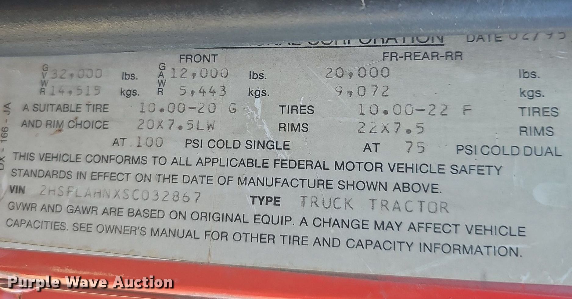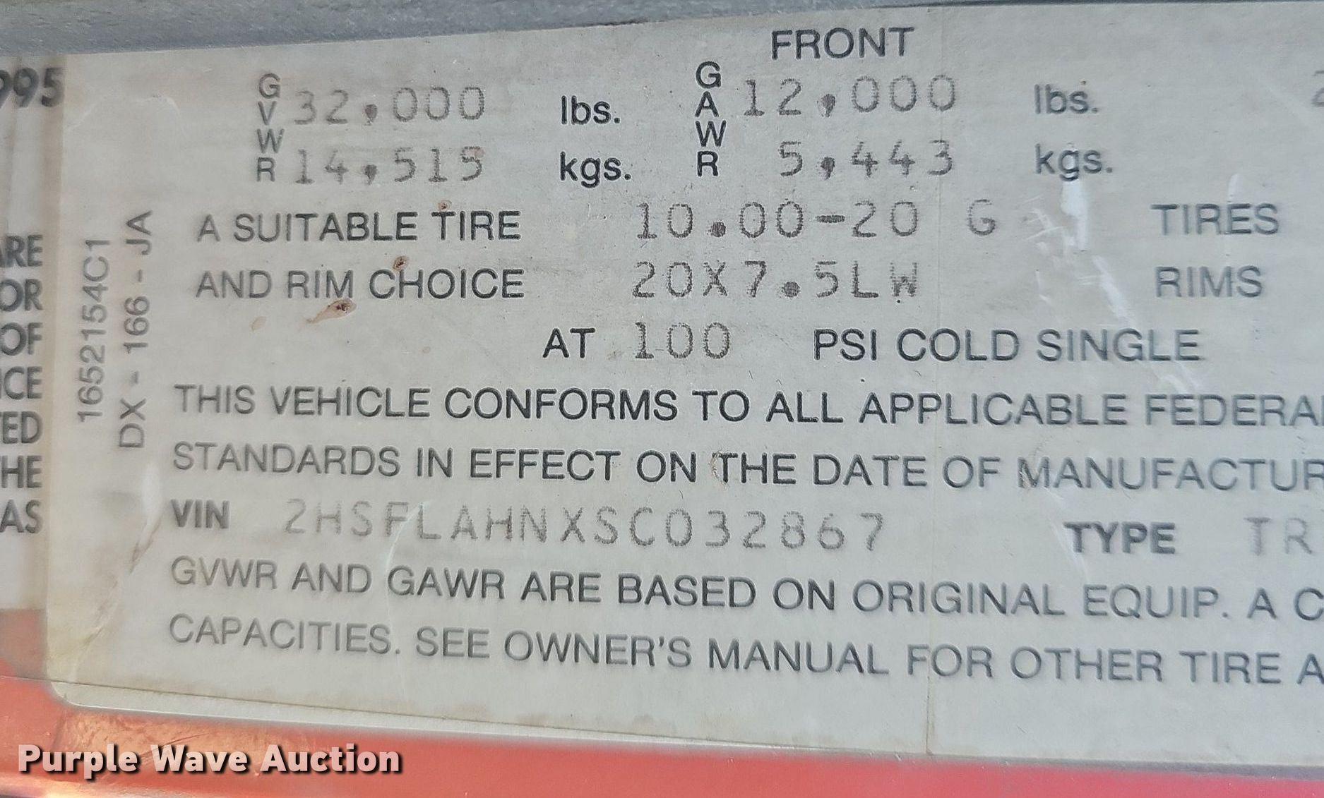 - VIN: 2HSFLAHNXSC032867