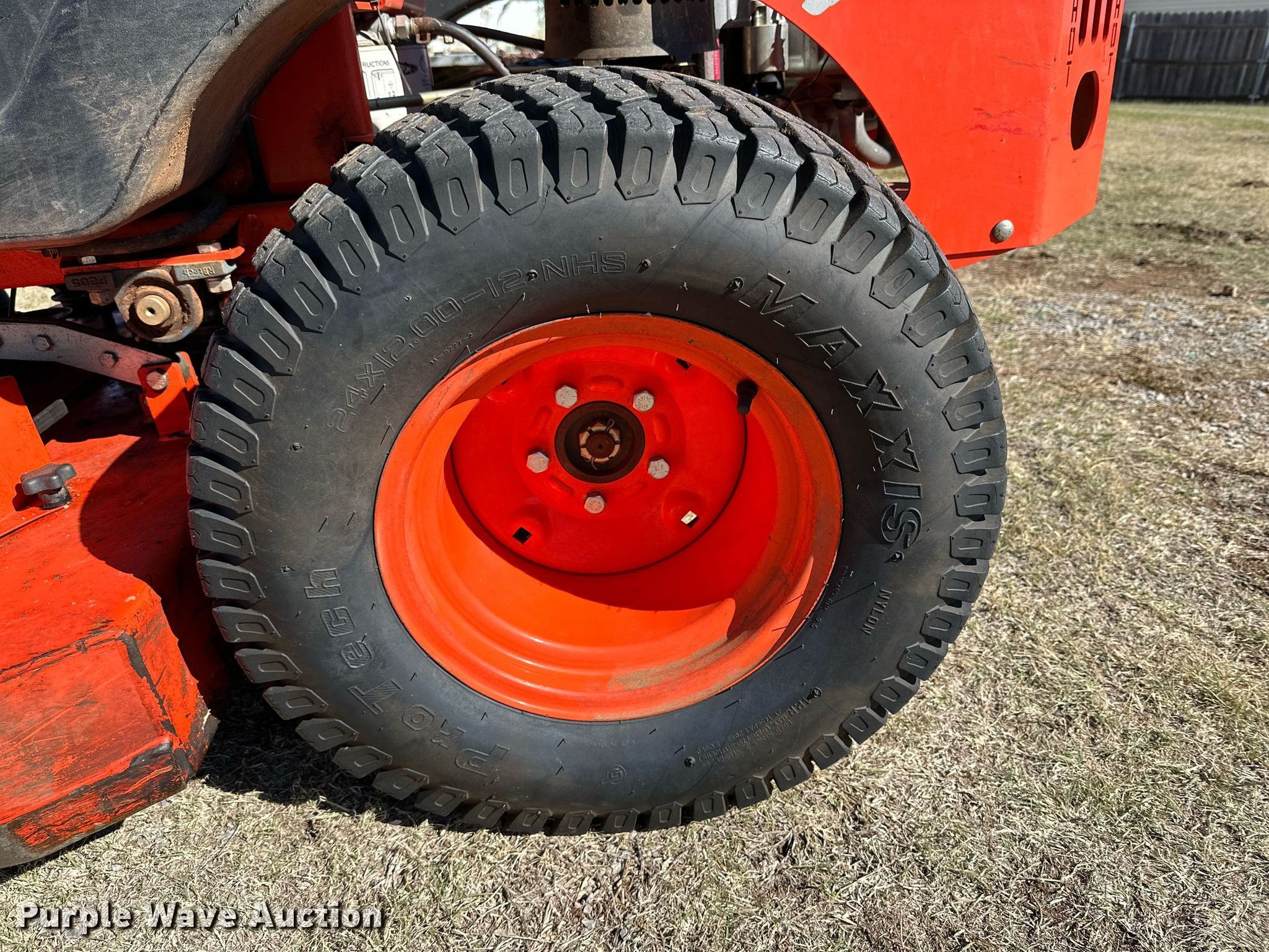 Bad Boy 6000 ZTR lawn mower. Hours: 764 on meter, Cutting width: 60", Serial: BBP6026KA07071316. Engine Kawasaki, Displacement: 675 cc, Cylinders: 2, Fuel type: Gas. Transmission Hydrostatic. Tires Front: 13x6.5, Rear: 24x12.00. Notes Hydraulic reservoir damaged, leaks. City of Arapaho. 667 Main St. Arapaho, OK 73620