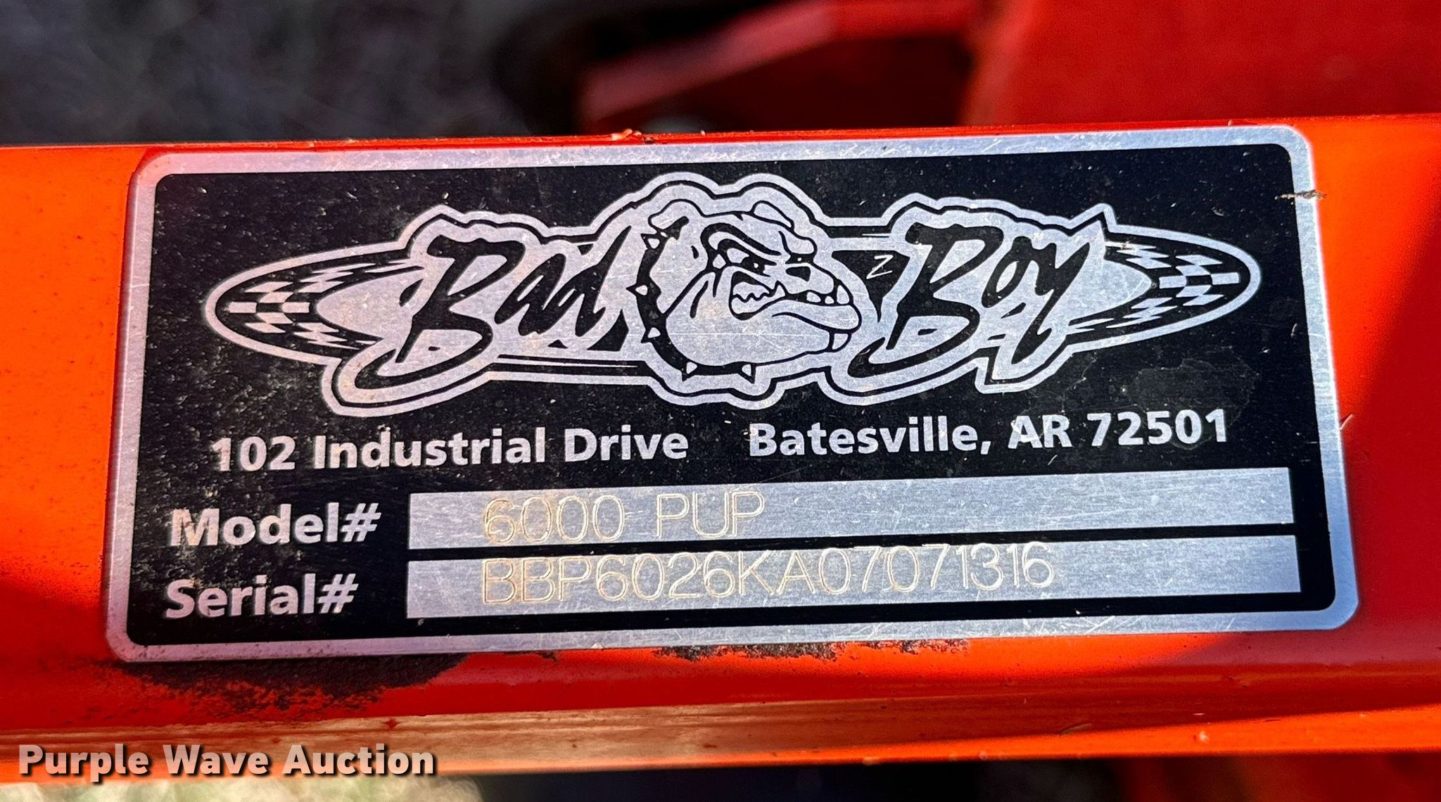 Purple Wave is selling a used Commercial Turf Mower in Oklahoma. This item is a Bad Boy 6000 ZTR lawn mower with the following: Hours: 764 on meter, Cutting width: 60", Serial: BBP6026KA07071316