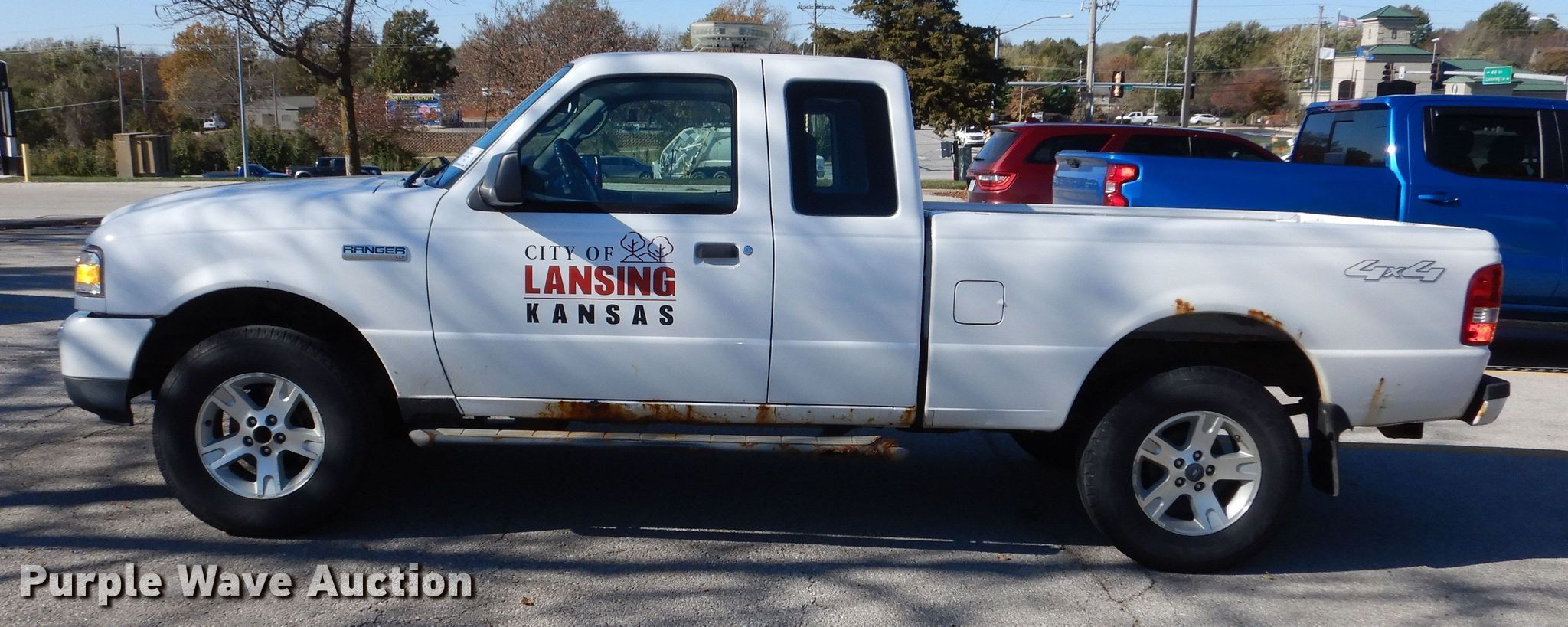 2006 Ford Ranger XLT SuperCab pickup truck. Miles: 66,111 on odometer, VIN: 1FTZR45E86PA95352. Engine Displacement: 4.0L V6 SOHC, Cylinders: 6, Fuel type: Gas. Transmission Automatic, Four wheel drive. Interior AC, heat, Power windows, power locks, Cruise control. Tires Size: 255/70R16. Notes Strobe light included, Decals will be removed prior to auction. Kansas title. City of Lansing. 800 1st Terrace. Lansing, KS 66043