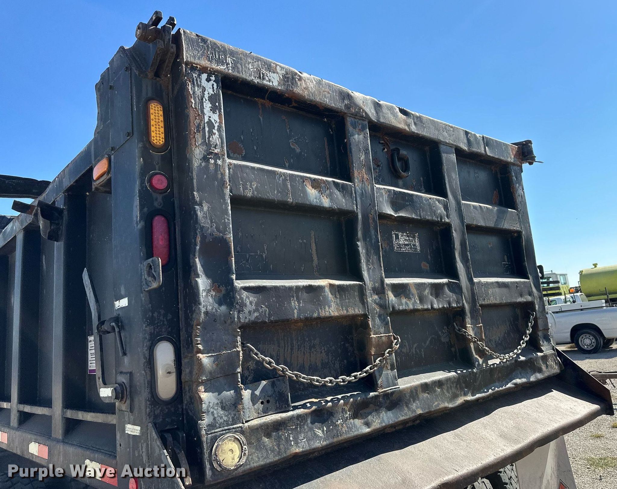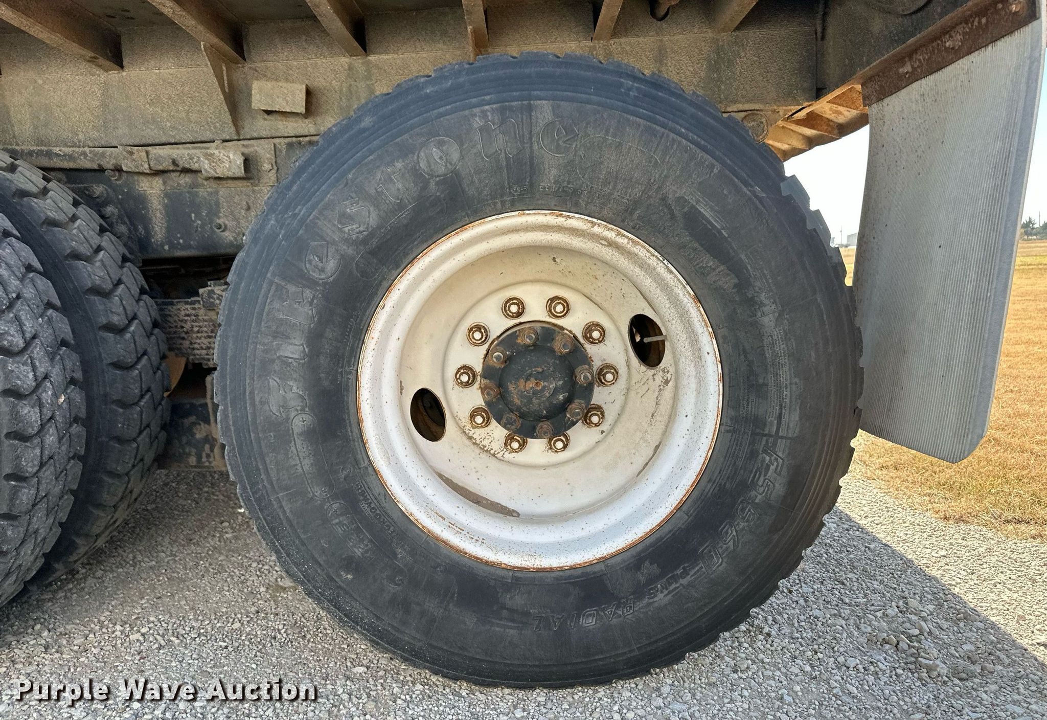 2005 International 7600 dump truck. Miles: 200,992 on odometer, Hours: 12,841 on meter, VIN: 1HTWYAHT05J161282. Engine Cummins ISB, Displacement: 10.8L, Cylinders: 6, Fuel type: Diesel. Transmission Automatic. Chassis Axles: Tandem, Differential lock: Inter-axle, Suspension: Spring over walking beam, Brakes: Air, PTO. Interior AC, Heat, Cruise control. Features Dump bed 13' 6" L x 96" W, Side height: 44", Bed type: Steel, Roll tarp, Ram: Single , End gate: Air operated. Tires Front: 425/65R22.5, Rear: 12R22.5. Notes Dead battery, Unknown operating condition. Kansas title. Ford County. 10974 113 Rd. Dodge City, KS 67801