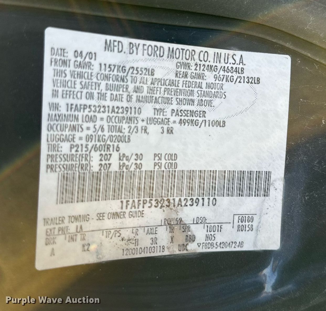 - VIN: 1FAFP53231A239110