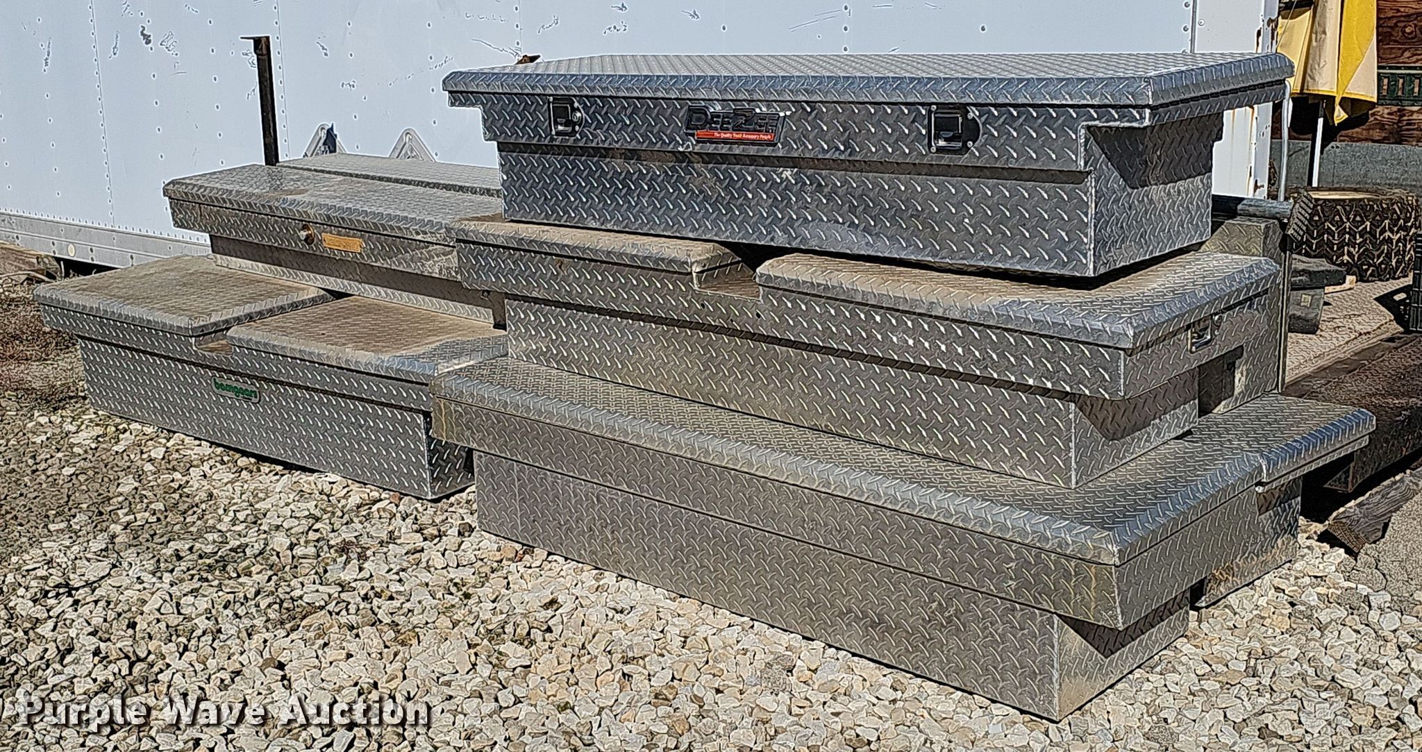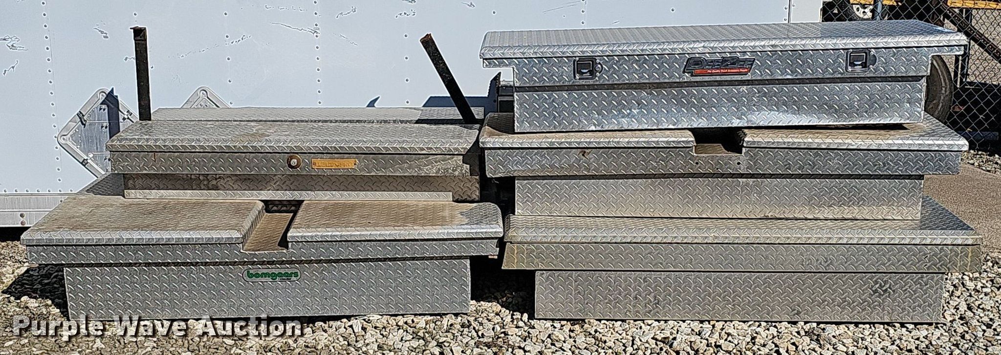Purple Wave is selling a used Truck Part and Attach. in Nebraska. This item is a (9) toolboxes with the following: (6) 70" to 72" L x 21" W x 14" H, (3) 58" to 62" L x 13" W x 12" H