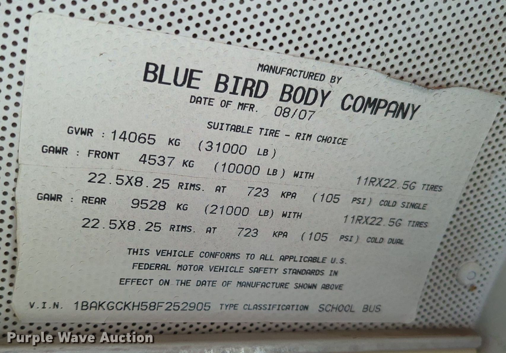 - VIN: 1BAKGCKH58F252905