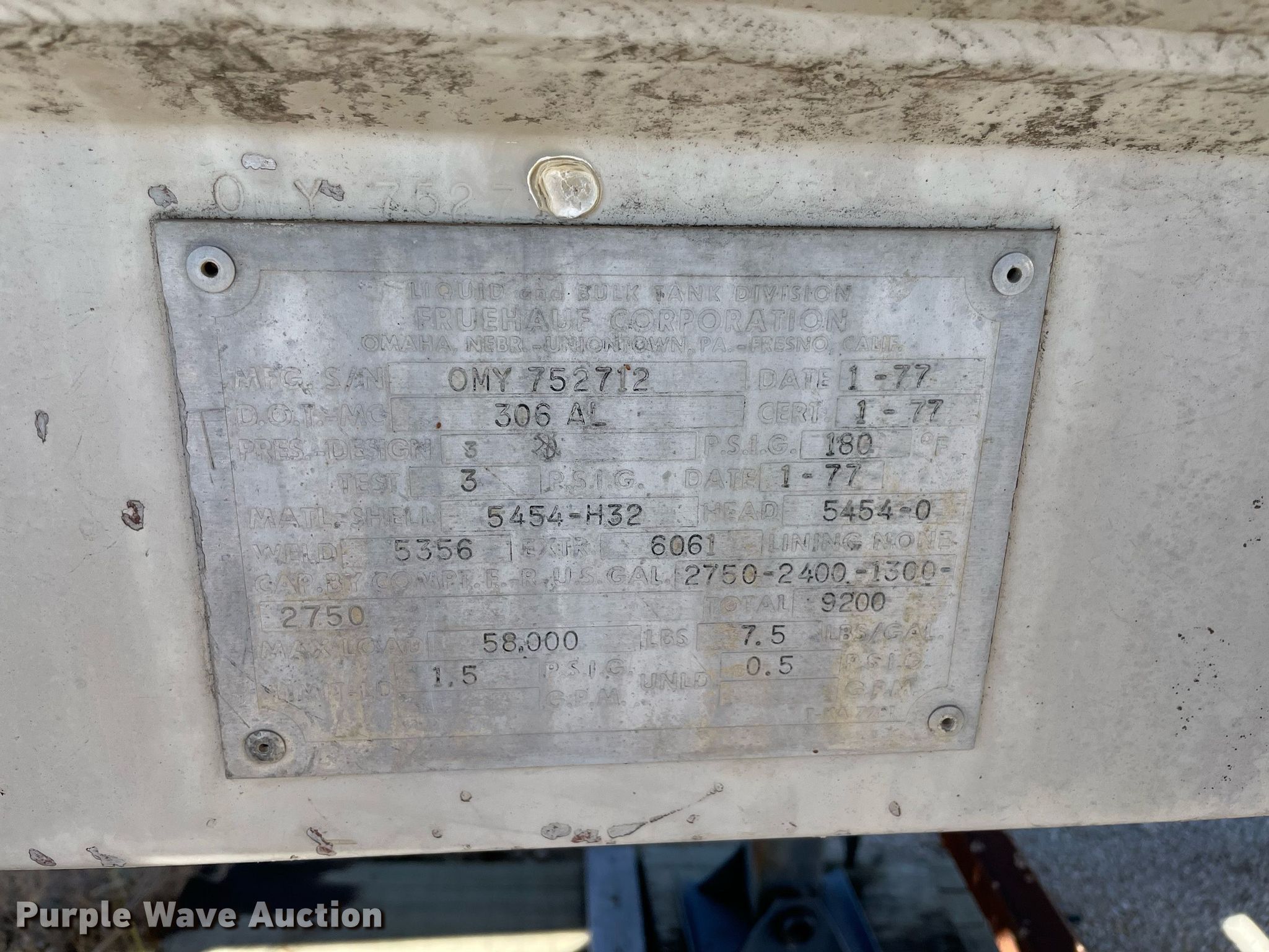 Purple Wave is selling a used Tank Trailer in Texas. This item is a 1977 Fruehauf TAG-F2-ESF tank trailer with the following: VIN: OMY752712