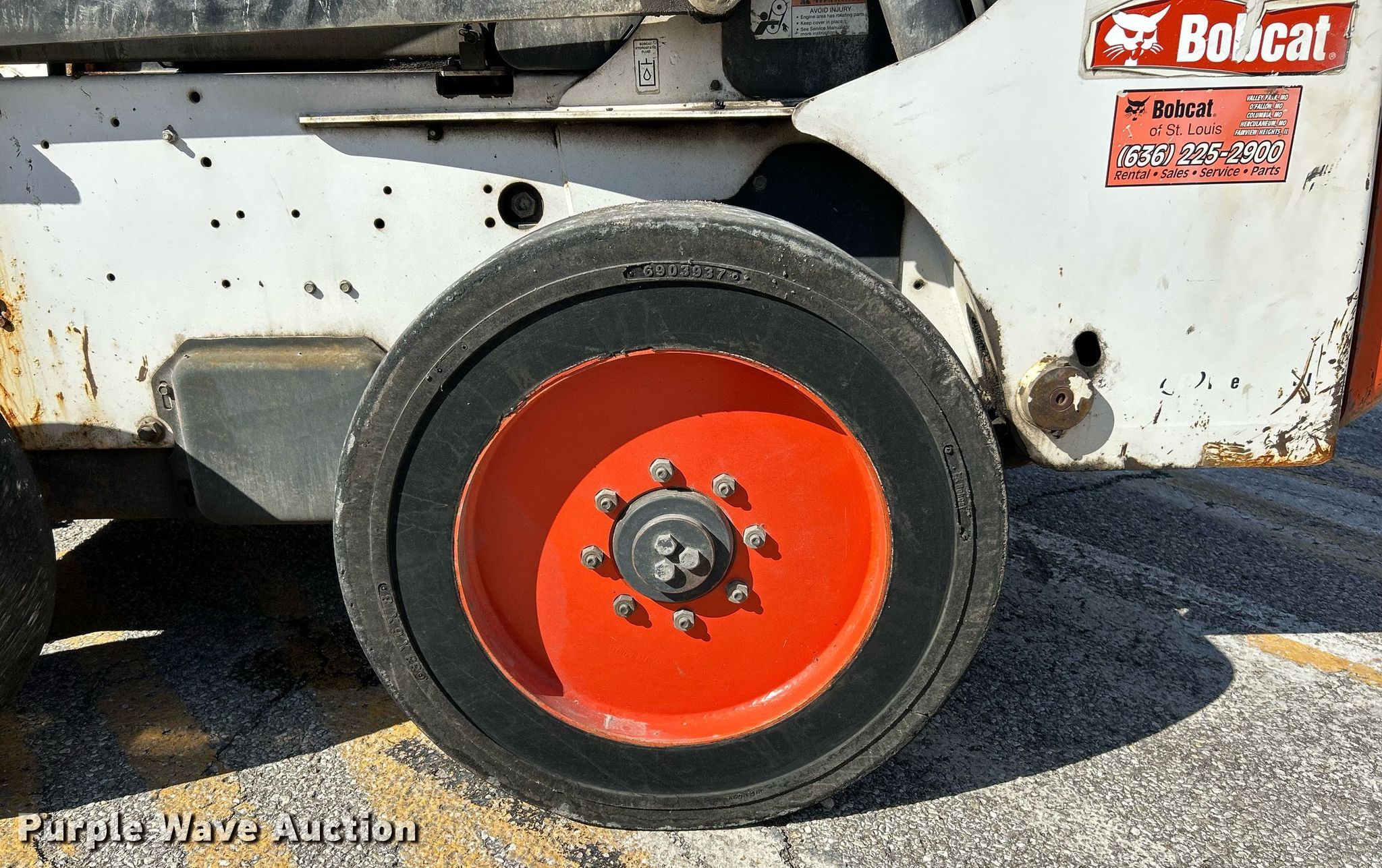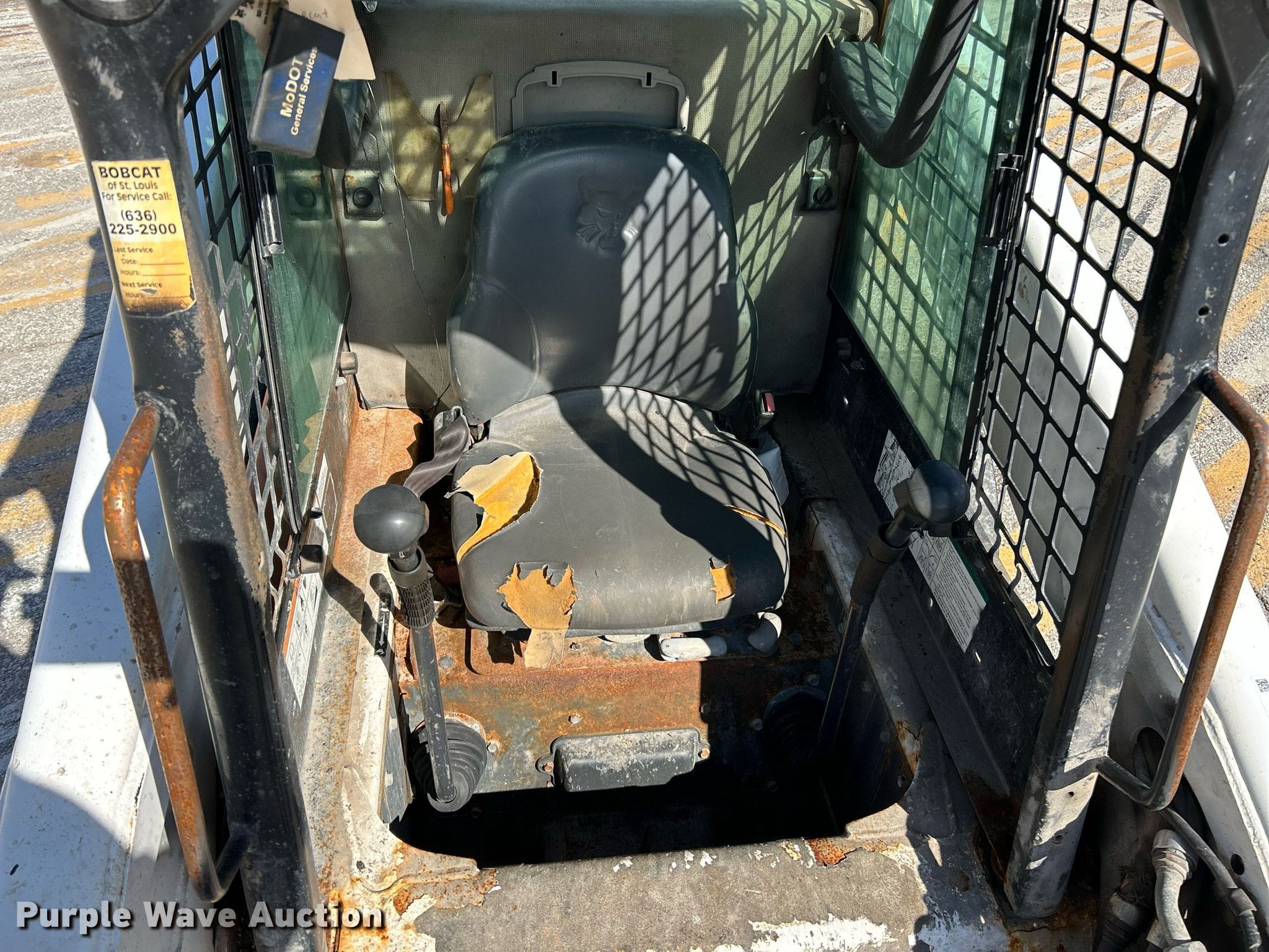 2007 Bobcat S300 skid steer loader. Hours: 3,160 on meter, Serial: 531115650, Unit #: G9305. Engine Kubota , Cylinders: 4, Fuel type: Diesel, HP: 81. Transmission Hydrostatic, Two speed travel. Operators station OROPS, Bucket control: Foot. Features Auxiliary hydraulics High flow, Auxiliary electrical outlet, Quick coupler: Hydraulic, Bucket Width: 74", Cutting edge: Bolt-on. Tires Size: 33x6x8, Solid. Notes Oil leak , Transmission issues, leaks , Hydraulic issue, leaks, Possible turbo issue. Missouri Dept. of Transportation - District 6. Ballwin, MO 63021