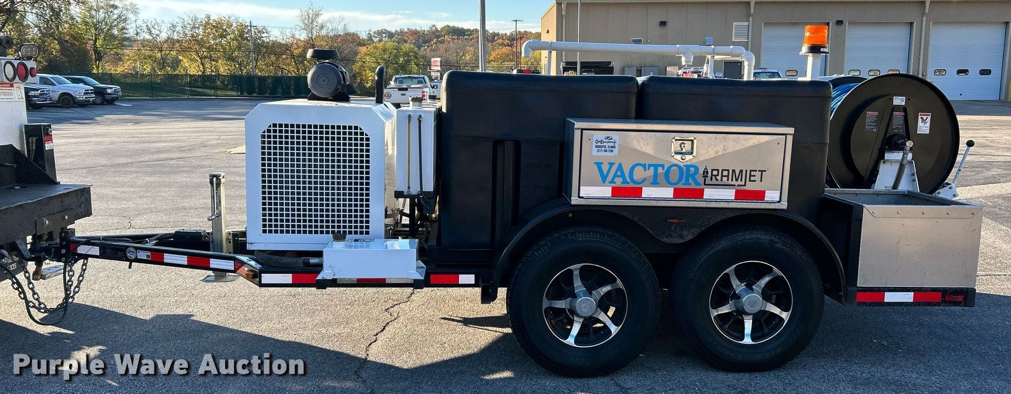 2016 Vactor Ramjet sewer jetter trailer. Hours: 264 on meter, VIN: 1U9FS1627HAO44728. Engine Hatz 4H50TIC 155A, Serial: 1361416001303, Displacement: 1.9521L, Cylinders: 4, Fuel type: Diesel, HP: 74. Features Water tank Capacity: 750 gallons, Water pump GPM: 30, PSI: 3,000, Jetter heads, Hose Diameter: 3/4", Approx. 500' L. Trailer 19' L x 84" W, Suspension: Spring, Brakes: Electric, Axles: Tandem, Tire size: 235/85R16, GVWR: 12,200 lbs. Notes Maintenance records available upon request to [email protected]. Missouri title. Title distribution may be delayed up to 14 days from verification of funds. Northeast Public Sewer District. Fenton, MO 63026