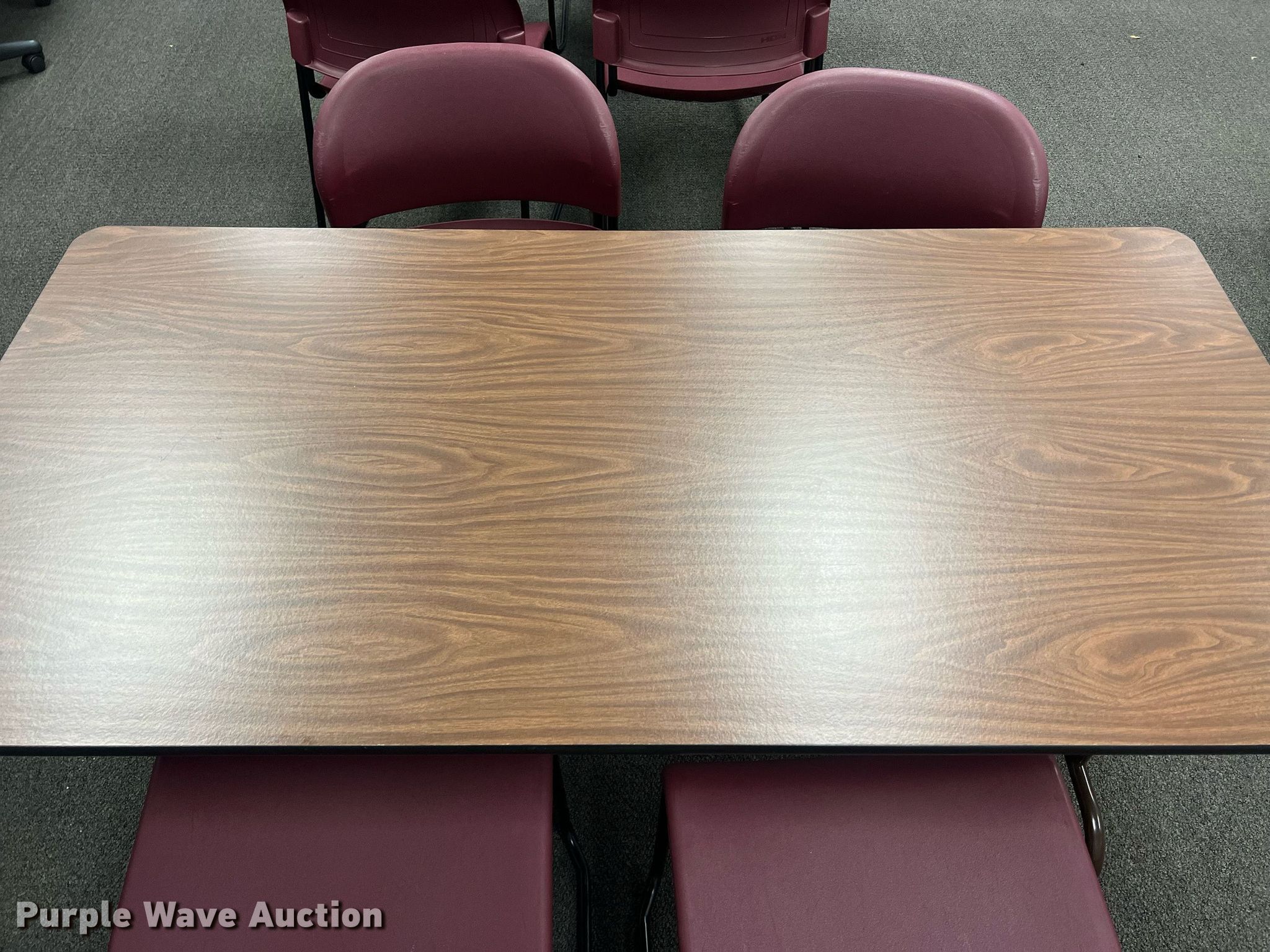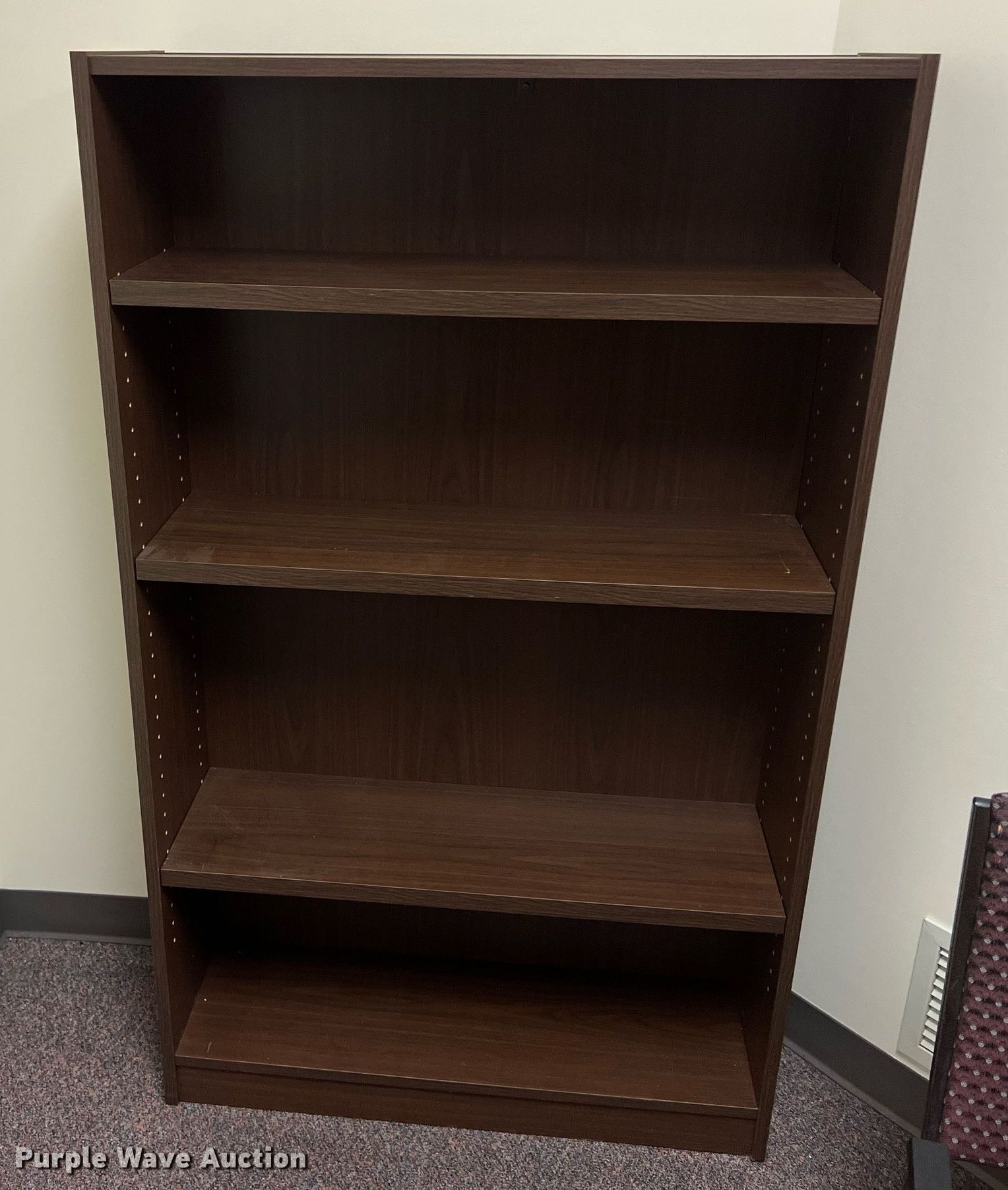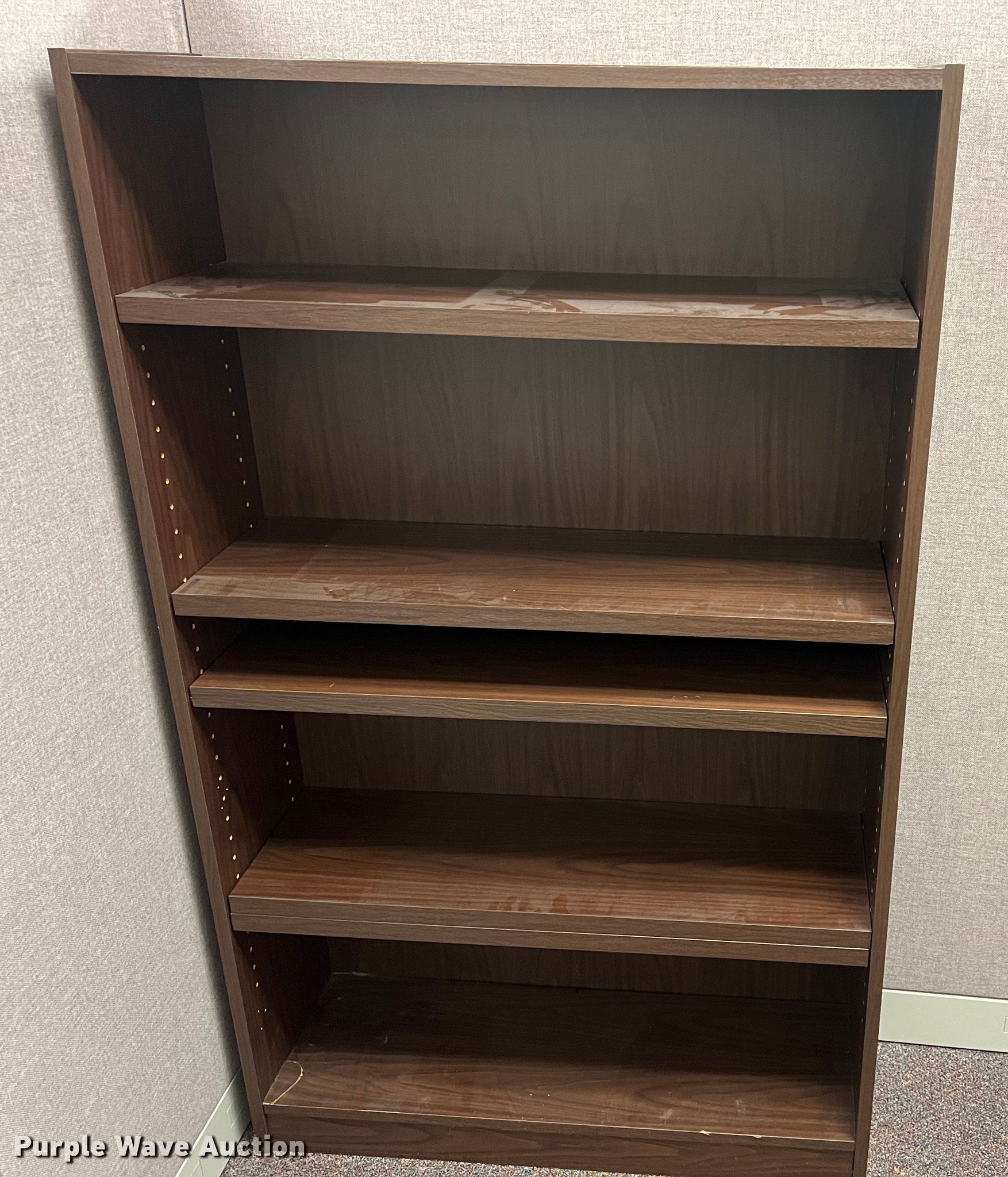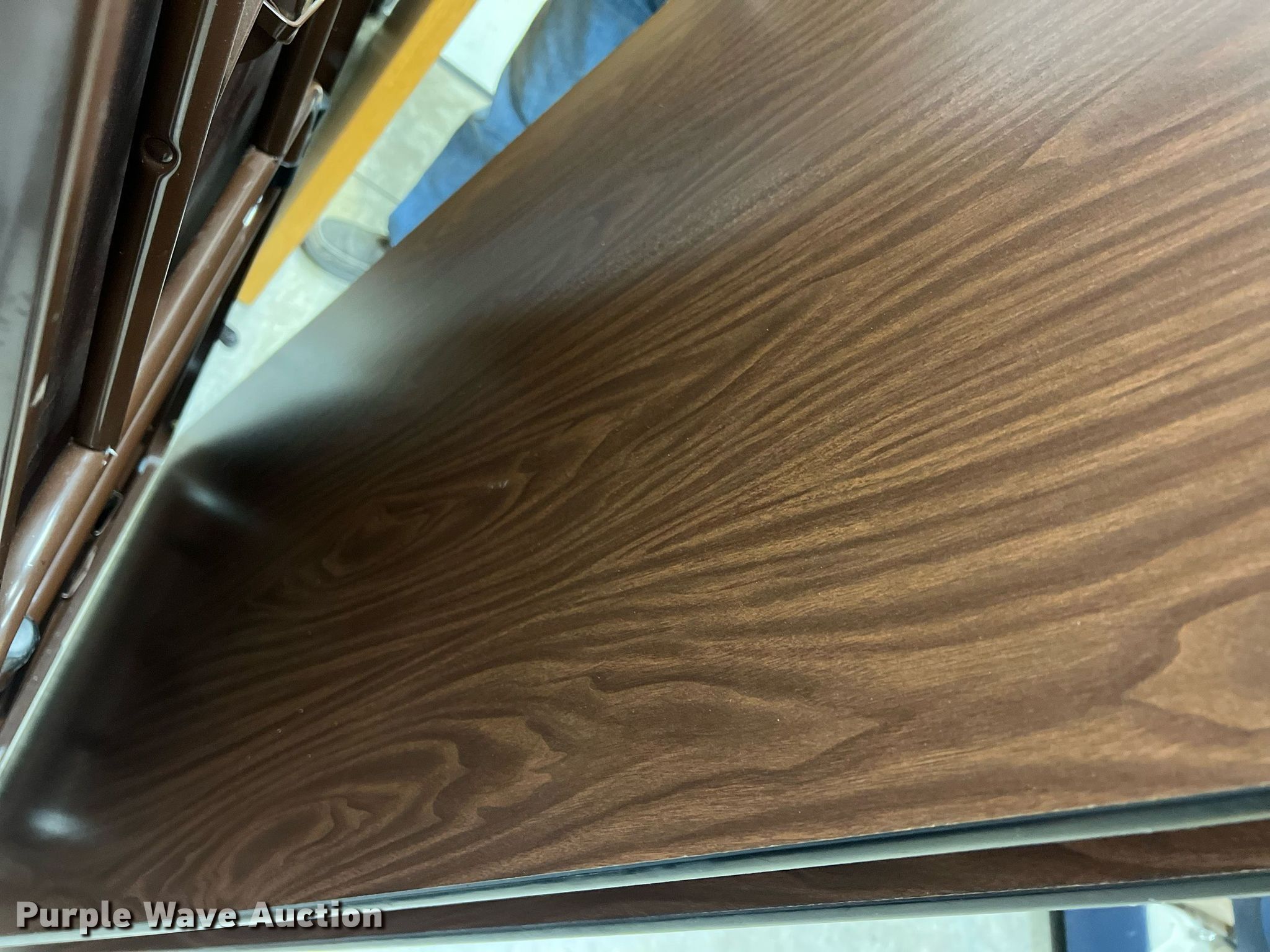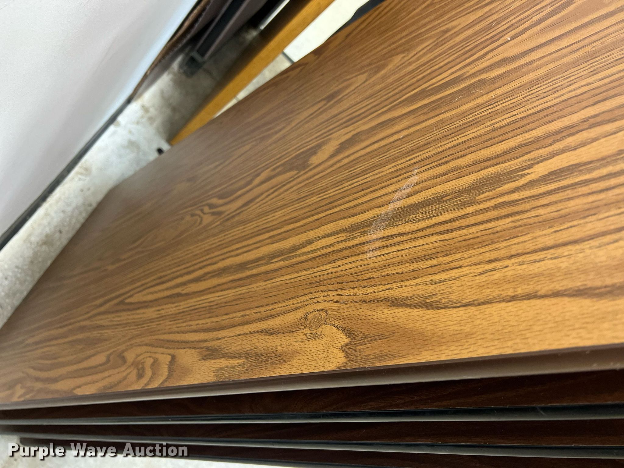 Purple Wave is selling a used Furniture in Kansas. This item is a Furniture with the following: Approx. 7 shelves, Podium, 30" x 96" table, Approx. (10) 30" x 60" tables