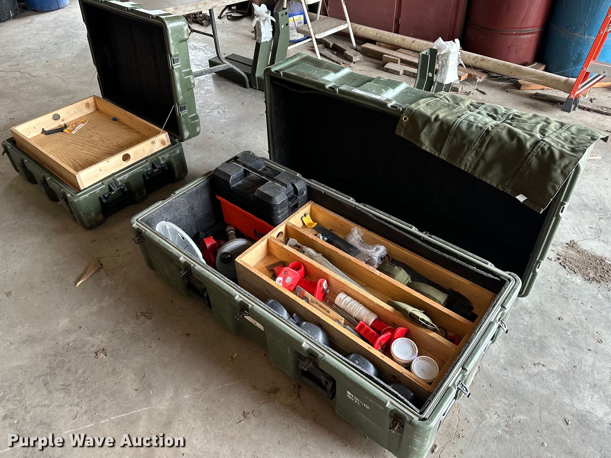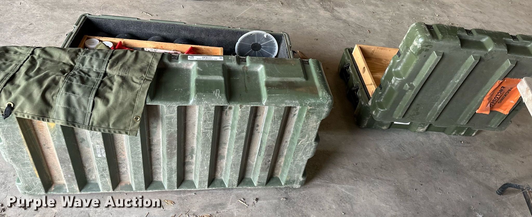 Purple Wave is selling a used Shelving and Storage in Missouri. This item is a (2) storage boxes with the following: 53" L x 27" W x 23" H, 33.5" L x 27" W x 14" H, Contents included