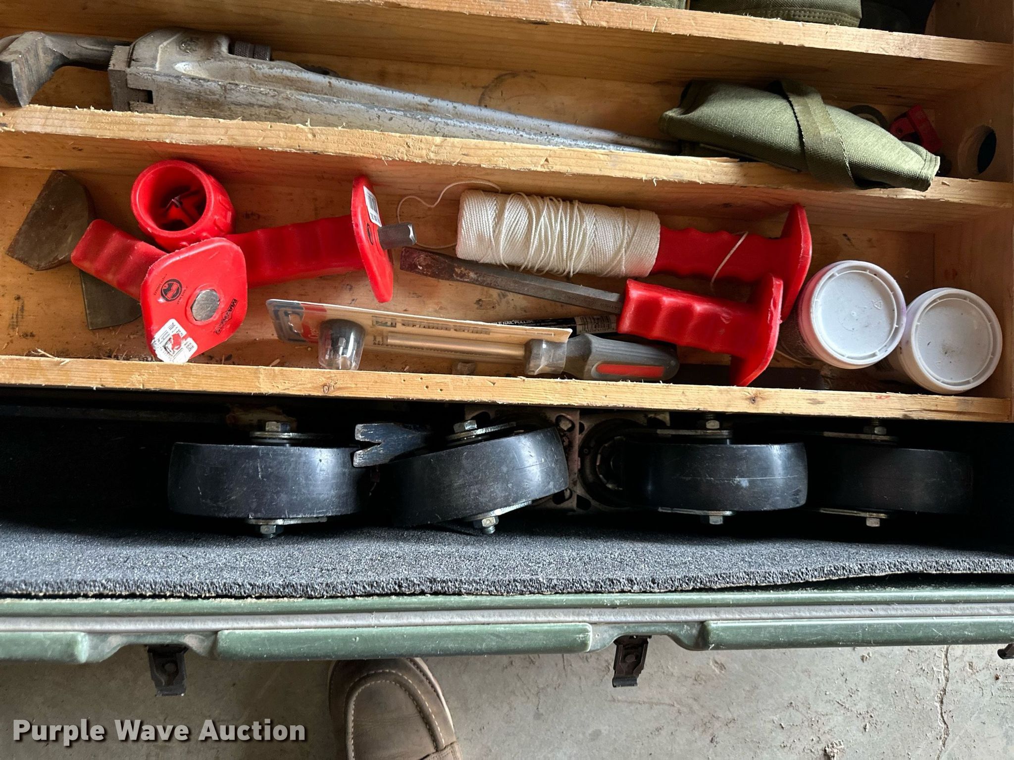 (2) storage boxes. 53" L x 27" W x 23" H, 33.5" L x 27" W x 14" H, Contents included. Public Water Supply District #8 of Clay County. 15009 Jesse James Farm Rd. Kearney, MO 64060