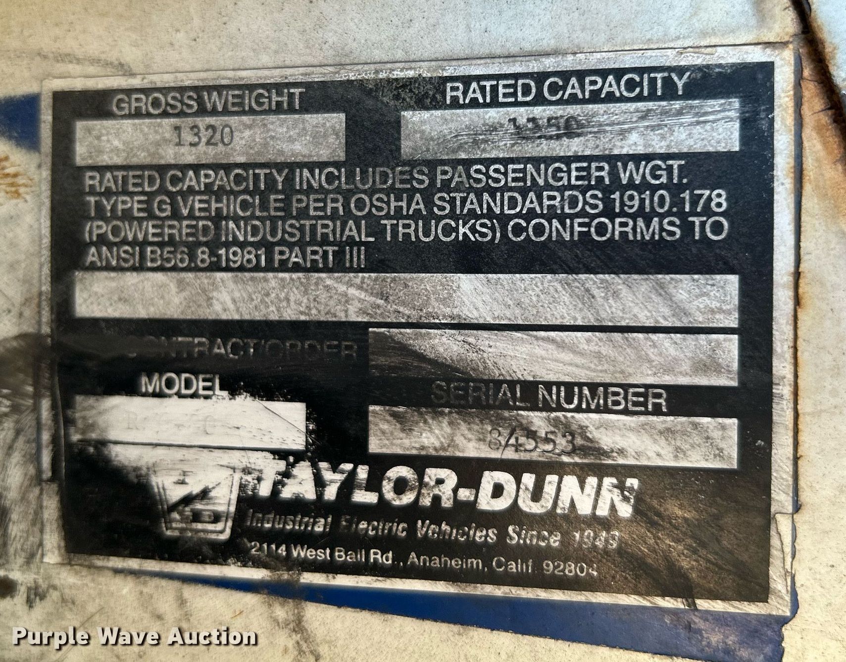 Purple Wave is selling a used Utility Vehicle in Oklahoma. This item is a Taylor Dunn utility vehicle with the following: Hours: 9,089 on meter, Serial: 84553