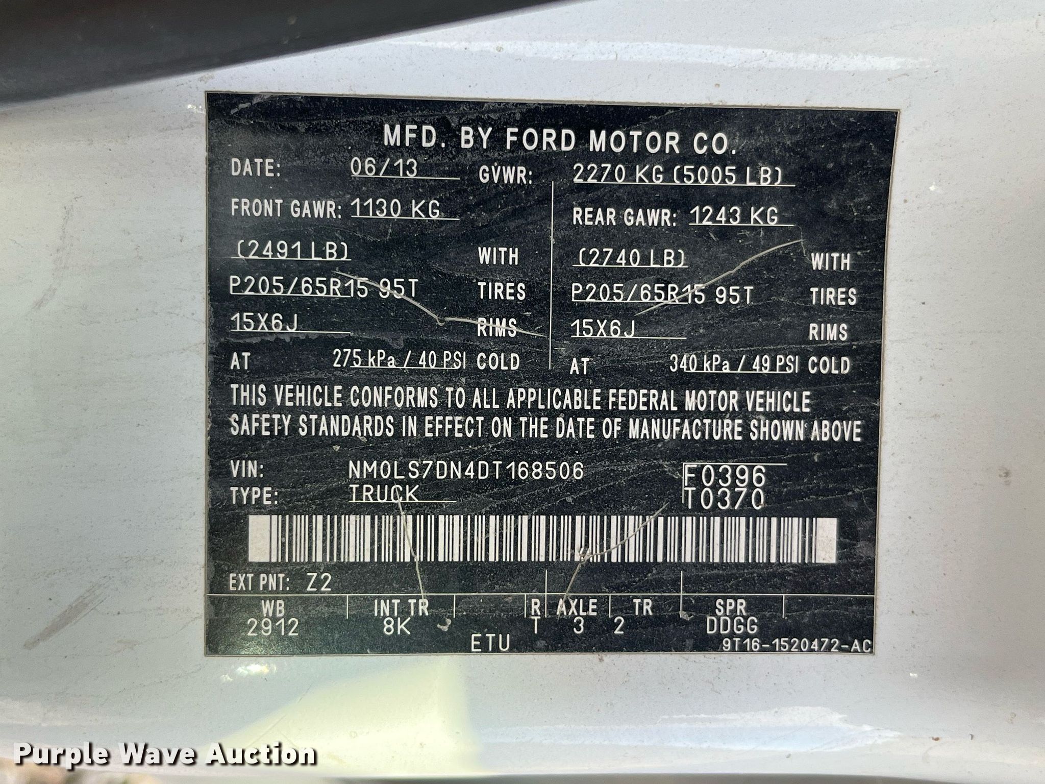2013 Ford Transit Connect XLT van. Miles: 165,690 on odometer, VIN: NM0LS7DN4DT168506. Engine Displacement: 2.0L L4 DOHC, Cylinders: 4, Fuel type: Gas. Transmission Automatic. Interior AC, Heat, Heated mirrors, Power windows, Cruise control. Tires Size: 205/65R15. Notes Windshield chipped or cracked. Iowa title. Mileage has not been verified. Odometer discrepancy will be marked on the title. Title distribution may be delayed up to 14 days from verification of funds. 109 North Madison Street. Bloomfield, IA 52537