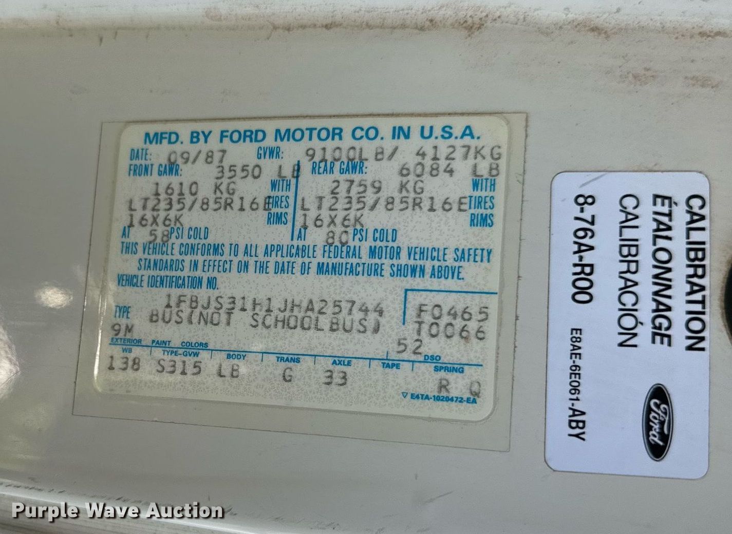 Purple Wave is selling a used 1/2 Ton Pickup or Van in Texas. This item is a 1988 Ford Econoline van with the following: Miles: 3,230 on odometer, VIN: 1FBJS31H1JHA25744