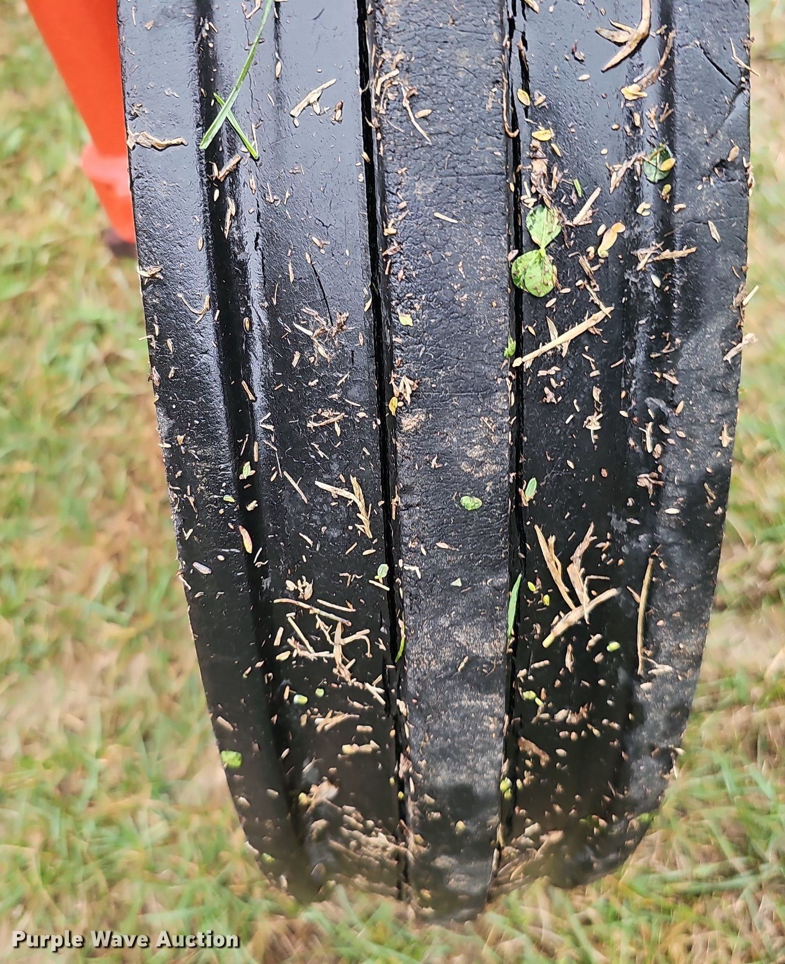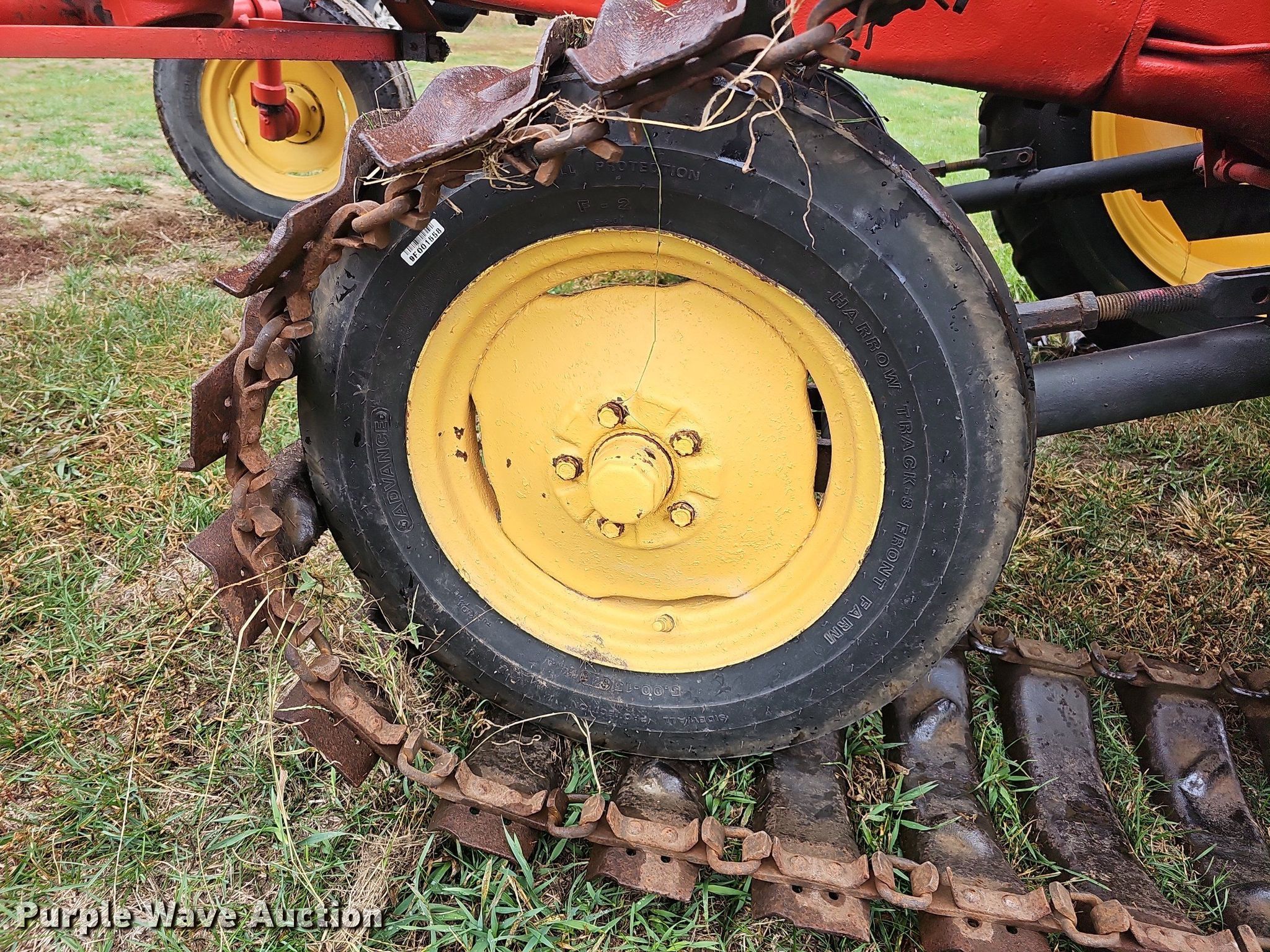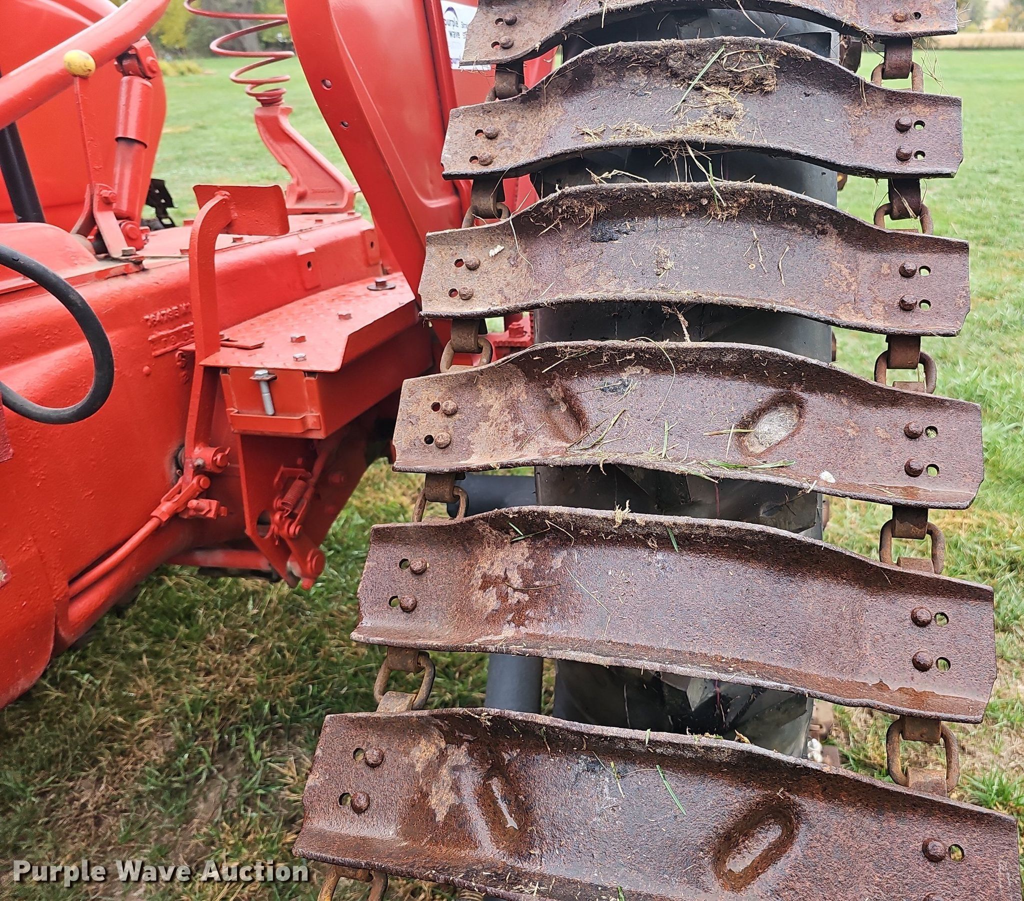 Massey-Harris 33 tracked tractor. Hours: Unknown, Serial: 33G1RF 5831. Engine Cylinders: 4, Fuel type: Gas. Transmission Manual, 4F - 1R. Features PTO: 540. Tires Front: 6.50-16, Rear: 11.2-38. Tracks Width: 18" , Steel , Mid mount tire Size: 5.00-15. B+S Builders. 815 South Muckey Street. Mapleton, IA 51034