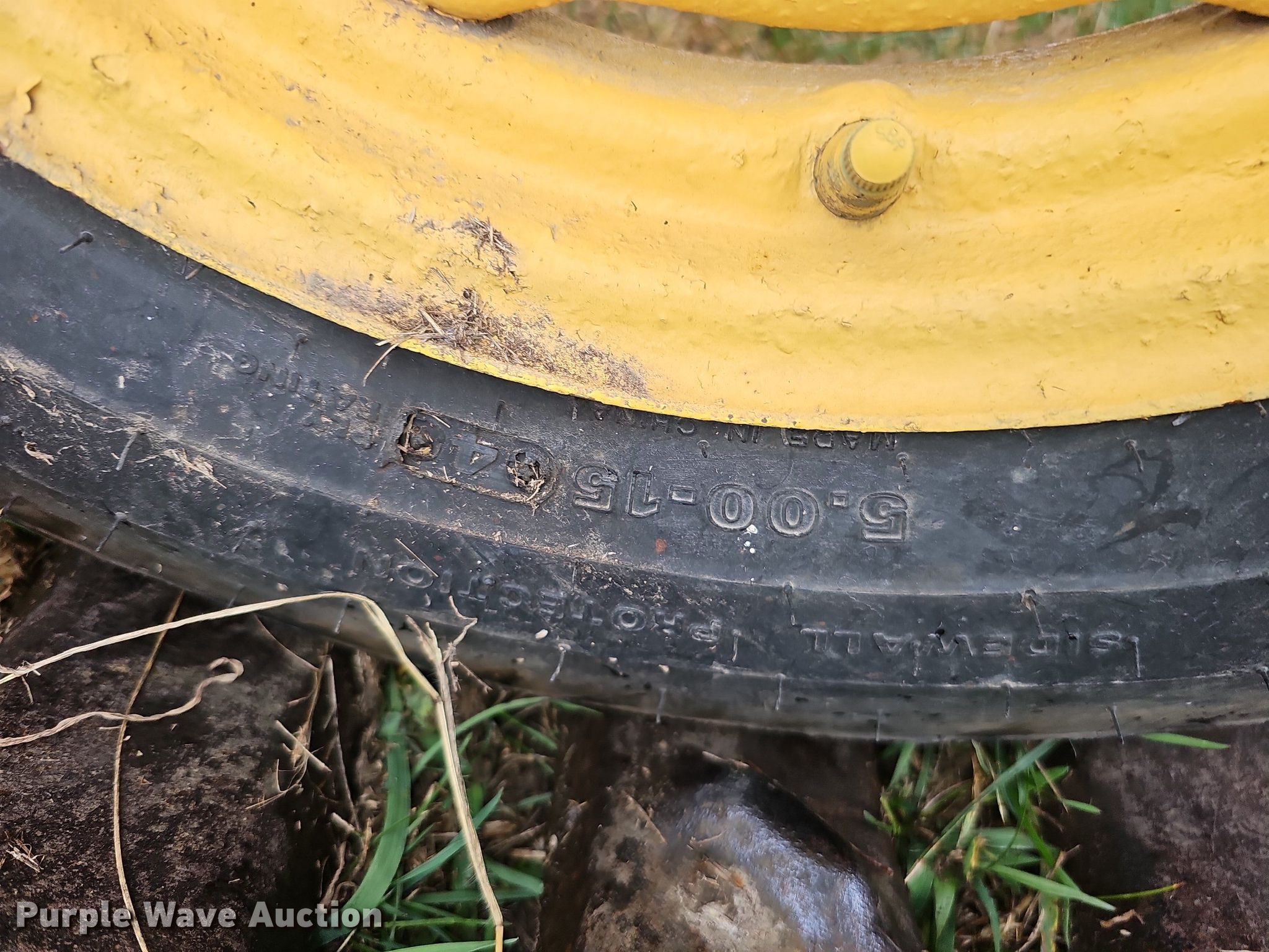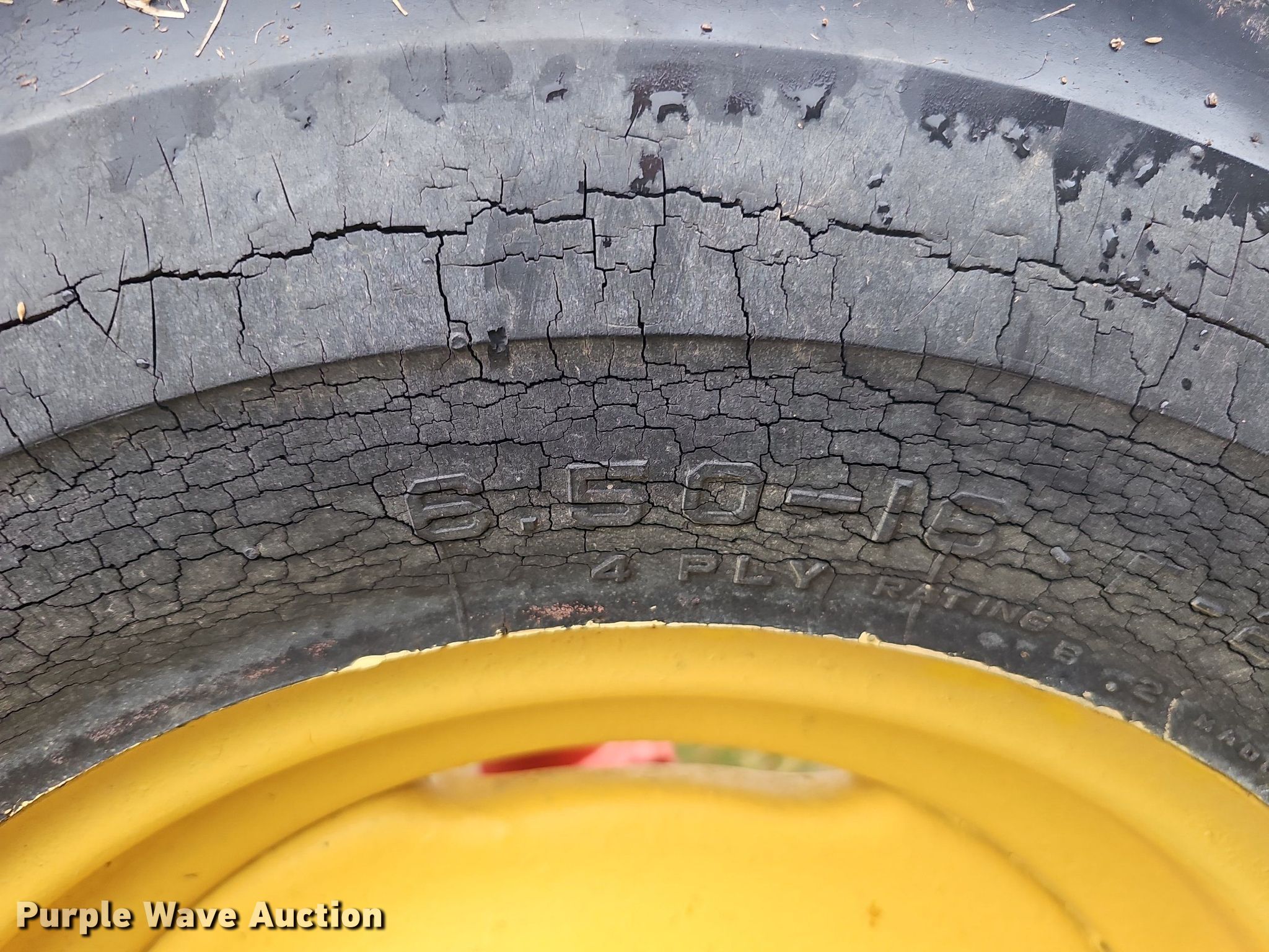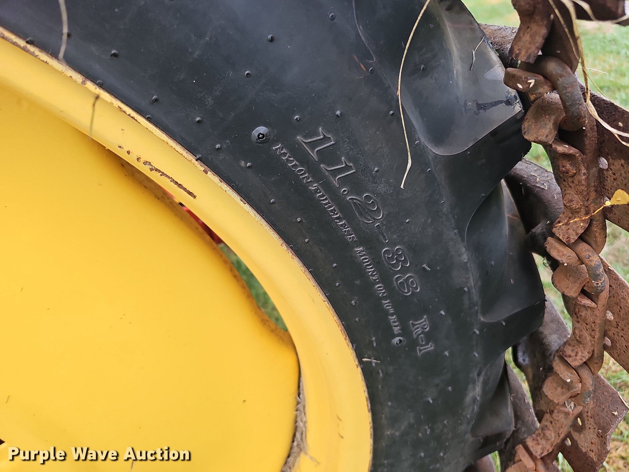 Massey-Harris 33 tracked tractor. Hours: Unknown, Serial: 33G1RF 5831. Engine Cylinders: 4, Fuel type: Gas. Transmission Manual, 4F - 1R. Features PTO: 540. Tires Front: 6.50-16, Rear: 11.2-38. Tracks Width: 18" , Steel , Mid mount tire Size: 5.00-15. B+S Builders. 815 South Muckey Street. Mapleton, IA 51034