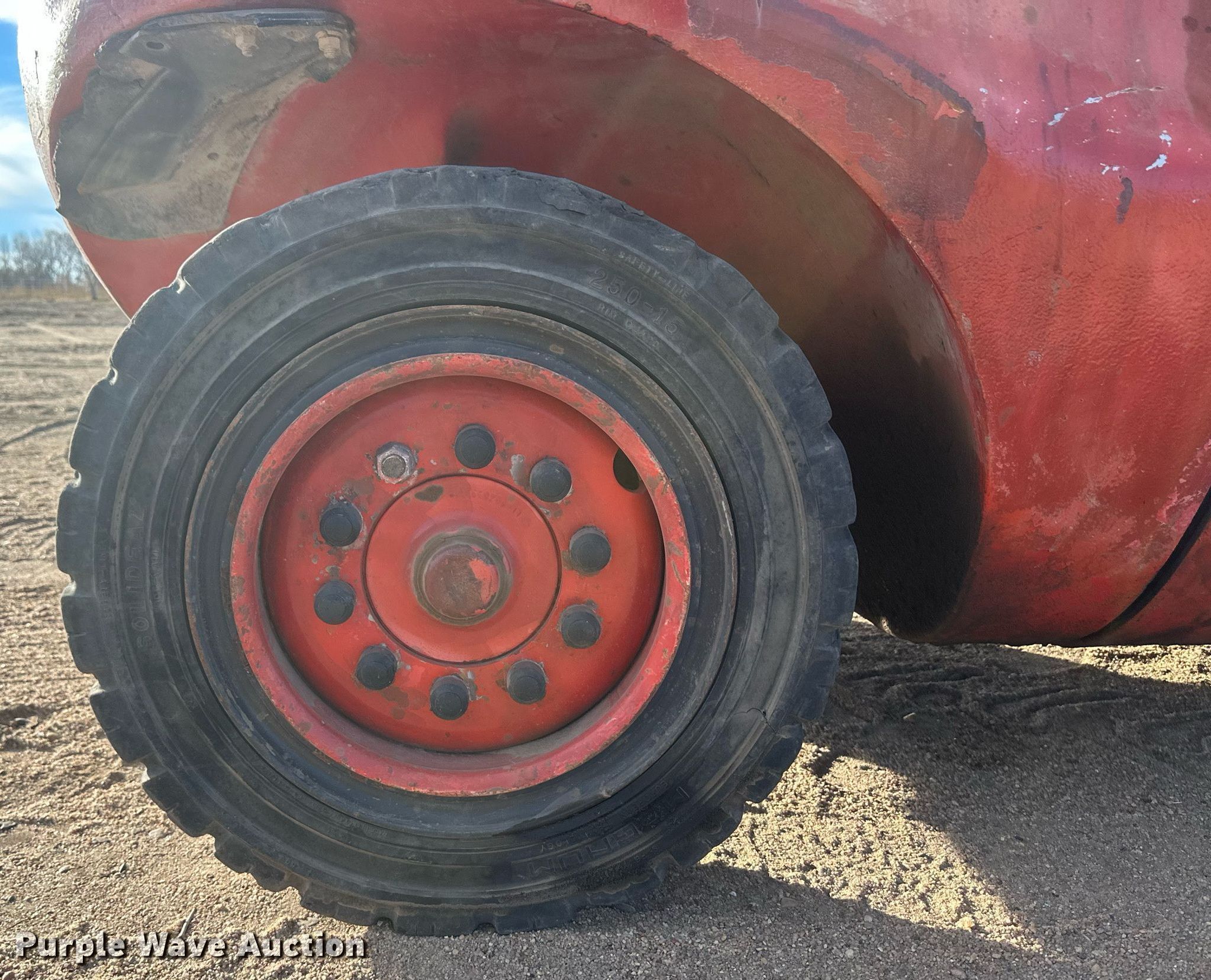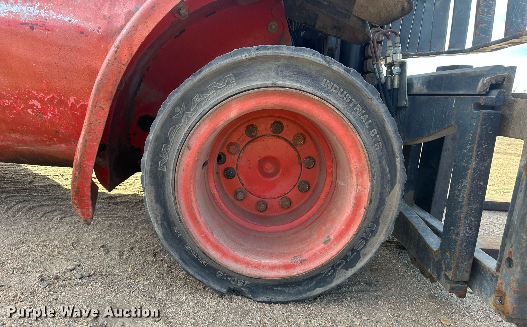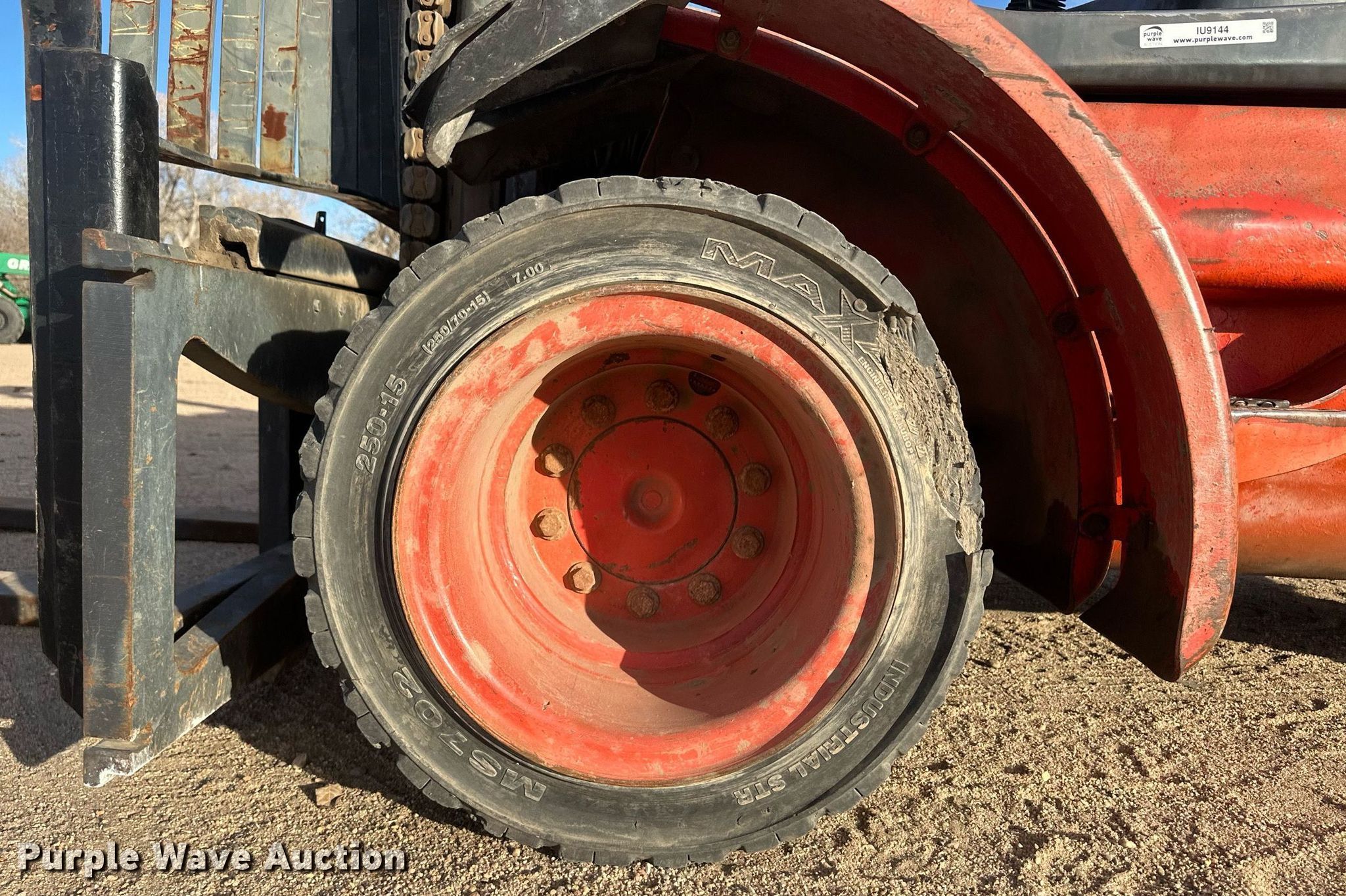 Linde H45 forklift. Hours: 5,678 on meter. Engine Perkins, Cylinders: 4, Fuel type: Diesel. Transmission Hydrostatic. Operators station Canopy. Features Maximum lift capacity: 9,000 lbs, Maximum lift height: 157", Mast stages: 3, Side shift, Mast tilt, Fork length: 69". Tires Front: 250/70-15, Rear: 250-15, Solid. Kinsley, KS 67547