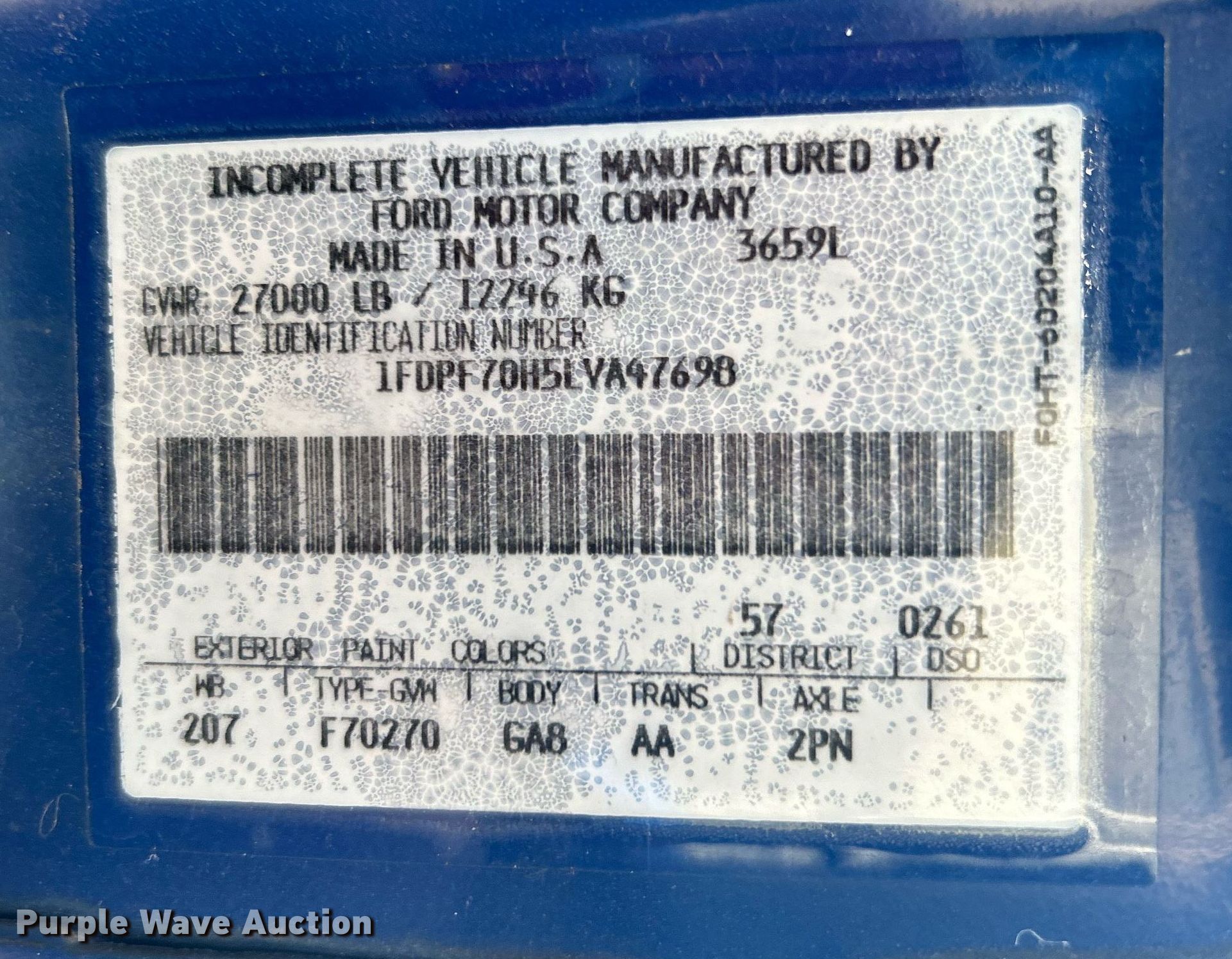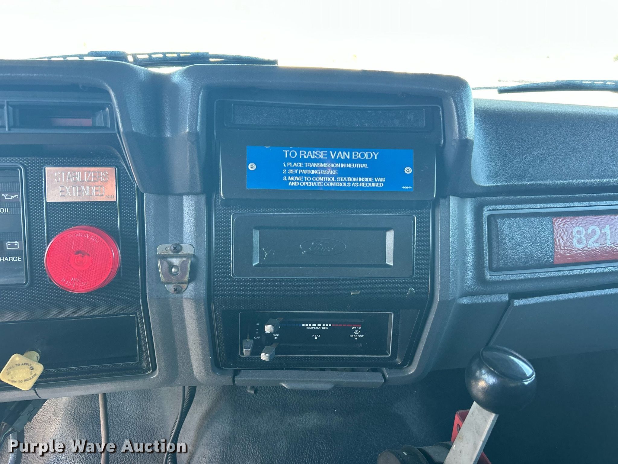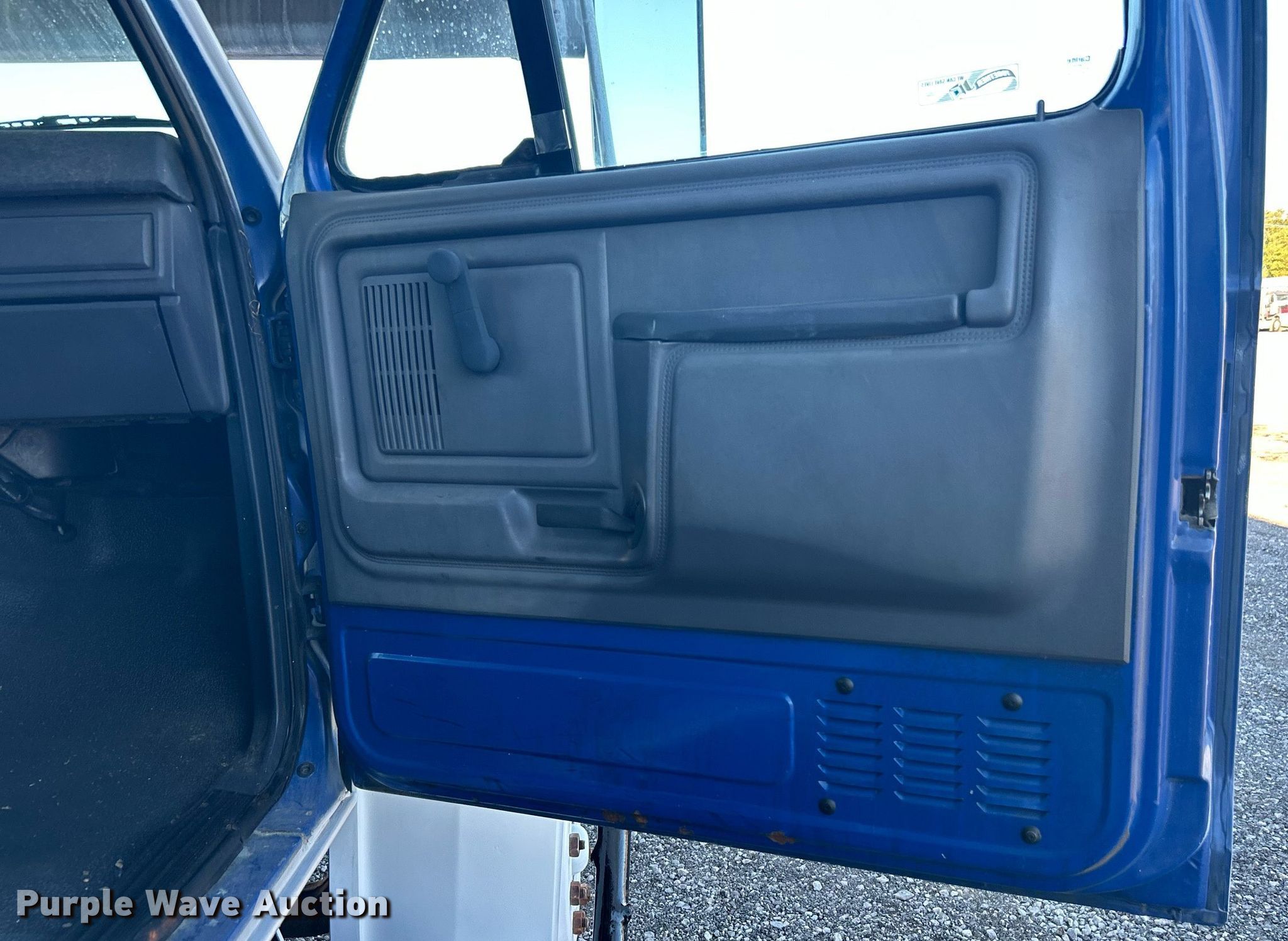 1990 Ford F700 box truck. Miles: 16,670 on odometer, Hours: 8,252 on meter, VIN: 1FDPF70H5LVA47698. Engine Displacement: 6.1L, Cylinders: 8, Fuel type: Gas. Transmission Automatic. Chassis Axles: Single, Suspension: Spring, Brakes: Air, GVWR: 27,000 lbs, Wheelbase: 207". Interior Heat. Features Box bed 20' L x 94" W x 96" H. Tires Size: 275.70R22.5. Oklahoma classic title. 15107 North 137th East Avenue. Collinsville, OK 74021