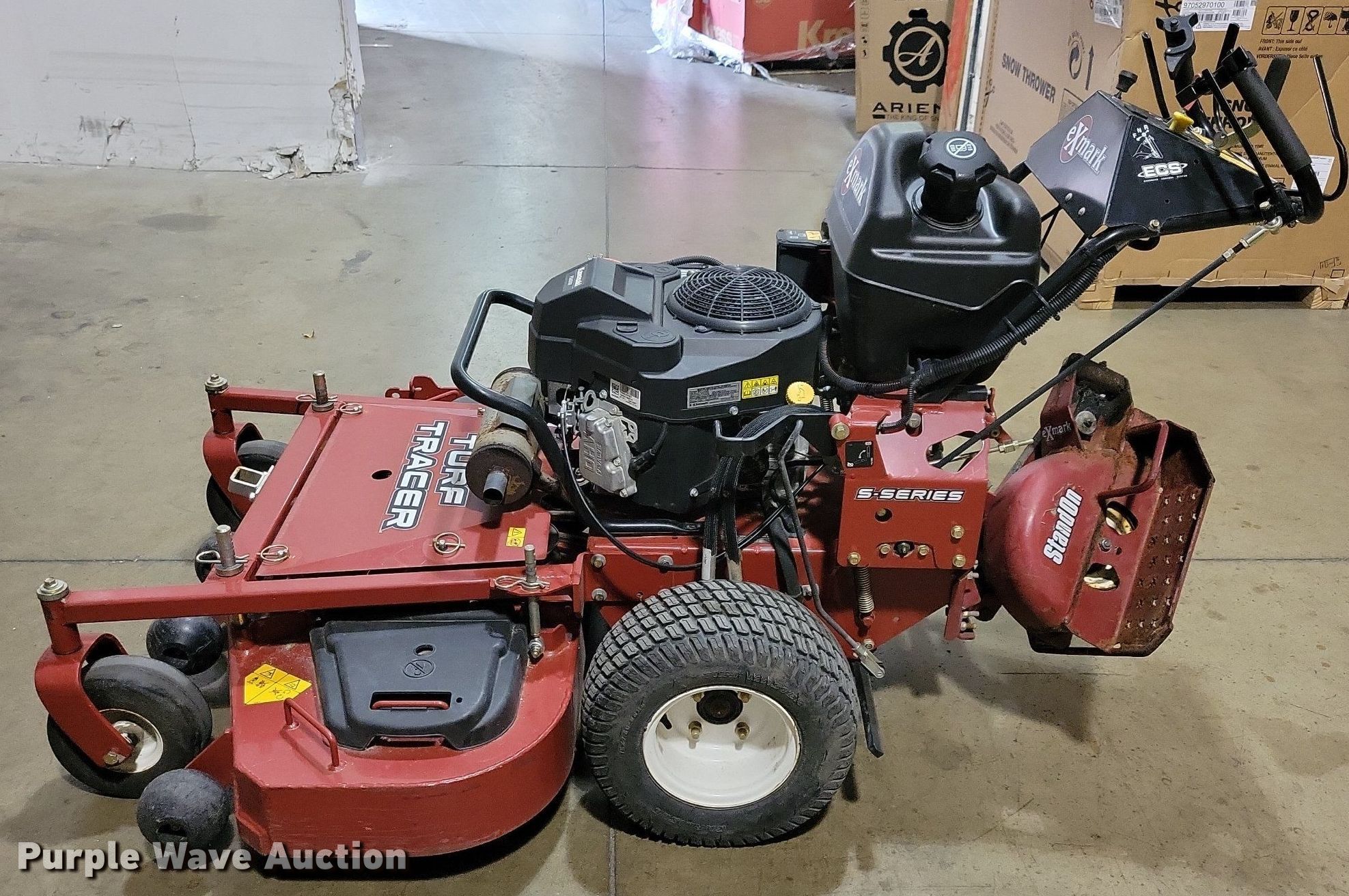 Purple Wave is selling a used Commercial Turf Mower in Iowa. This item is a 2018 Exmark Turf Tracer ZTR lawn mower with the following: Hours: 33 on meter, Cutting width: 48", Serial: 403334536