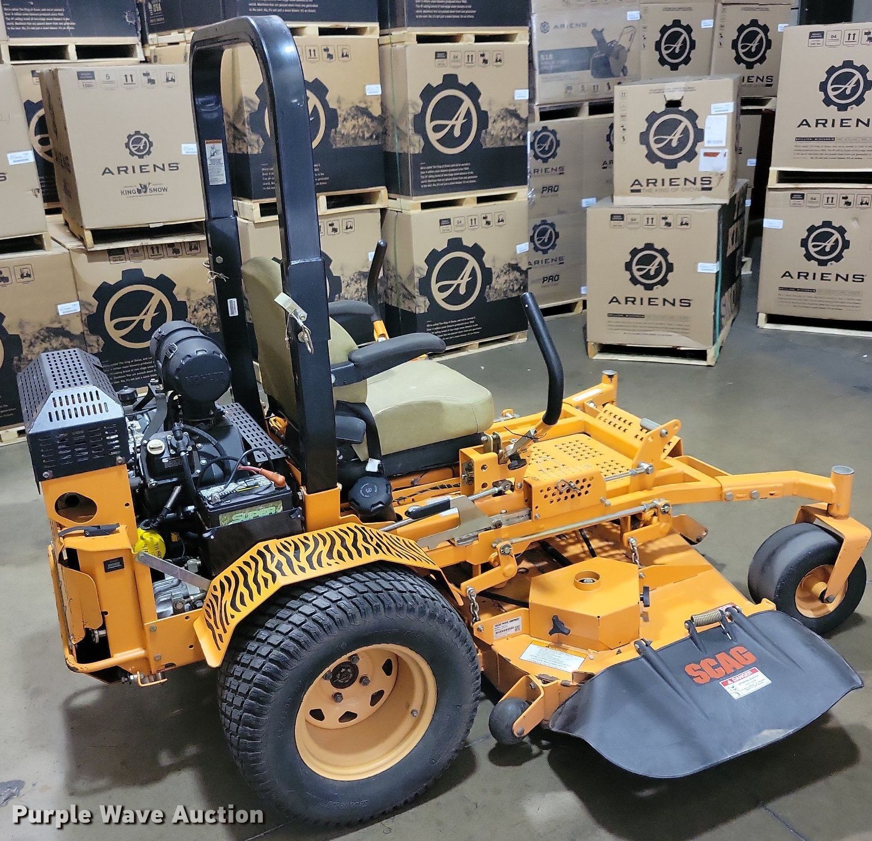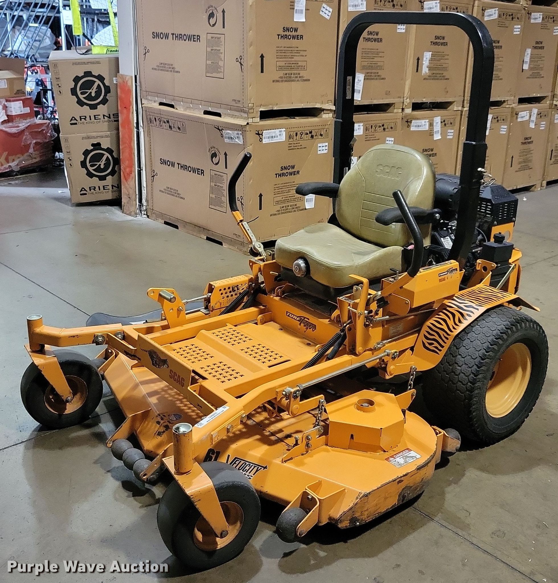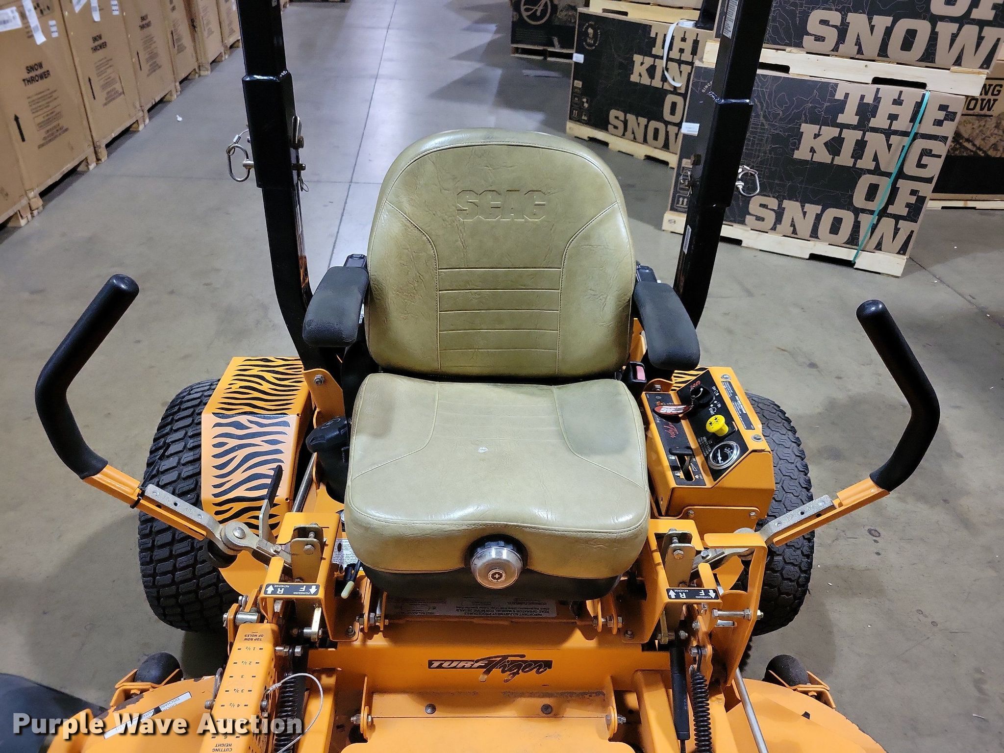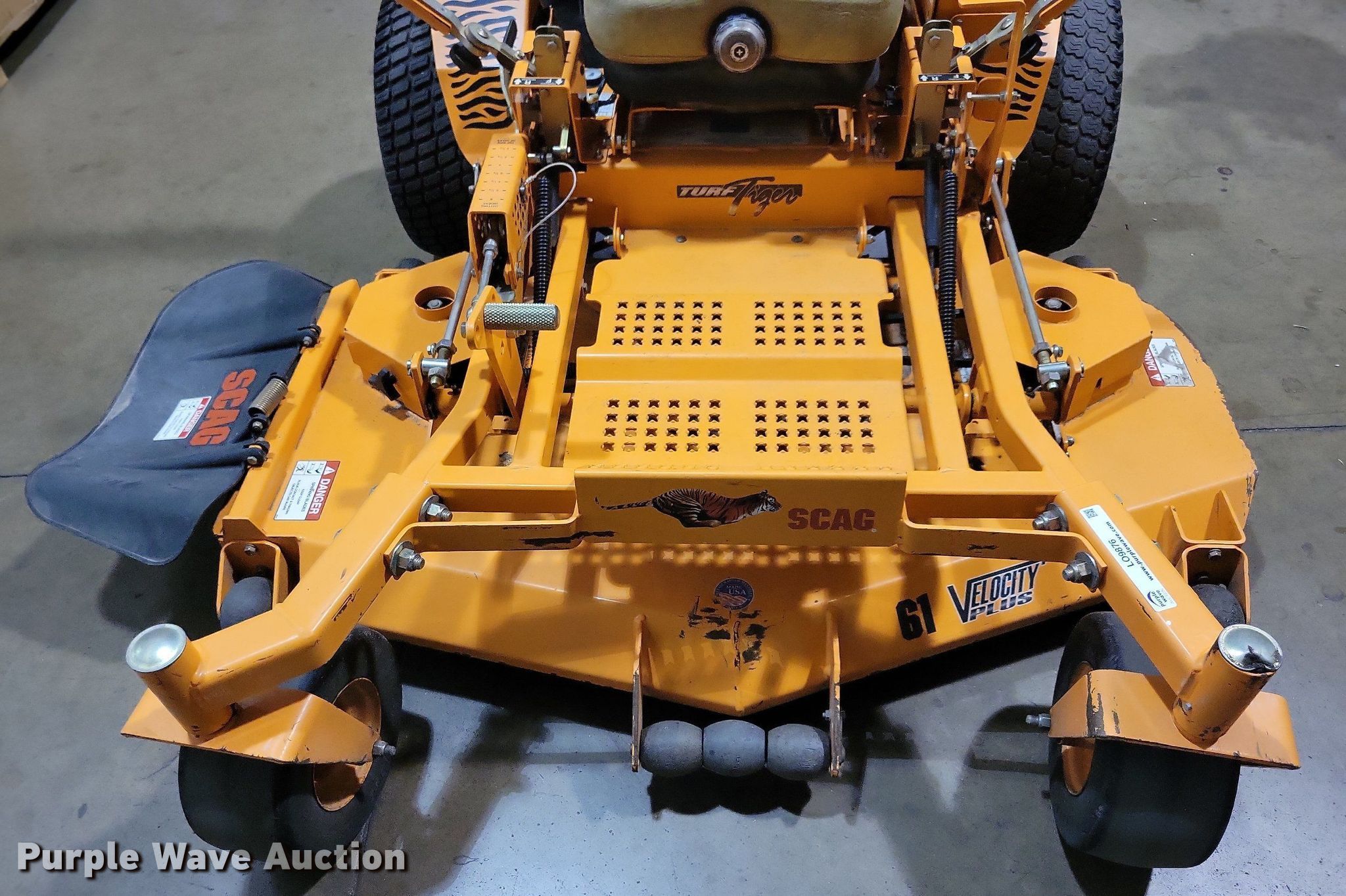 Purple Wave is selling a used Commercial Turf Mower in Iowa. This item is a 2013 Scag Turf Tiger ZTR lawn mower with the following: Hours: 712 on meter, Cutting width: 61", Serial: H9500377