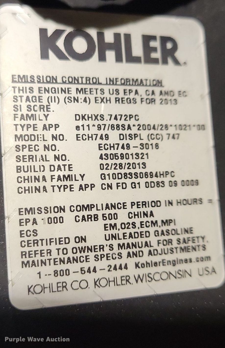 - Kohler ECH749