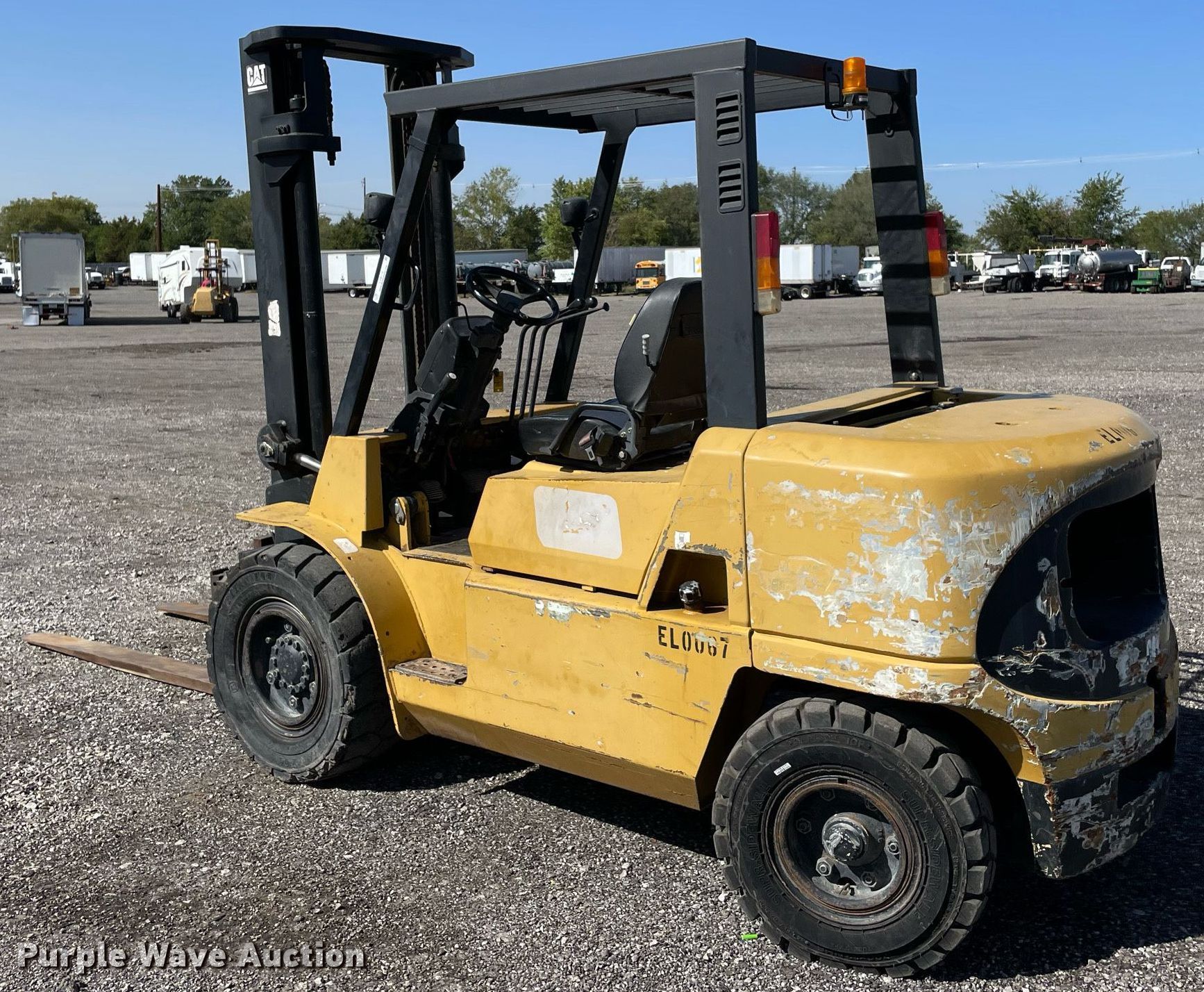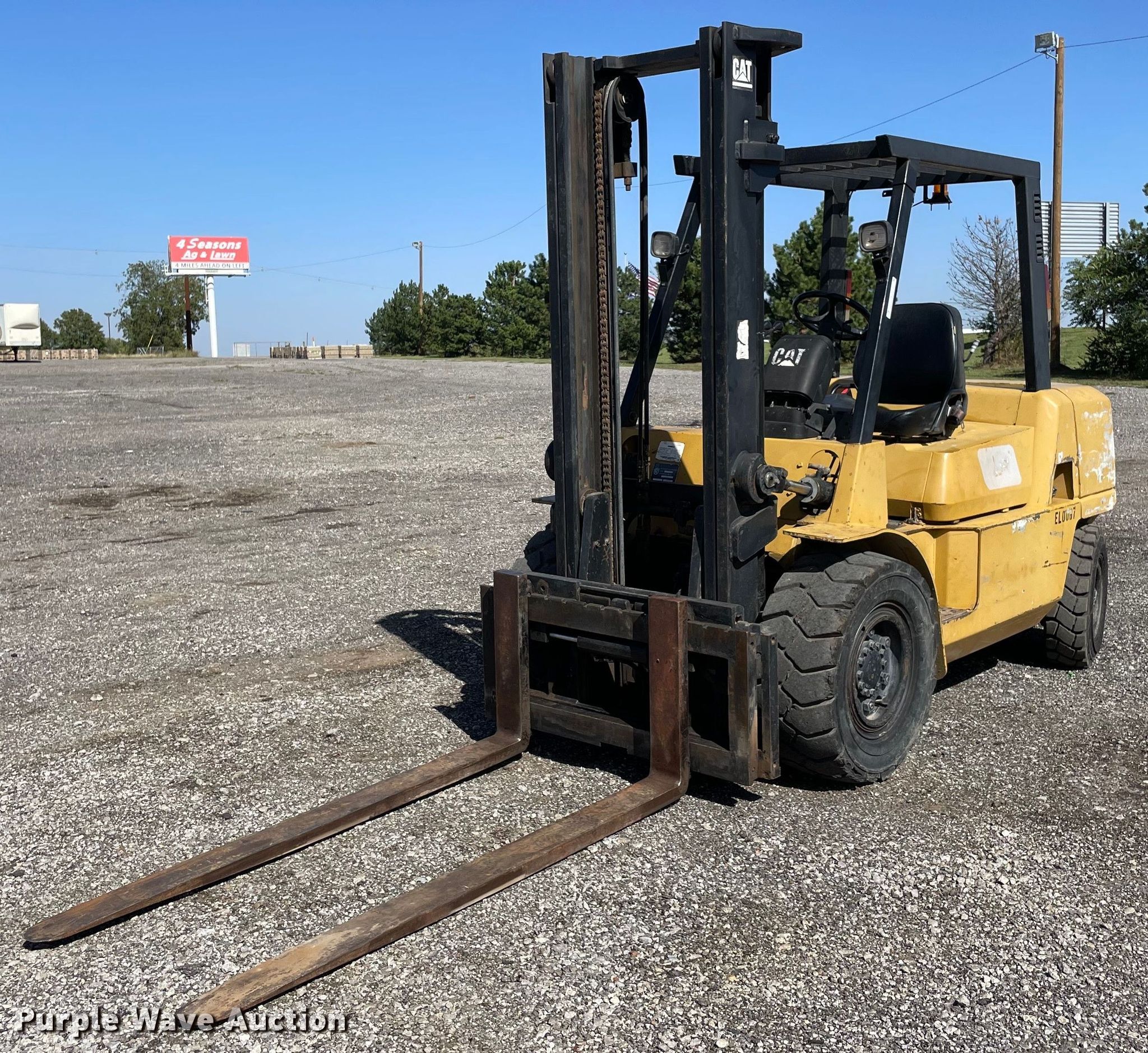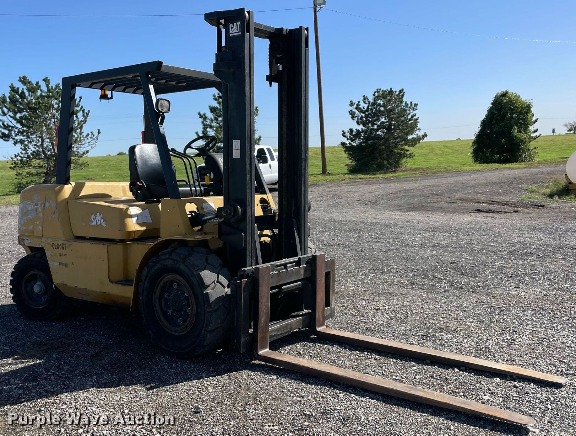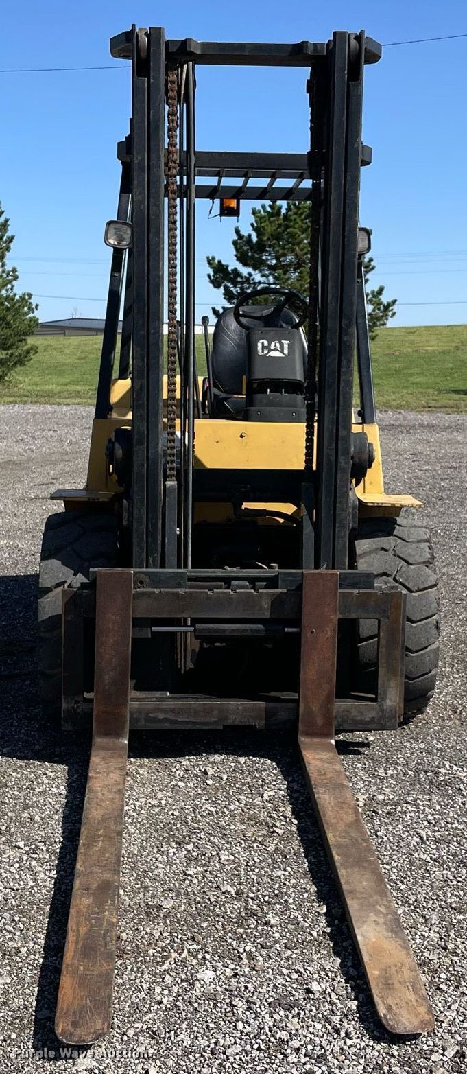 Purple Wave is selling a used Cushion Tire or Pneumatic Forklift in Oklahoma. This item is a Caterpillar DP40KL forklift with the following: Hours: 6,385 on meter, Serial: AT19C50668