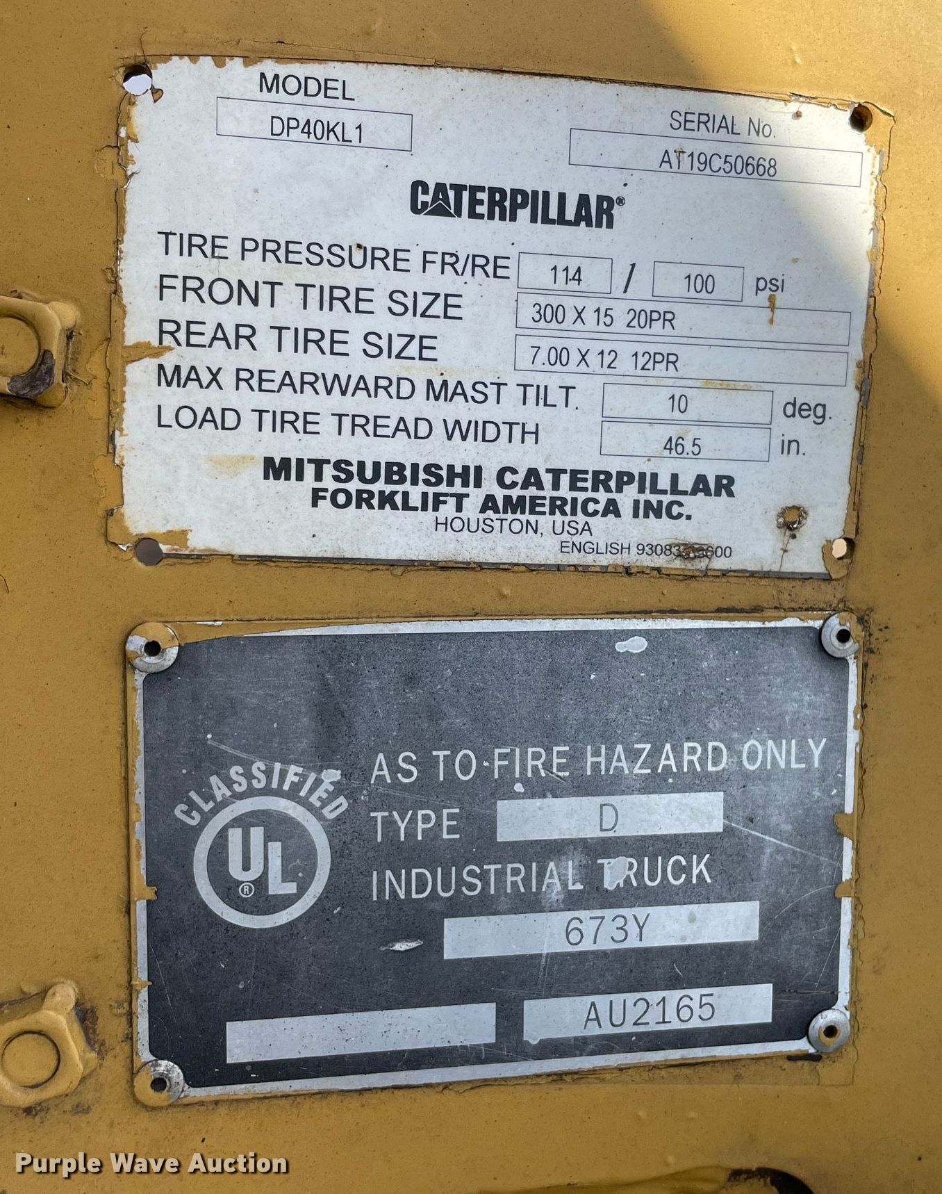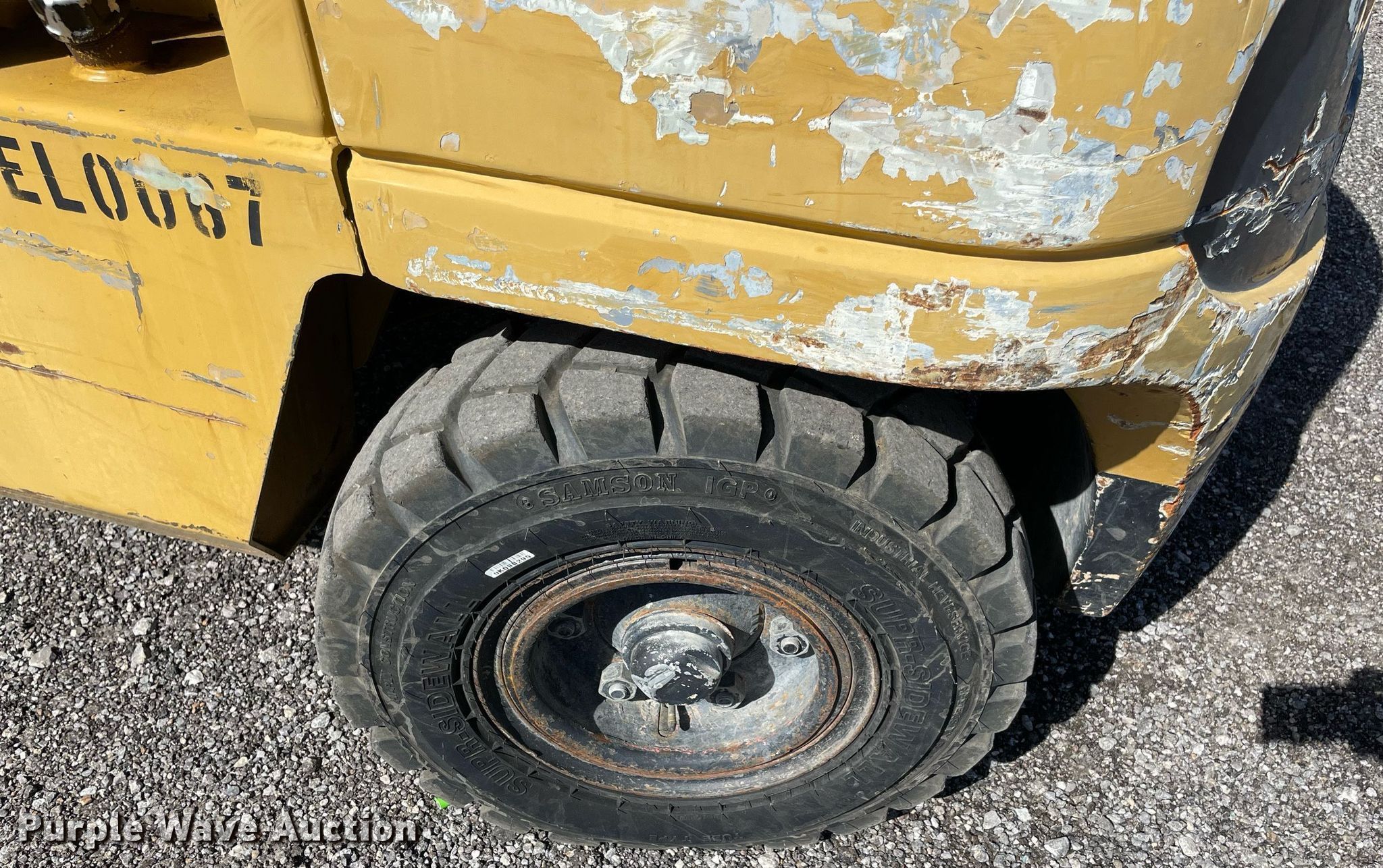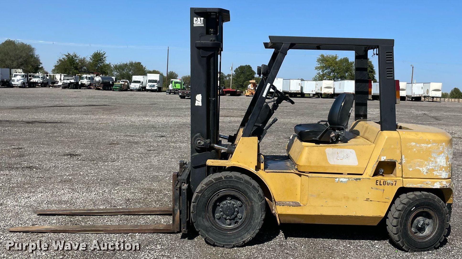 Purple Wave is selling a used Cushion Tire or Pneumatic Forklift in Oklahoma. This item is a Caterpillar DP40KL forklift with the following: Hours: 6,385 on meter, Serial: AT19C50668