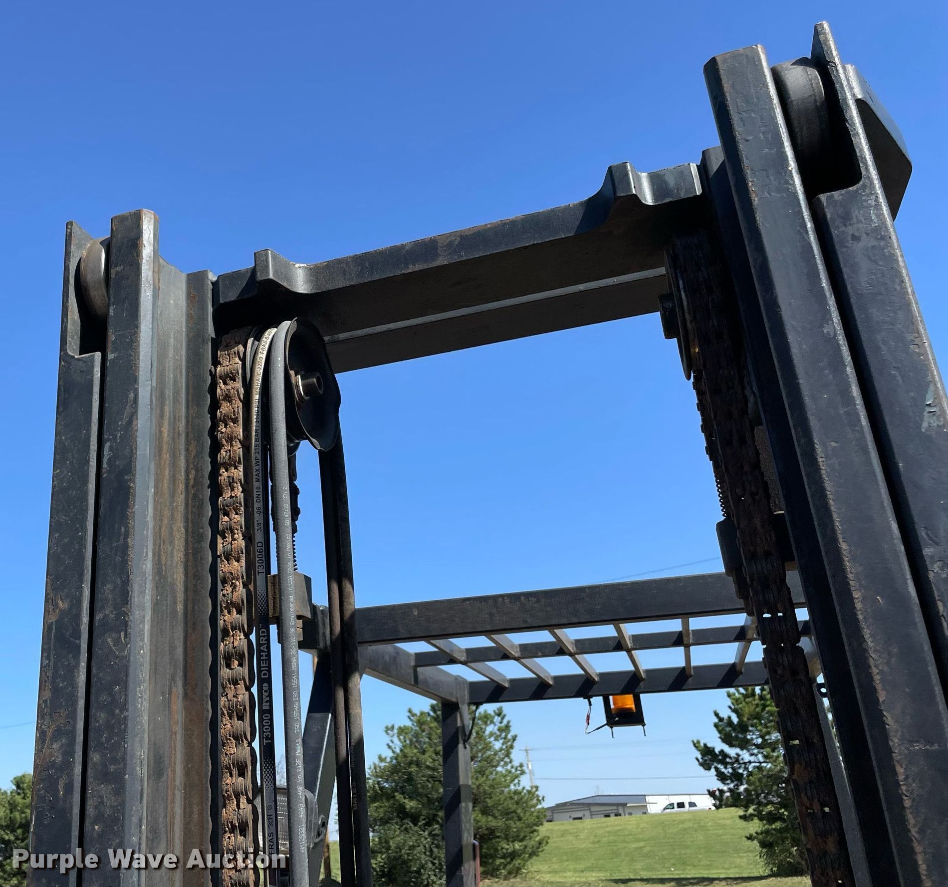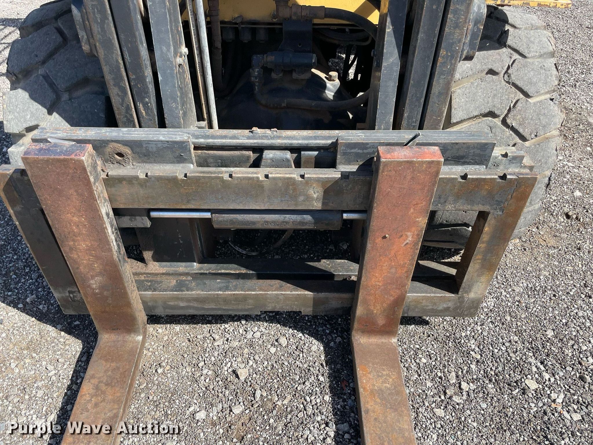 Caterpillar DP40KL forklift. Hours: 6,385 on meter, Serial: AT19C50668. Engine Cylinders: 5, Fuel type: Diesel. Transmission Powershift. Features Maximum lift capacity: 8,818 lbs, Side shift, Mast tilt, Fork length: 72". Tires Front: 32x12.1-15, Rear: 7.00x12. Notes Hydraulic issues, leaks. 15107 North 137th East Avenue. Collinsville, OK 74021