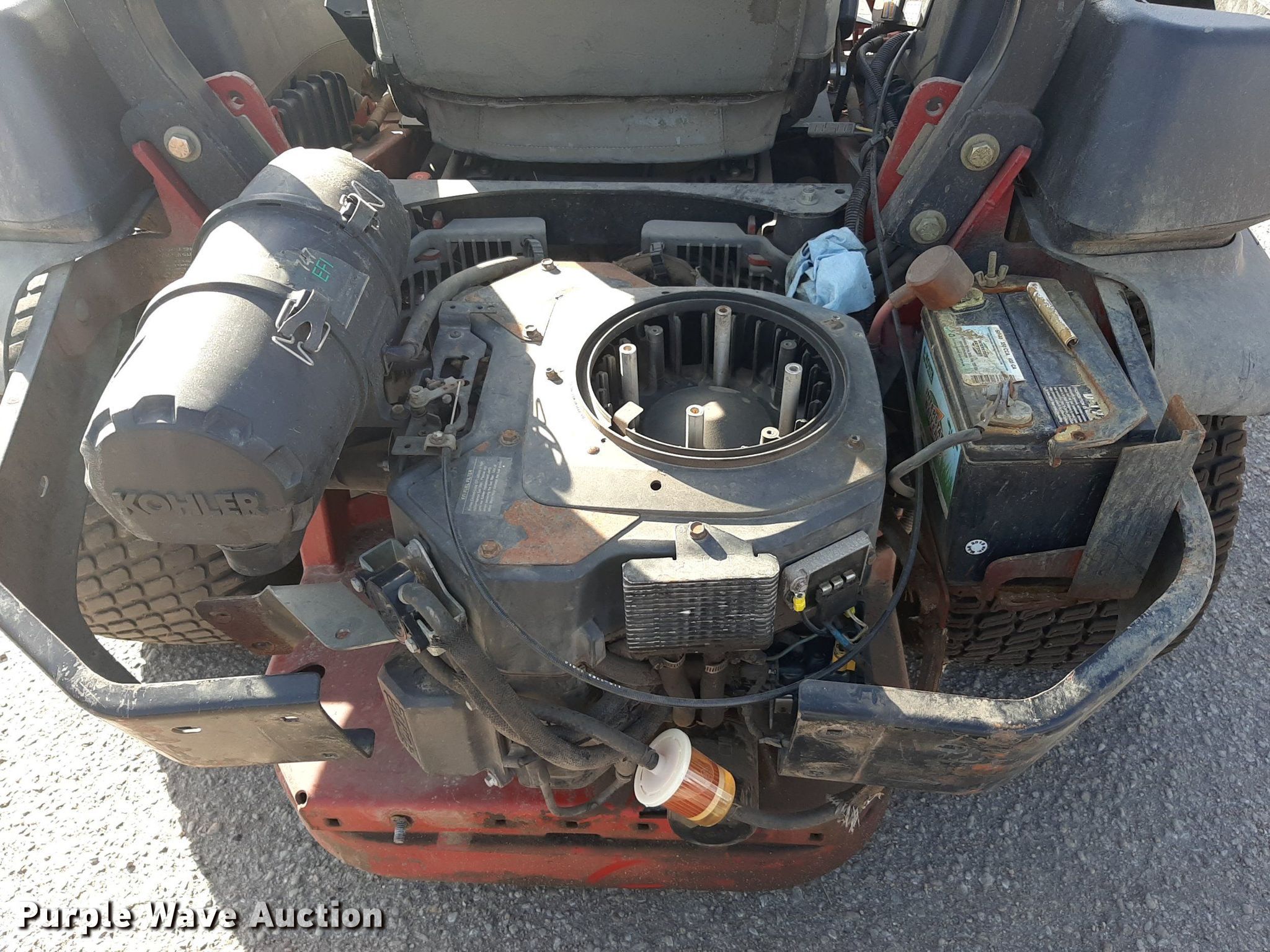 Toro 74930 ZTR lawn mower. Hours: Unknown, Cutting width: 60", Serial: 312000274. Engine Kohler, Cylinders: 2, Fuel type: Gas. Transmission Hydrostatic. Tires Front: 13x6.50/4.50, Rear: 24x12.00-12. Notes Dead battery, Ignition removed, Non-operational unit. Suburban Landscape Management. 1100 E MacArthur Rd. Wichita, KS 67216