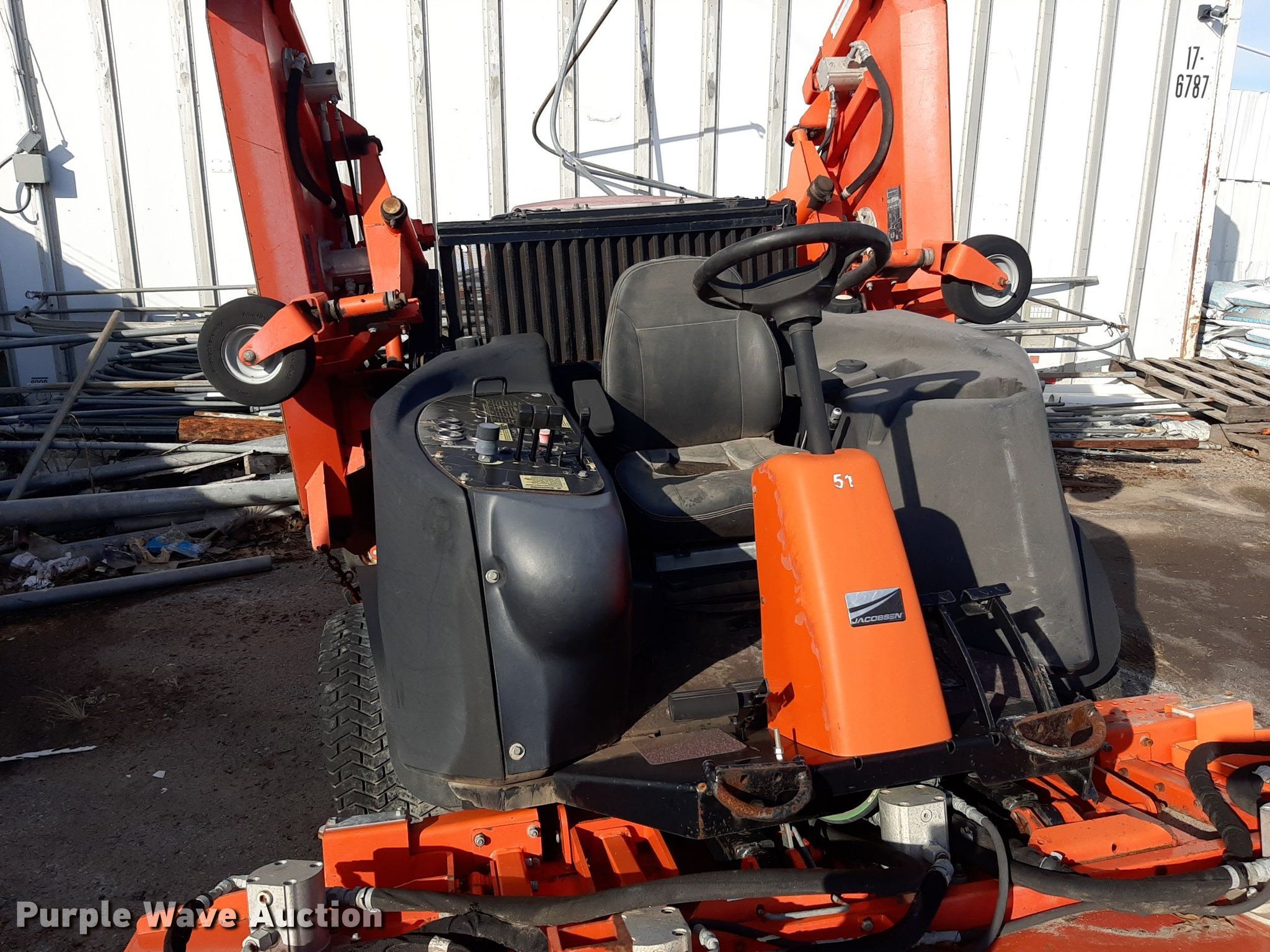 Purple Wave is selling a used Commercial Turf Mower in Kansas. This item is a Jacobsen HR9016 lawn mower with the following: Hours: 4,173 on meter, Cutting width: 192", Serial: 052801780