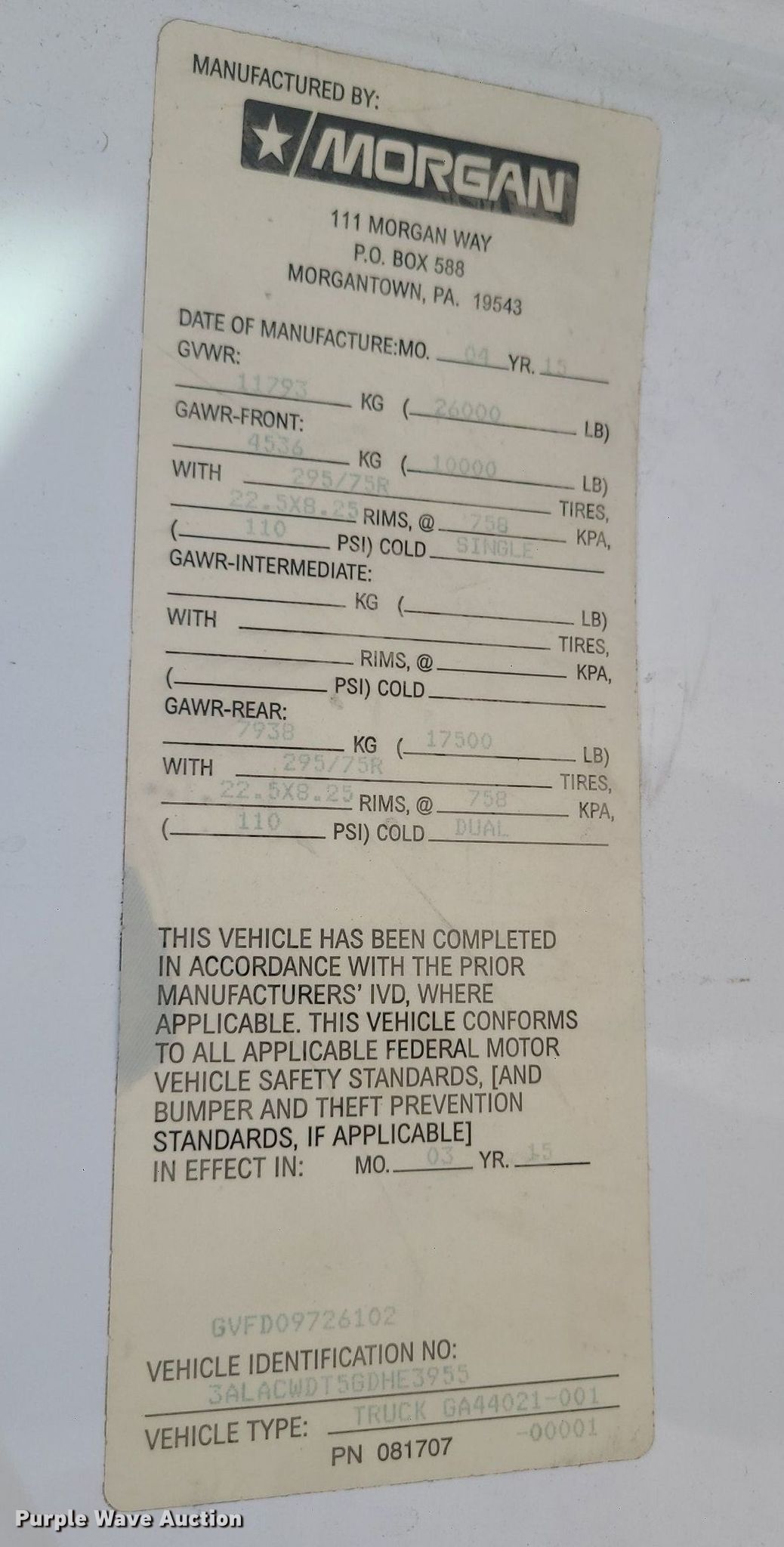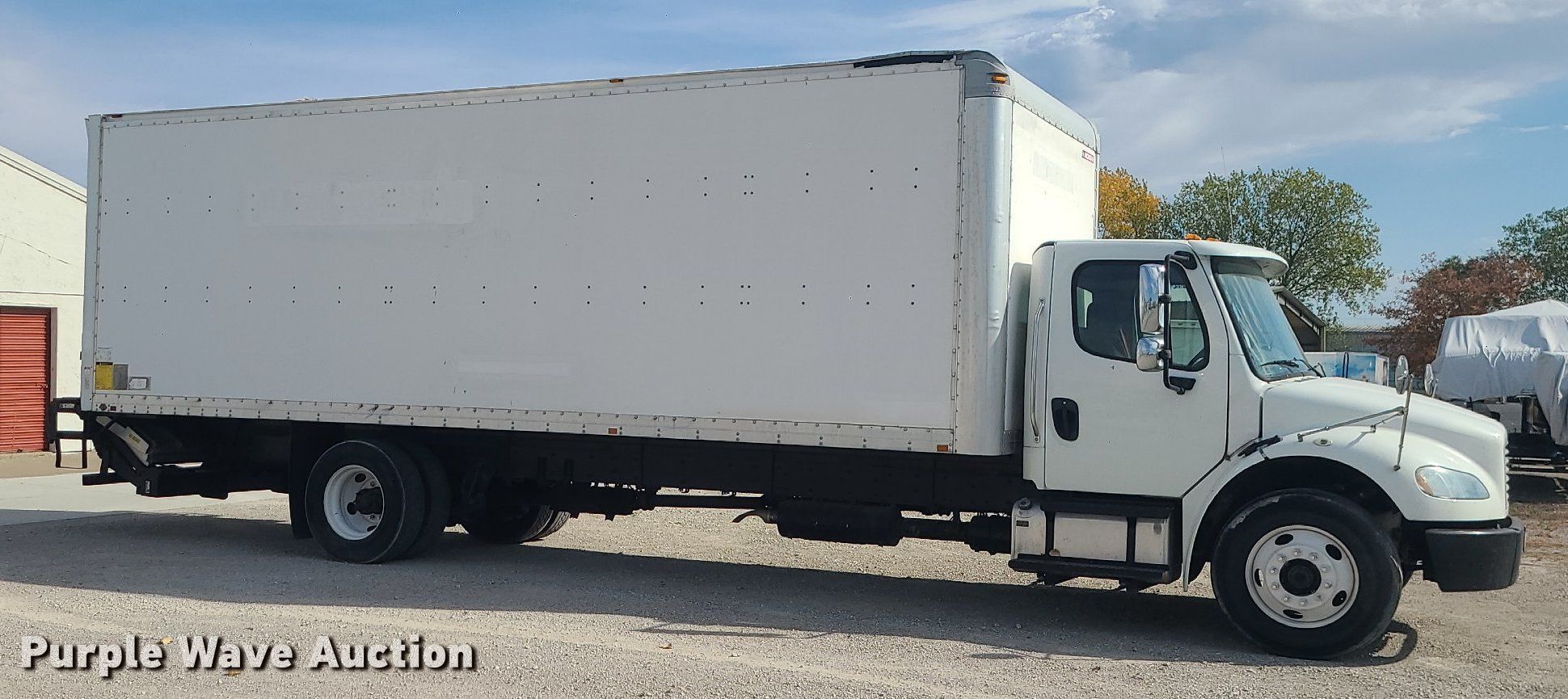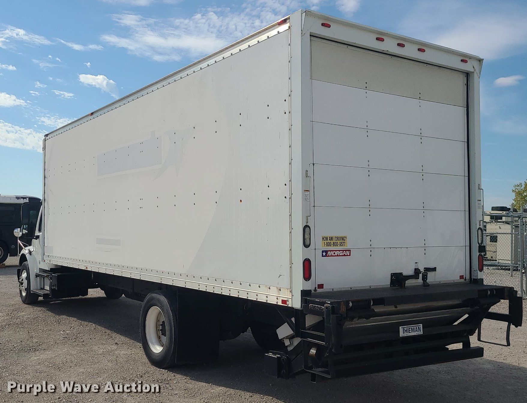 2016 Freightliner box truck. Miles: 209,344 on odometer, Hours: 5,526 on meter, VIN: 3ALACWDT5GDHE3955. Engine Cummins, Displacement: 6.7L, Cylinders: 6, Fuel type: Diesel. Transmission Automatic. Chassis Axles: Single, Suspension: Air, Brakes: Air, GVWR: 26,000 lbs. Interior AC, Heat, Heated mirrors, Power windows, Power locks, Cruise control. Features Box bed Morgan, 26' L x 102" W x 98" H, Floor: Wood, End gate lift Thieman LRST 40.. Tires Size: 295/75R22.5. Notes Floor jack and blankets included. Missouri title. Title distribution may be delayed up to 14 days from verification of funds. 465 Southeast Oldham Parkway. Lee's Summit, MO 64081