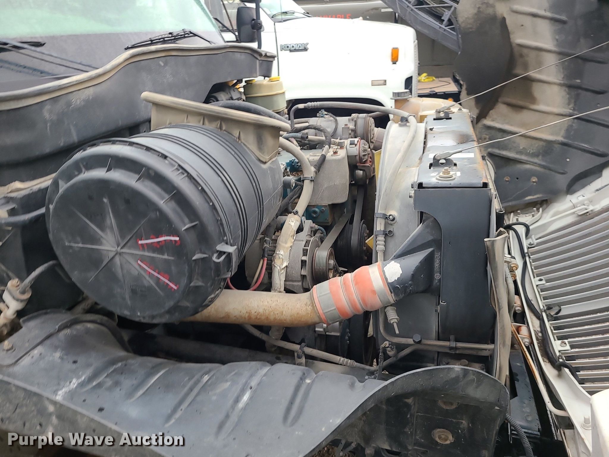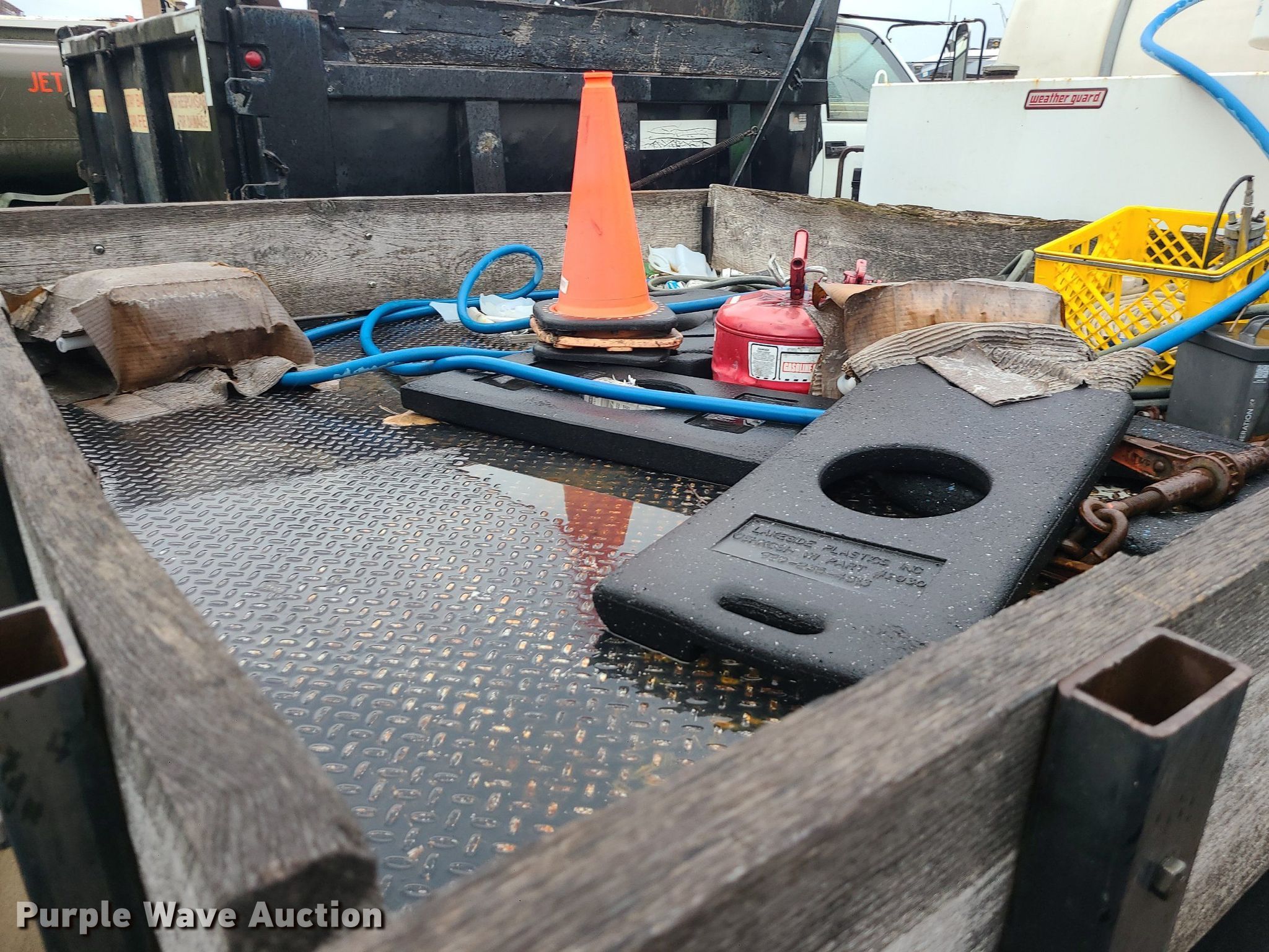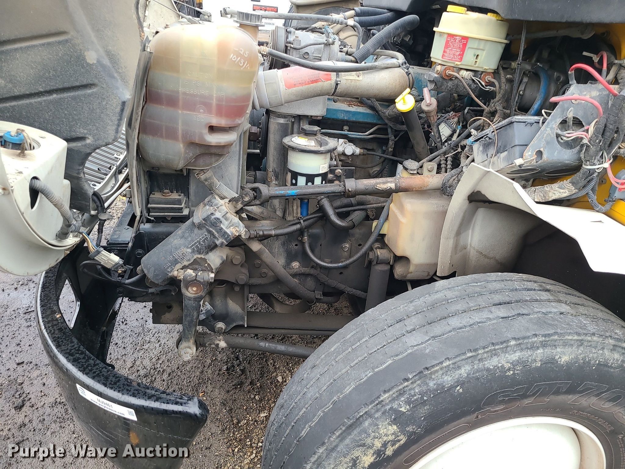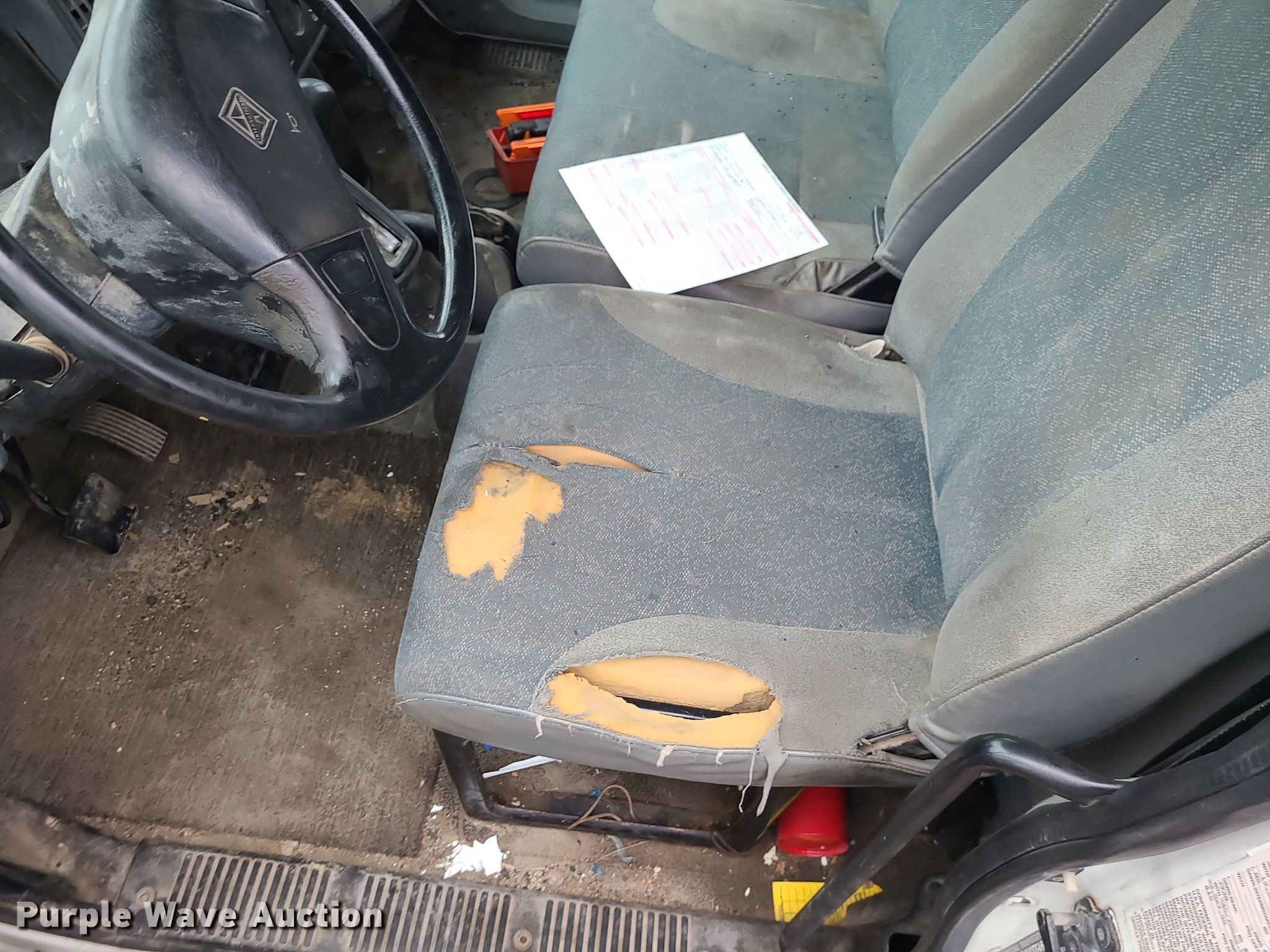 2004 International 4300 flatbed truck. Miles: 222,627 on odometer, Hours: 8,391 on meter, VIN: 1HTMMAAM54H593832. Engine Displacement: 7.6L , Cylinders: 6, Fuel type: Diesel. Transmission Automatic. Chassis Axles: Single, Suspension: Spring, Brakes: Hydraulic. Interior AC, Heat. Features Flatbed 14'L x 96" W, Northstar gas powered air compressor, Honda water pump, Auxiliary fuel tank with 12V pump, 500 gallon poly tank. Tires Size: 11/R22.5. Notes Engine issues, cranks but does not start., Possible electrical issue , rodent damage., Non-operational unit. Missouri title. Title distribution may be delayed up to 14 days from verification of funds. Seal-O-Matic Paving. 2601 Northwest Tullison Road. Riverside, MO 64150
