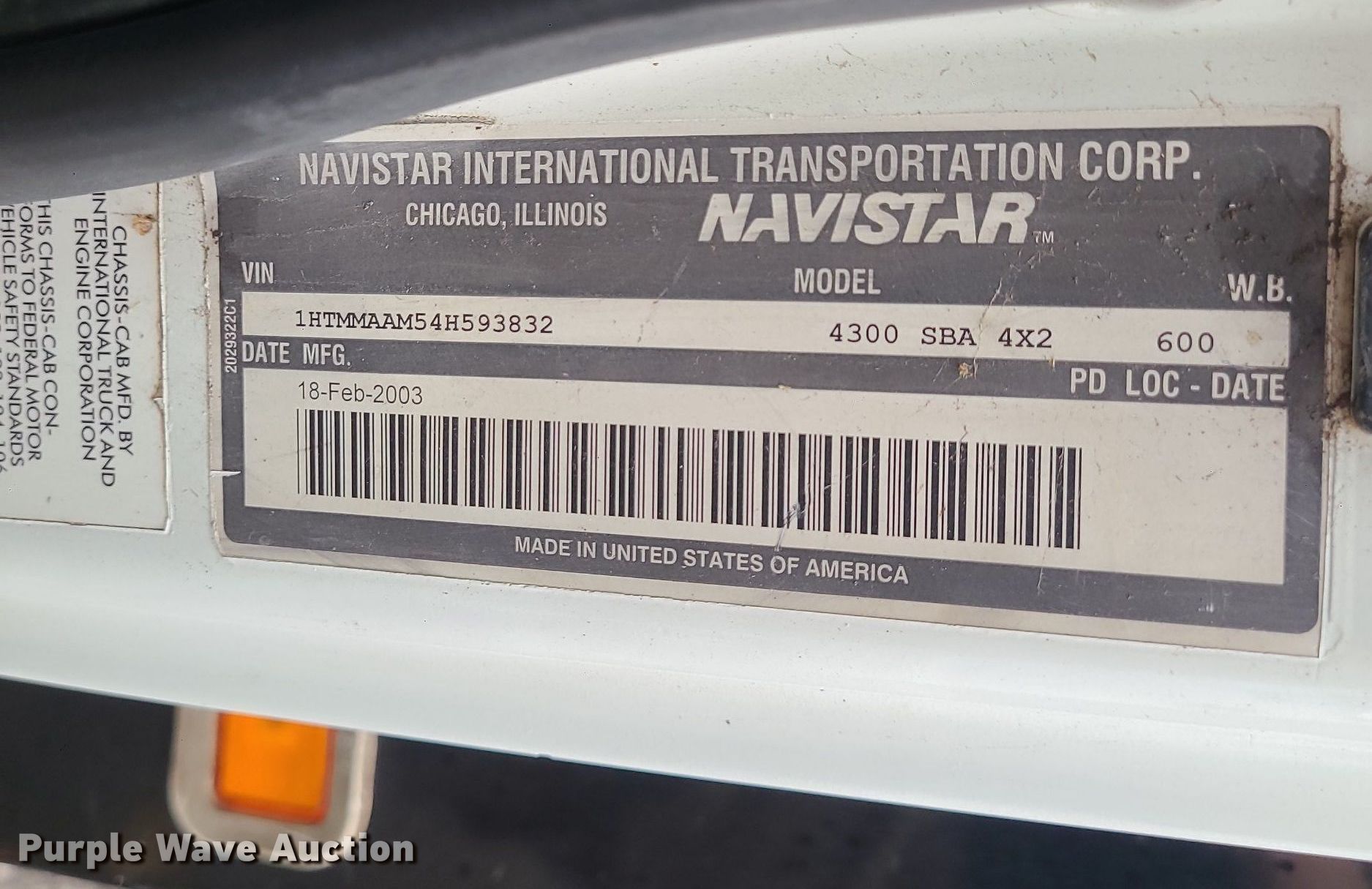 • VIN: 1HTMMAAM54H593832